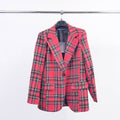 Ce blazer à carreaux est l'alliance parfaite entre élégance intemporelle et modernité. Conçu dans une coupe ajustée qui sublime la silhouette, il se distingue par son motif classique revisité pour une allure chic et contemporaine. Idéal pour une tenue professionnelle ou une sortie habillée, ce modèle est confectionné dans un tissu de qualité offrant confort et légèreté. Doté de détails soignés tels que des poches discrètes et une fermeture boutonnée, ce blazer s'associe facilement à un pantalon assorti ou un jean pour un style décontracté mais raffiné. Faites de ce blazer votre allié mode incontournable !