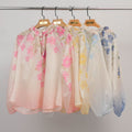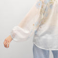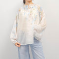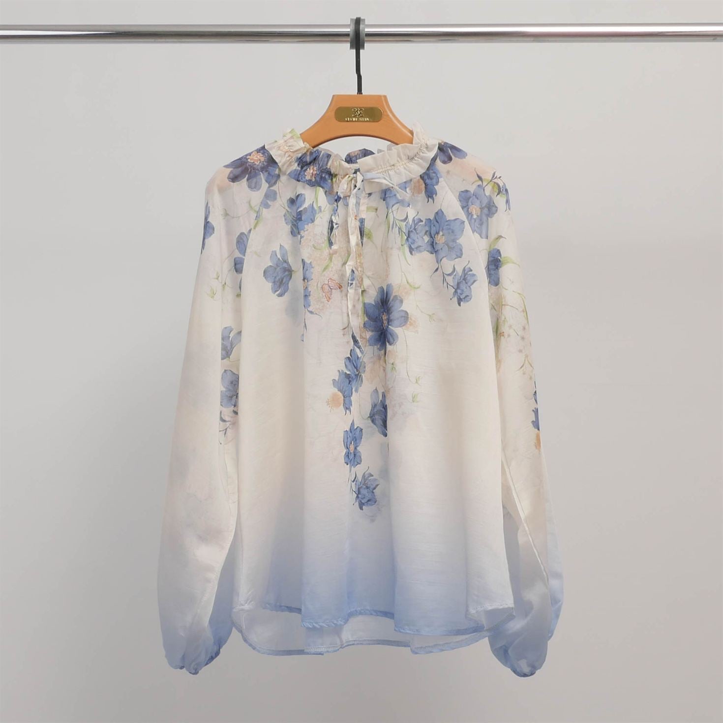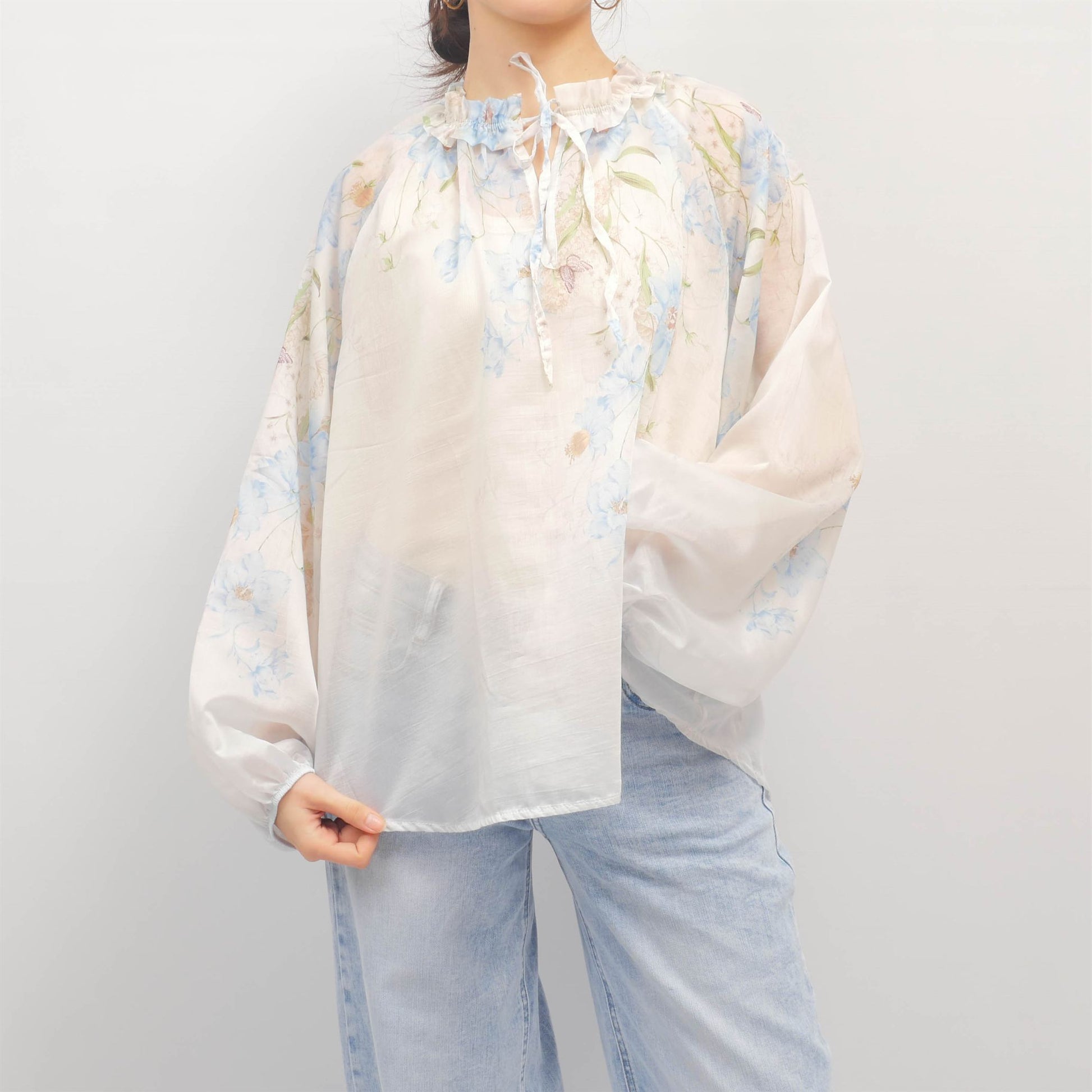 Une blouse légère comme un souffle de printemps, qui sublime la silhouette avec délicatesse et poésie. Son imprimé floral pastel décliné en plusieurs teintes douces illumine la matière fluide, tandis que le col froncé à lien noué ajoute une touche romantique et féminine. Les manches longues bouffantes, resserrées aux poignets, accentuent le volume aérien de la pièce. Sa coupe ample assure un confort optimal tout en conservant une allure raffinée. Parfaite avec un jean clair pour un look casual-chic ou glissée dans une jupe midi pour un effet plus habillé.