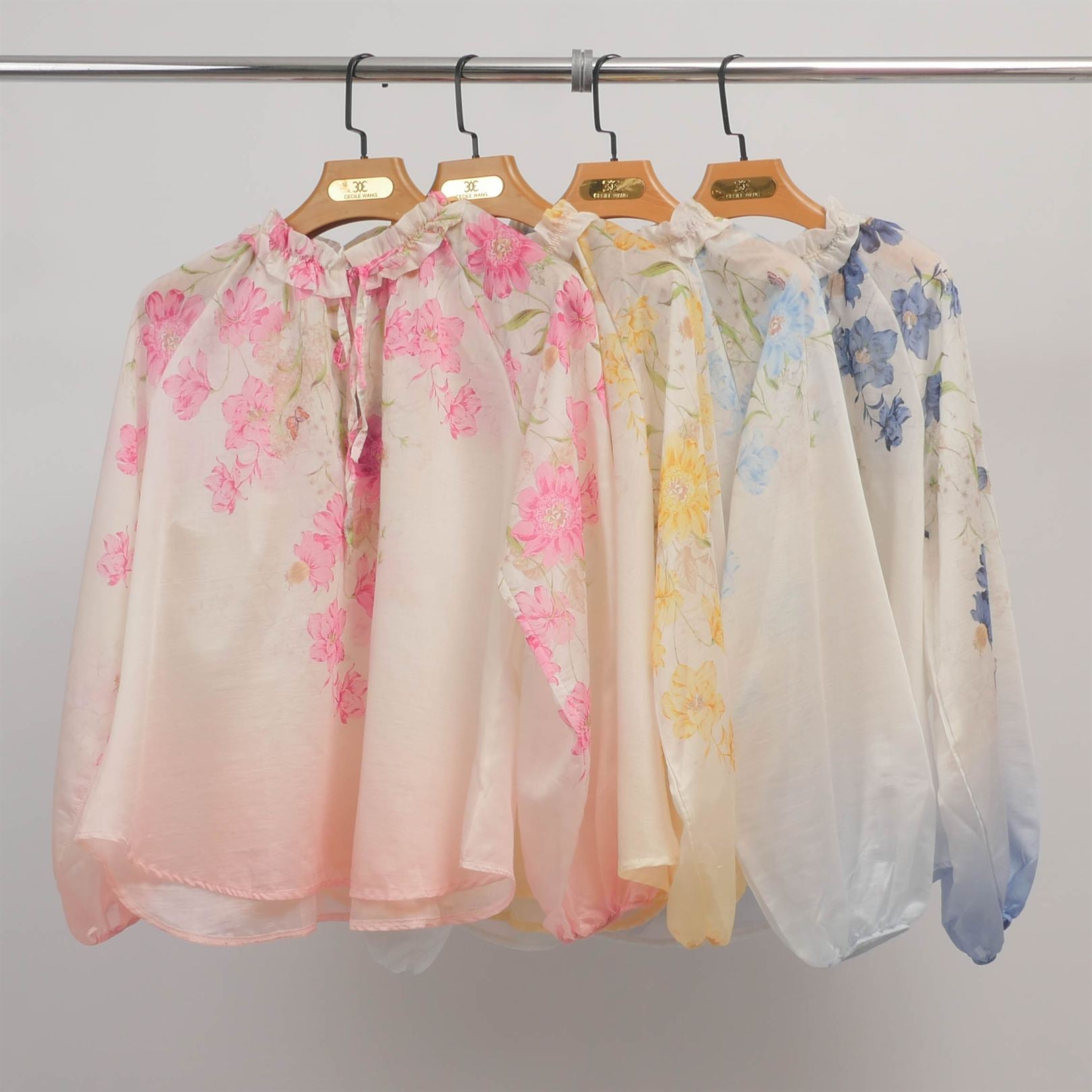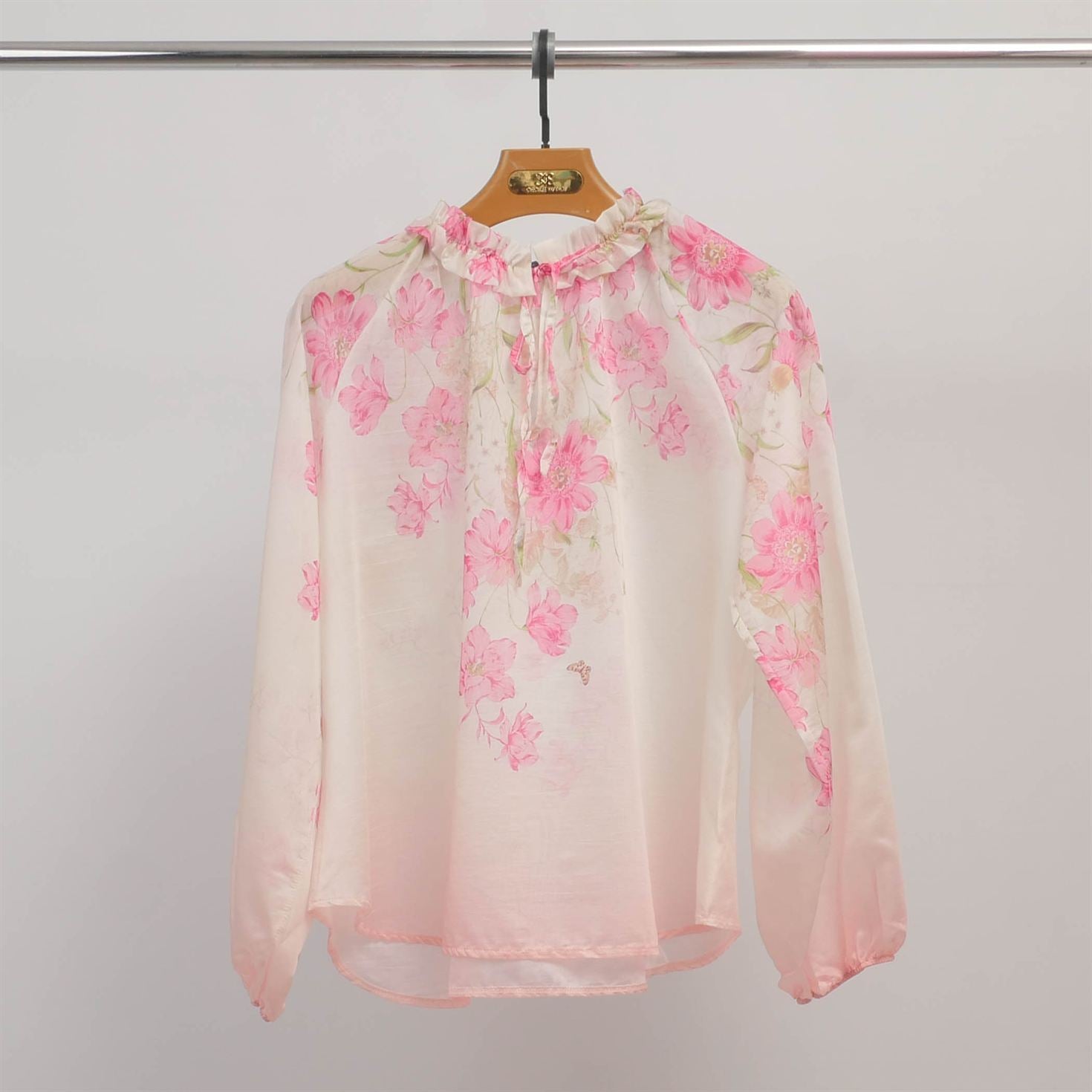 Blouse fleurie col froncé en Tencel – KD8791ST
