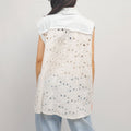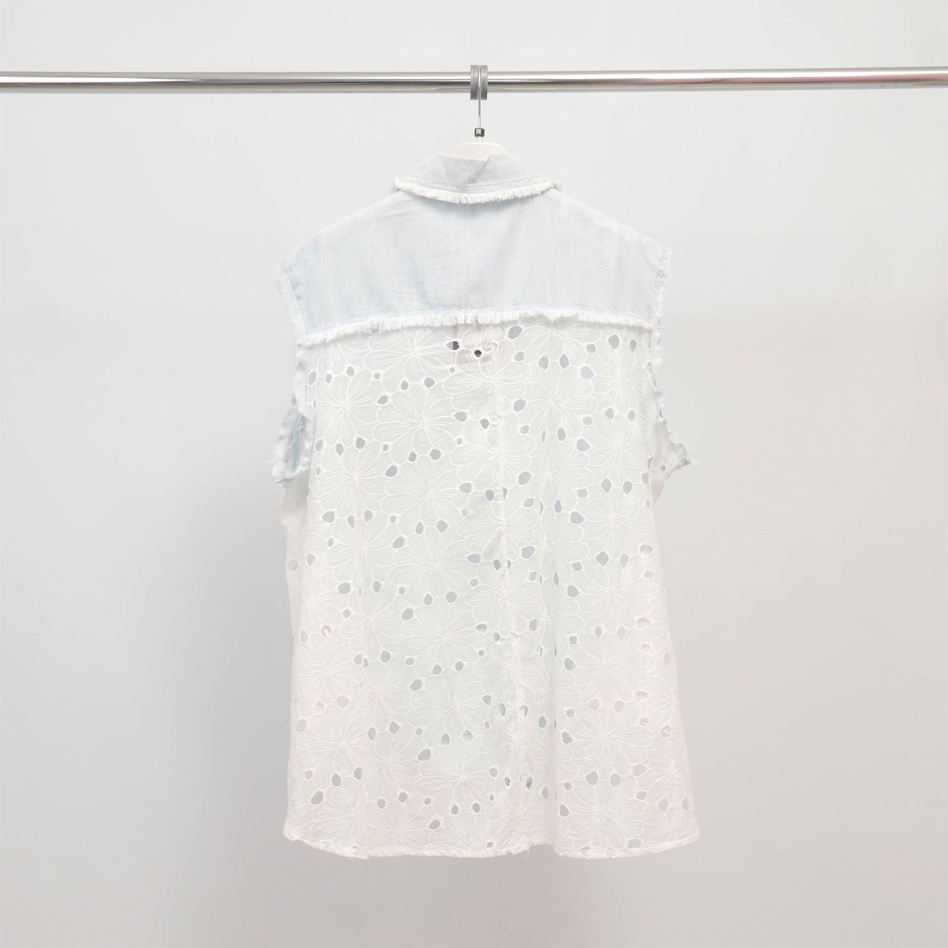 Blouse sans manches en denim et broderie anglaise – CSW3201