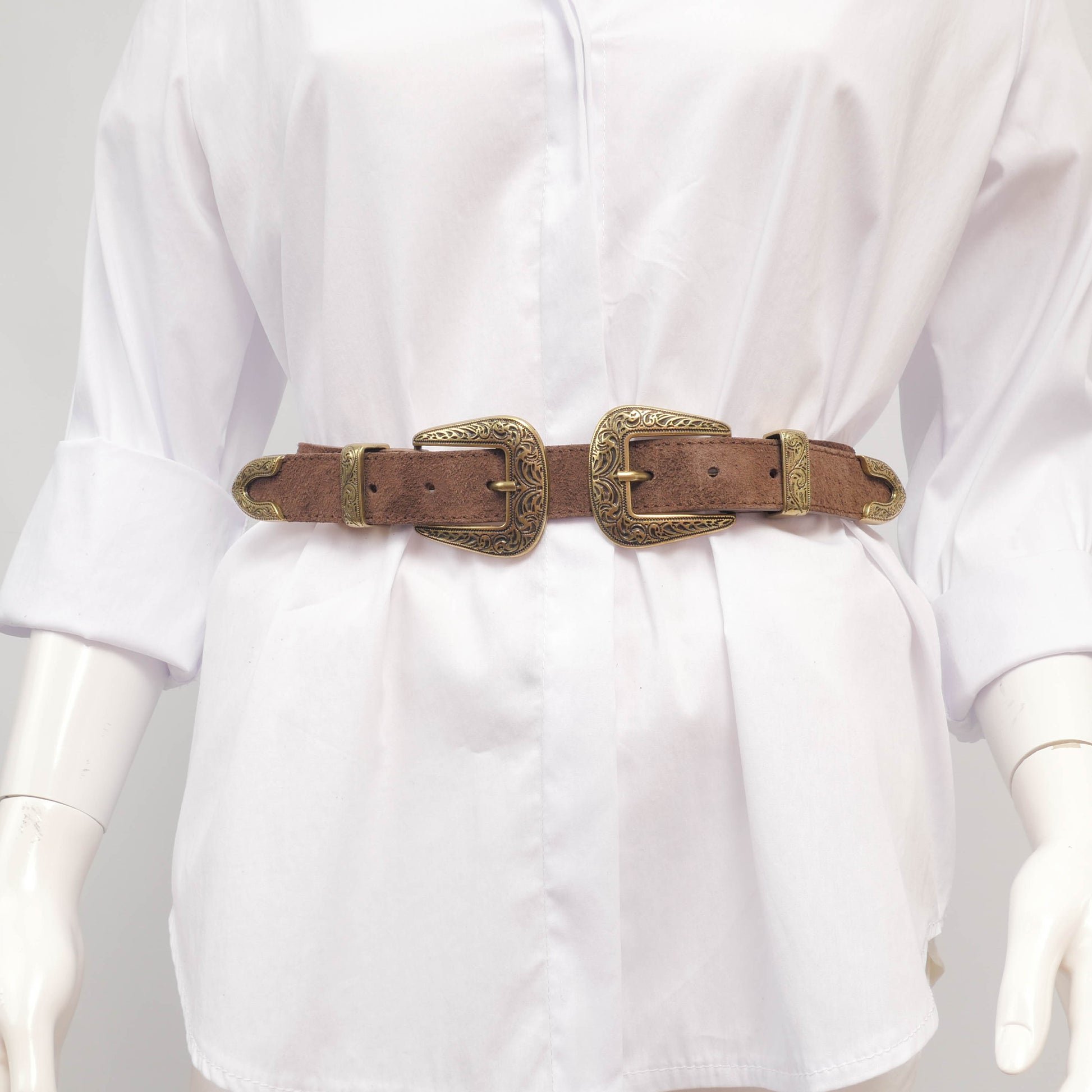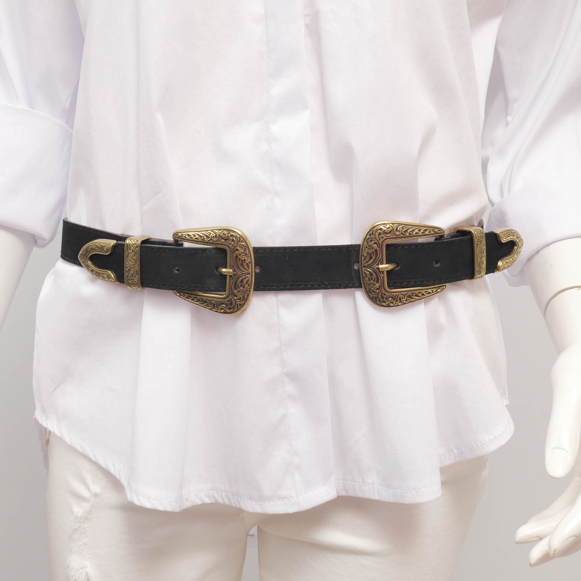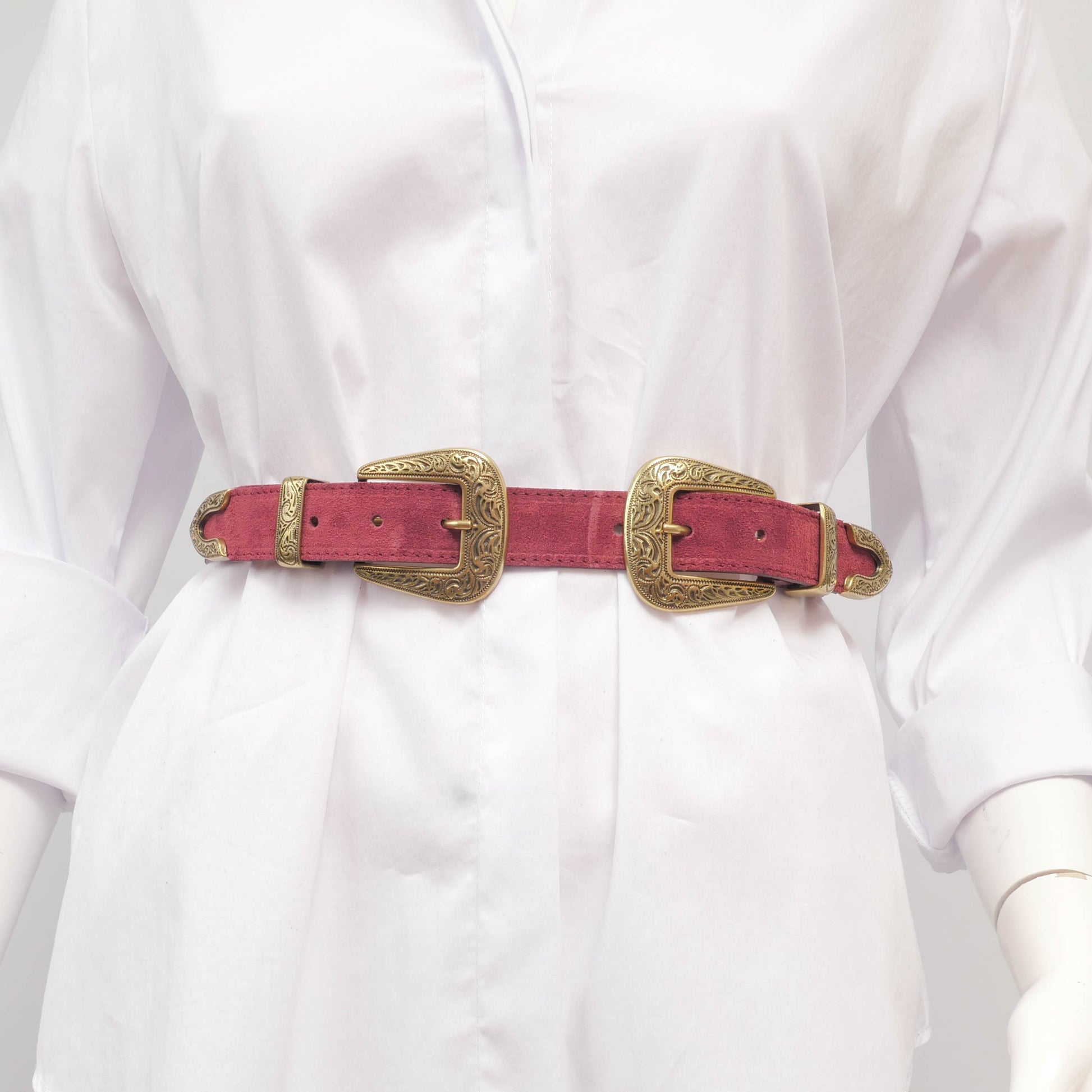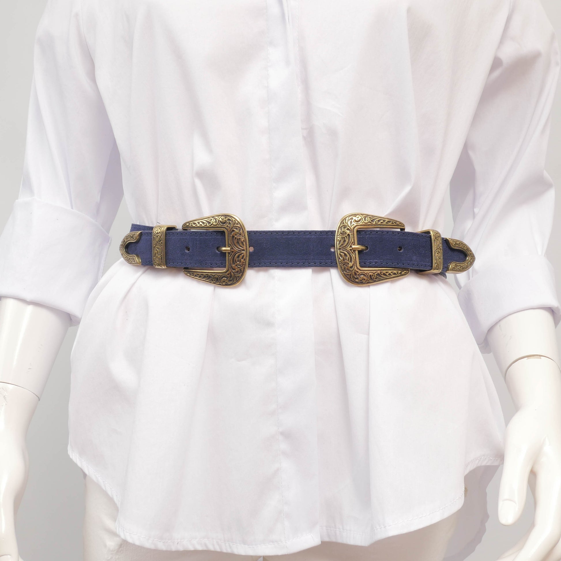 Ceinture western en cuir daim à double boucle – ref BK0146