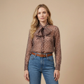Un charme rétro réinventé dans une silhouette moderne : cette chemise à pois est une pièce phare pour un vestiaire raffiné. Son col lavallière oversize noué avec élégance apporte une touche féminine et affirmée, tandis que les manches longues légèrement bouffantes structurent la ligne avec douceur.