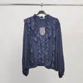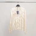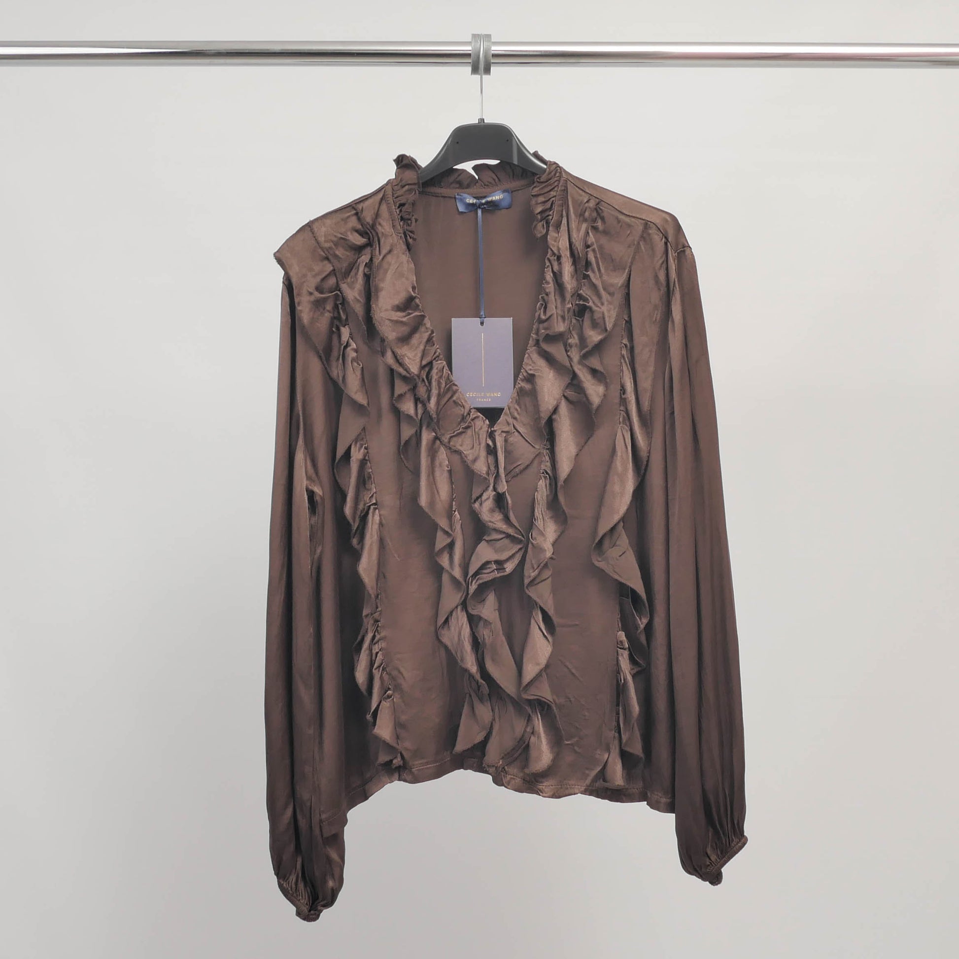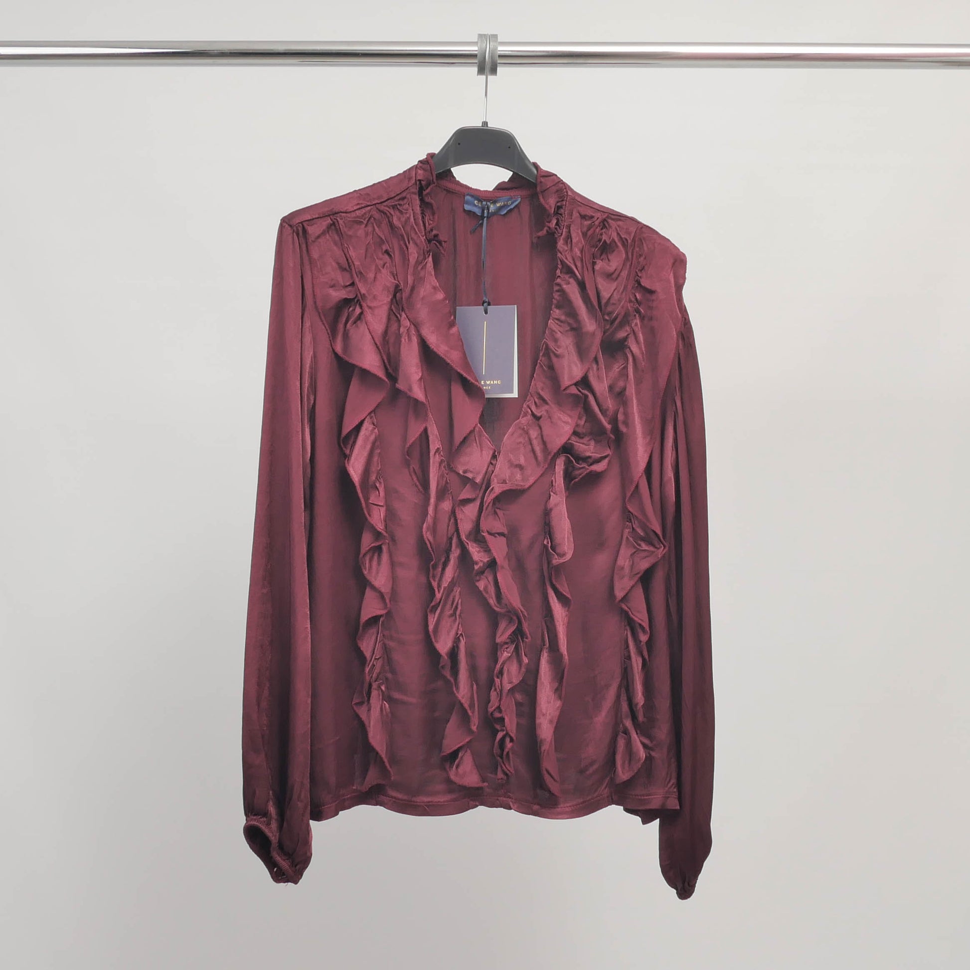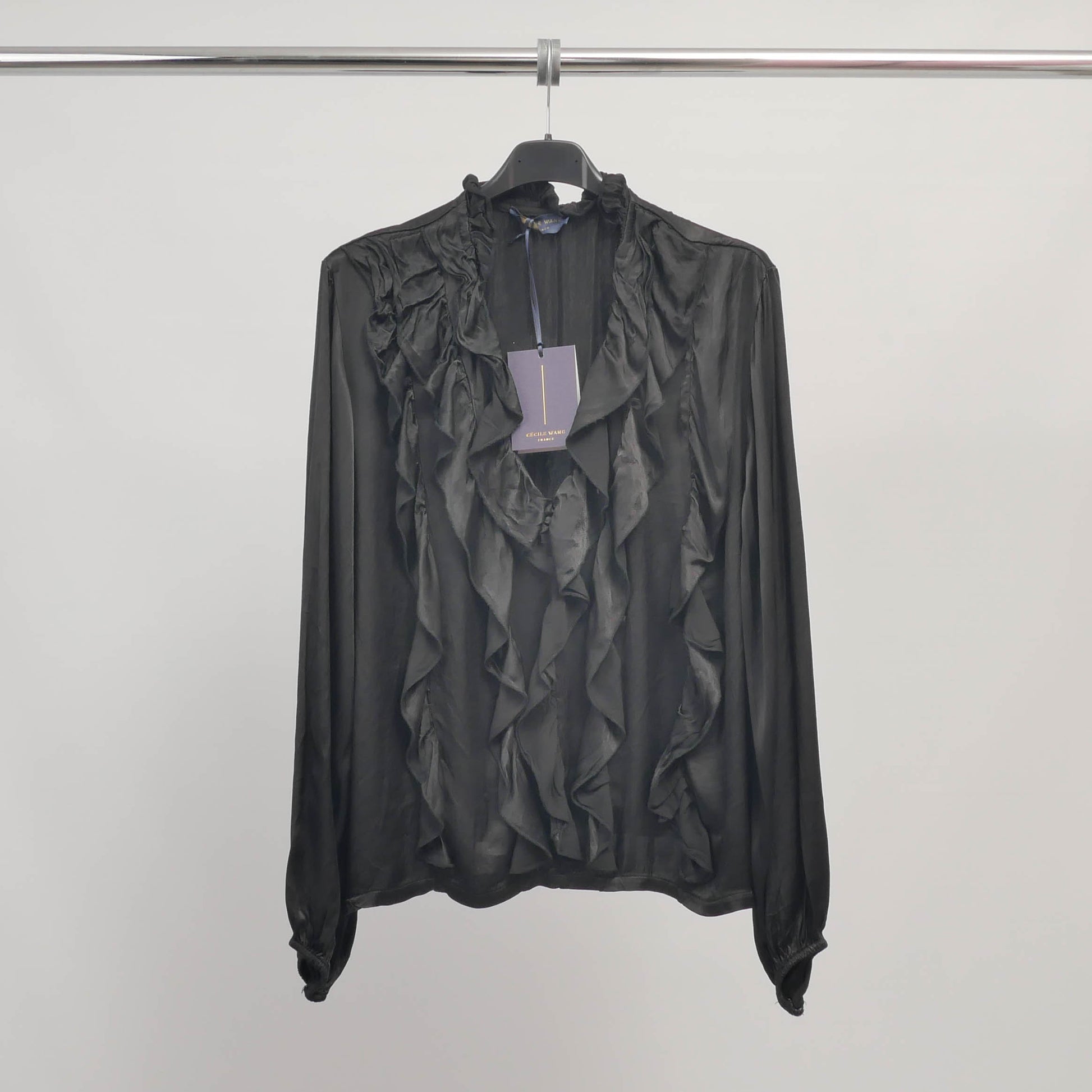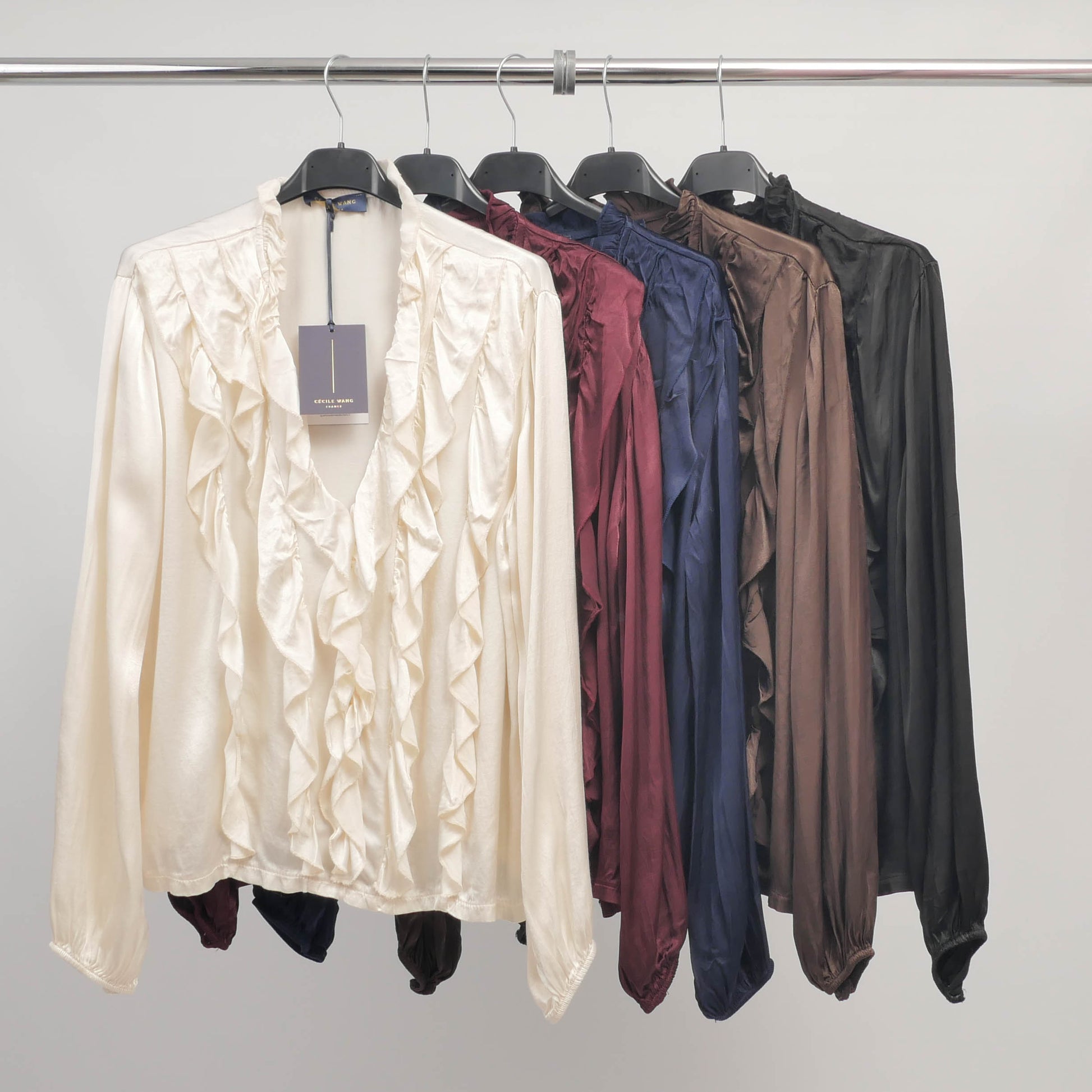 Une allure romantique et sophistiquée en un seul geste. Cette chemise fluide en viscose séduit par son col volanté délicat et son décolleté en V encadré de volants qui apportent du mouvement et de la féminité. Les manches longues légèrement bouffantes se terminent par des poignets froncés pour une touche de douceur supplémentaire.