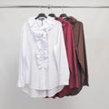 Portez-la avec un jean brut pour une allure chic et décontractée, ou avec un pantalon ajusté et des escarpins pour une silhouette féminine et affirmée. Osez les bijoux discrets pour sublimer le col volanté sans surcharge.