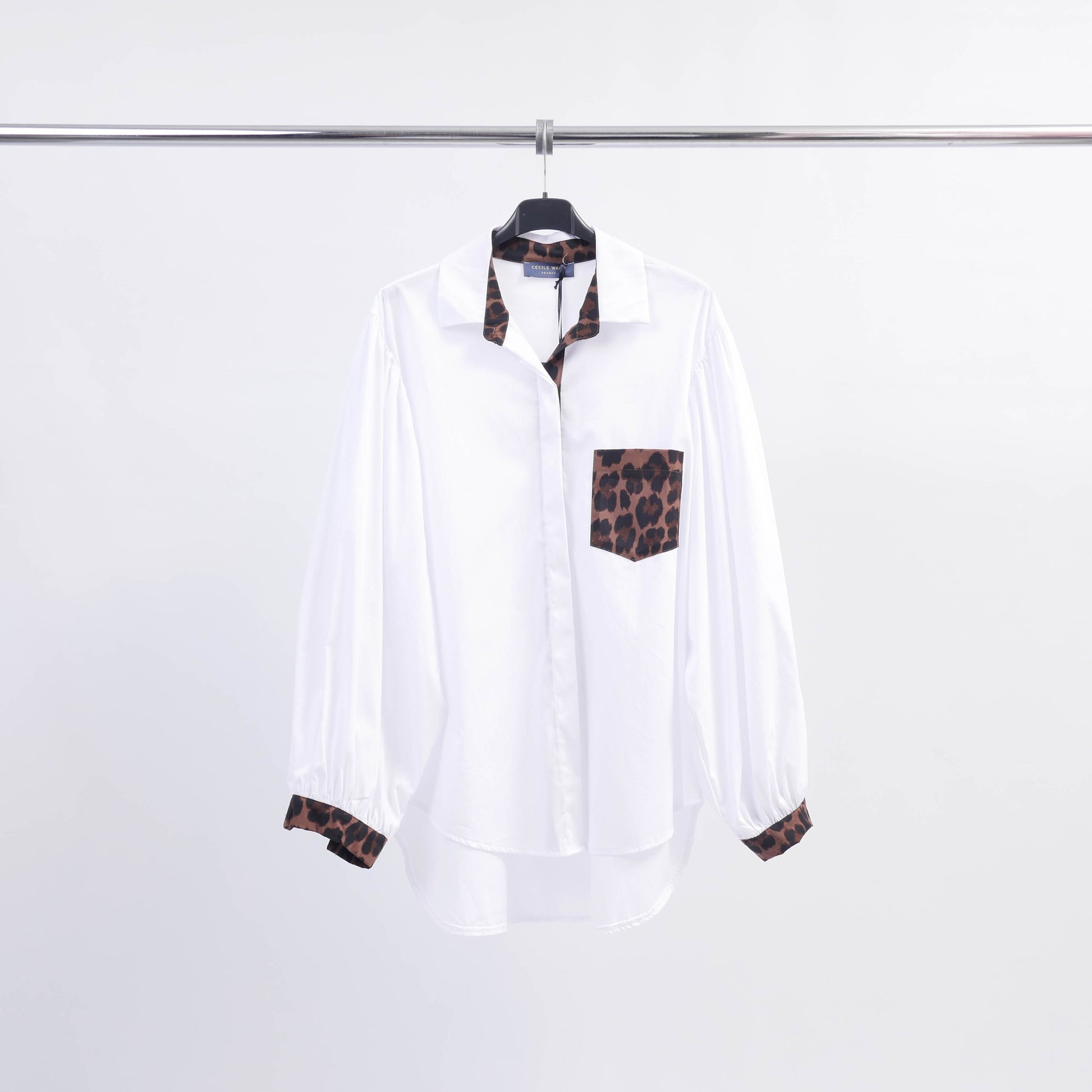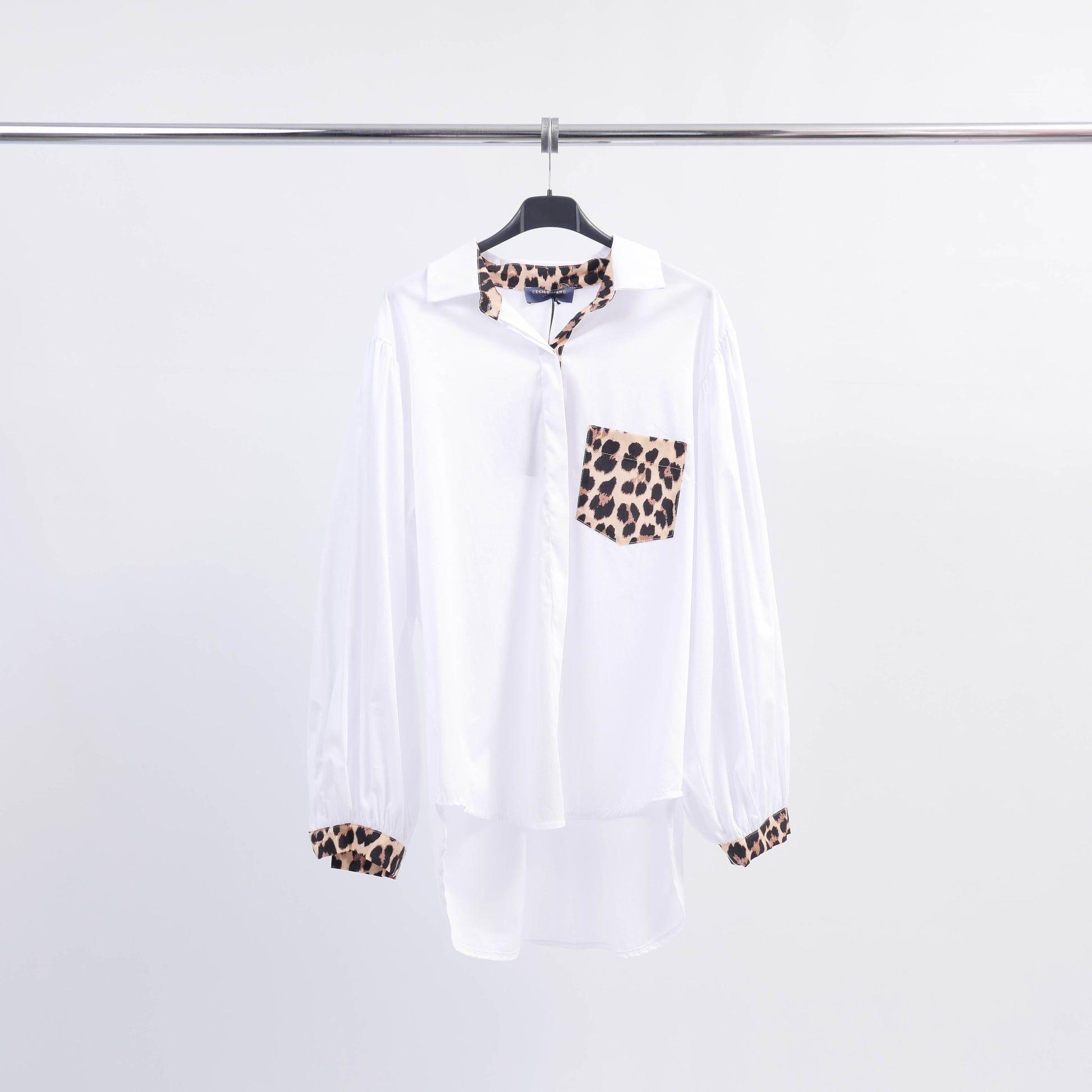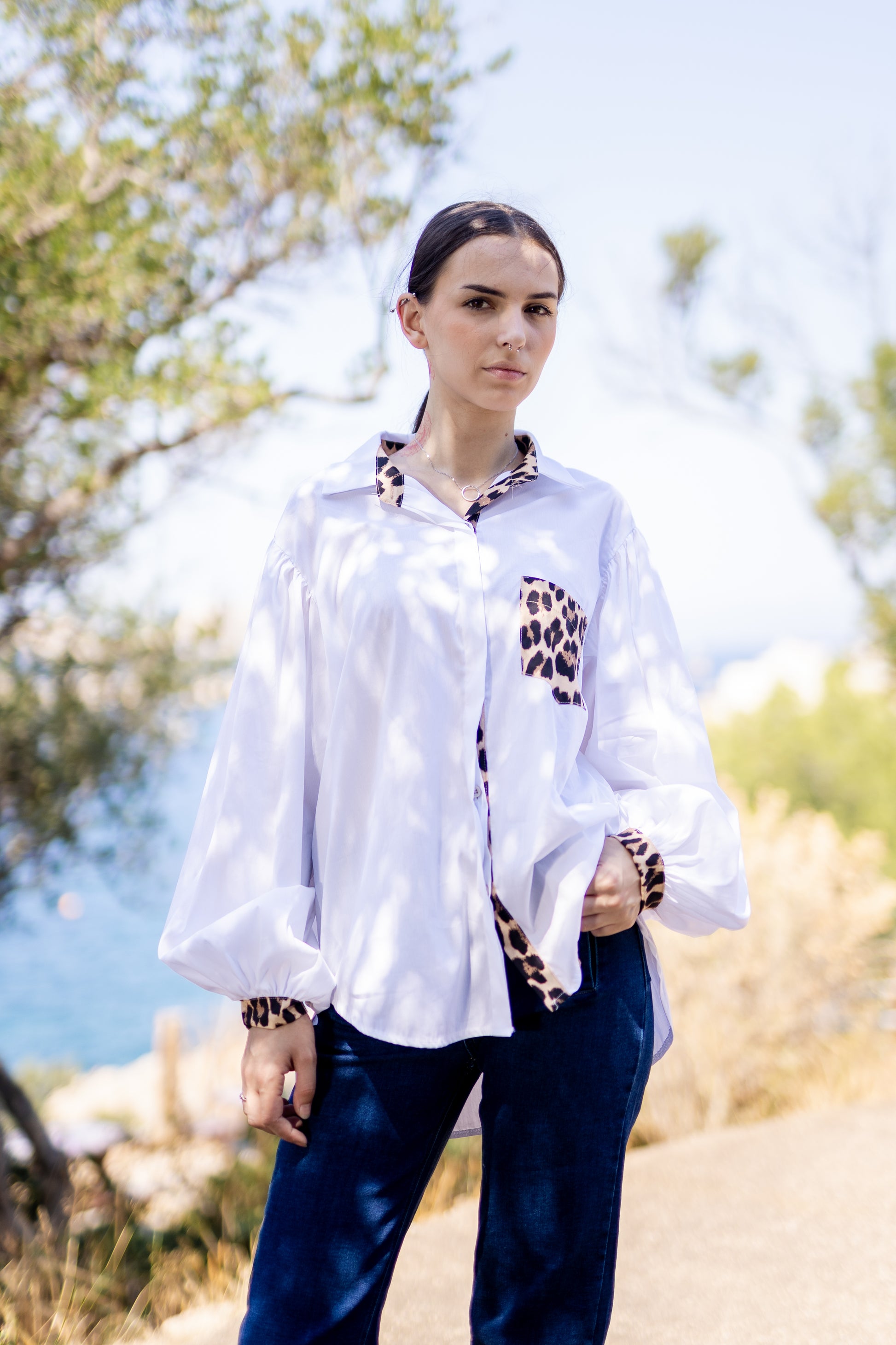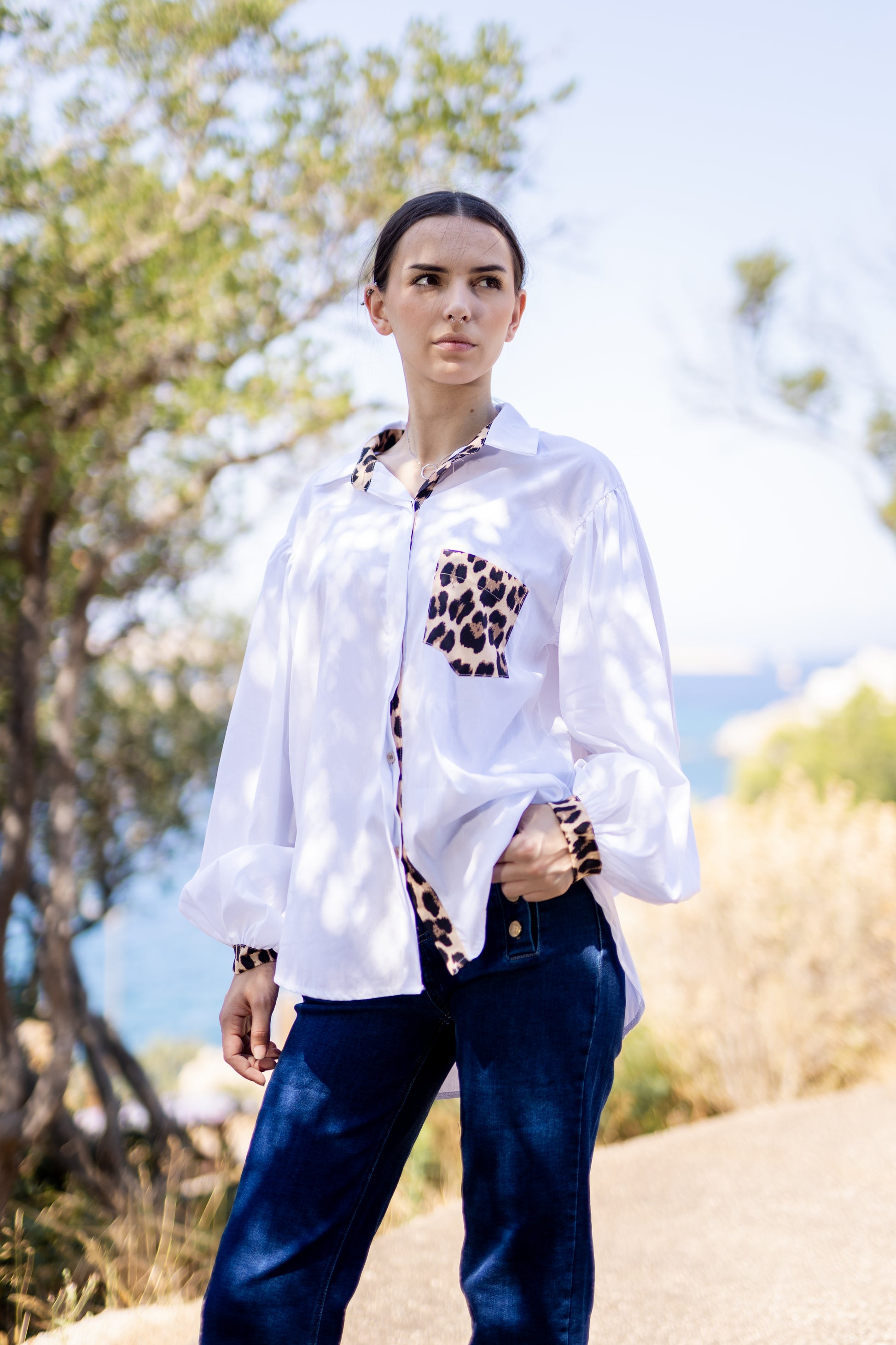 Cette chemise blanche avec un détail léopard est à la fois élégante et audacieuse. Fabriquée avec des matériaux de qualité, elle offre un confort exceptionnel et une touche de style sauvage. Parfaite pour toutes les occasions, elle vous fera toujours paraître sophistiquée et à la pointe de la mode.