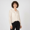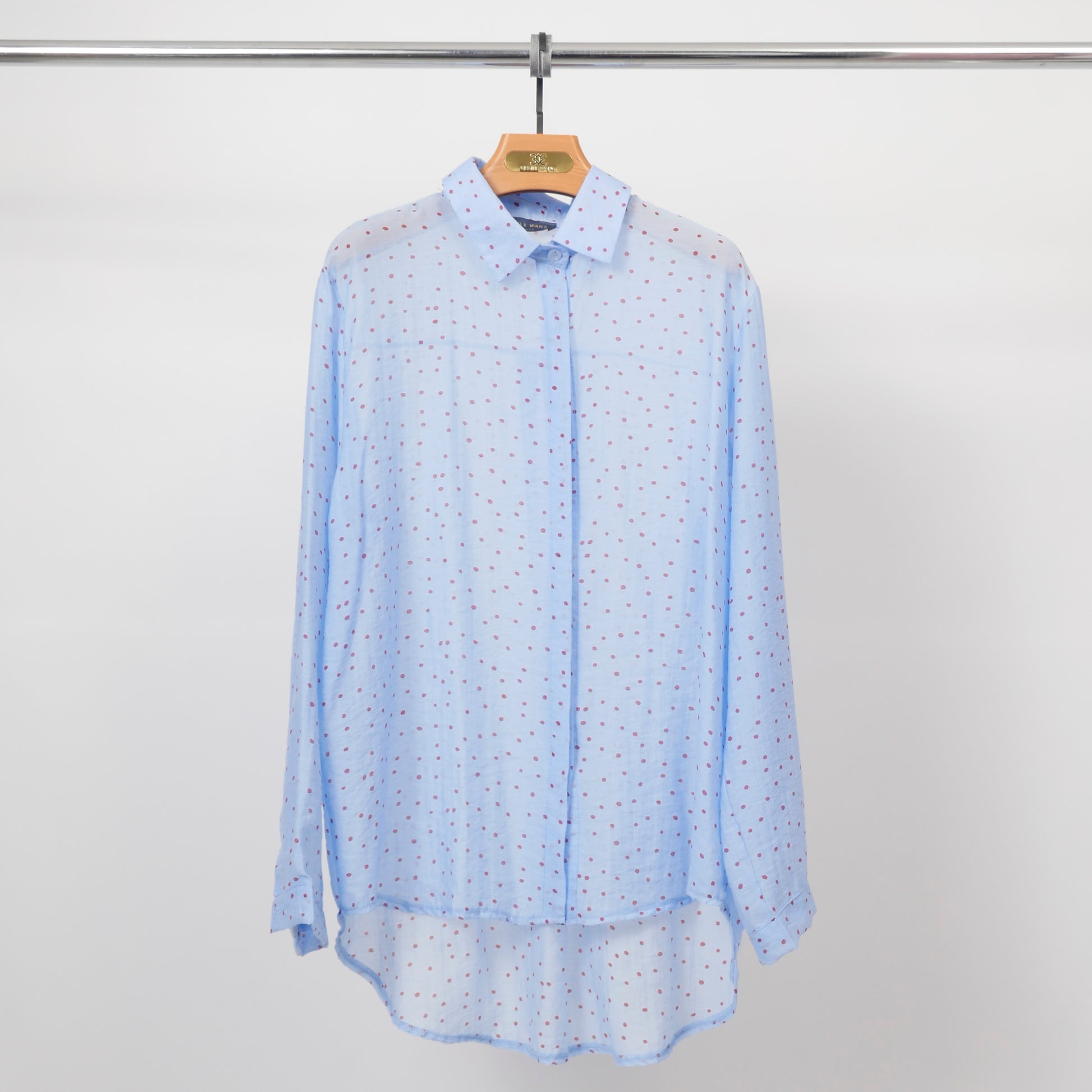 Son imprimé délicat et son tombé souple en font une pièce facile à porter au quotidien. Dotée d'une coupe légèrement oversize, d'une base arrondie plus longue à l’arrière et d’un col classique, elle mise sur l’élégance discrète. Les boutons sont dissimulés pour une finition épurée.
