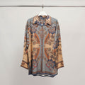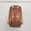 Un souffle bohème et raffiné pour cette chemise imprimée aux teintes chaleureuses et motifs floraux d’inspiration orientale. Son design met en valeur un col classique, une patte de boutonnage discrète et une coupe légèrement évasée pour une silhouette décontractée mais soignée. Sa matière fluide apporte un tombé élégant et un confort optimal au quotidien, tandis que les détails de finition soulignent sa qualité artisanale.
