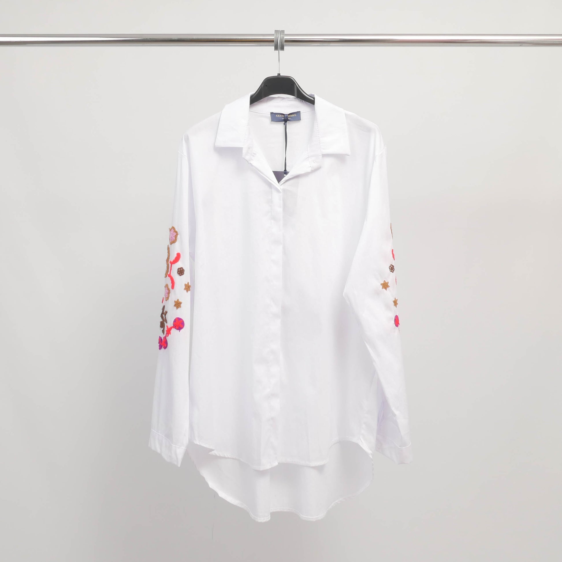 Une coupe oversize et des broderies éclatantes pour une chemise pleine de caractère.