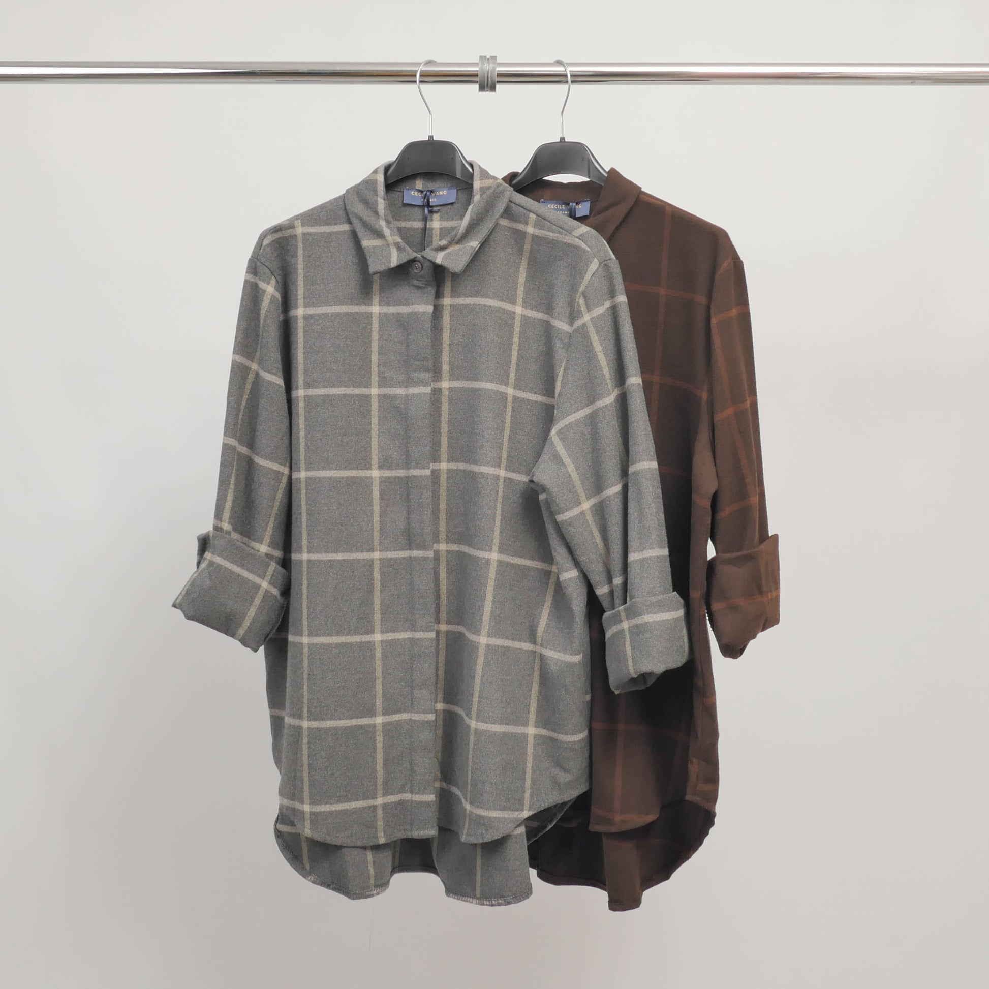 Chemise longue à carreaux avec base arrondie – TDM50320-29