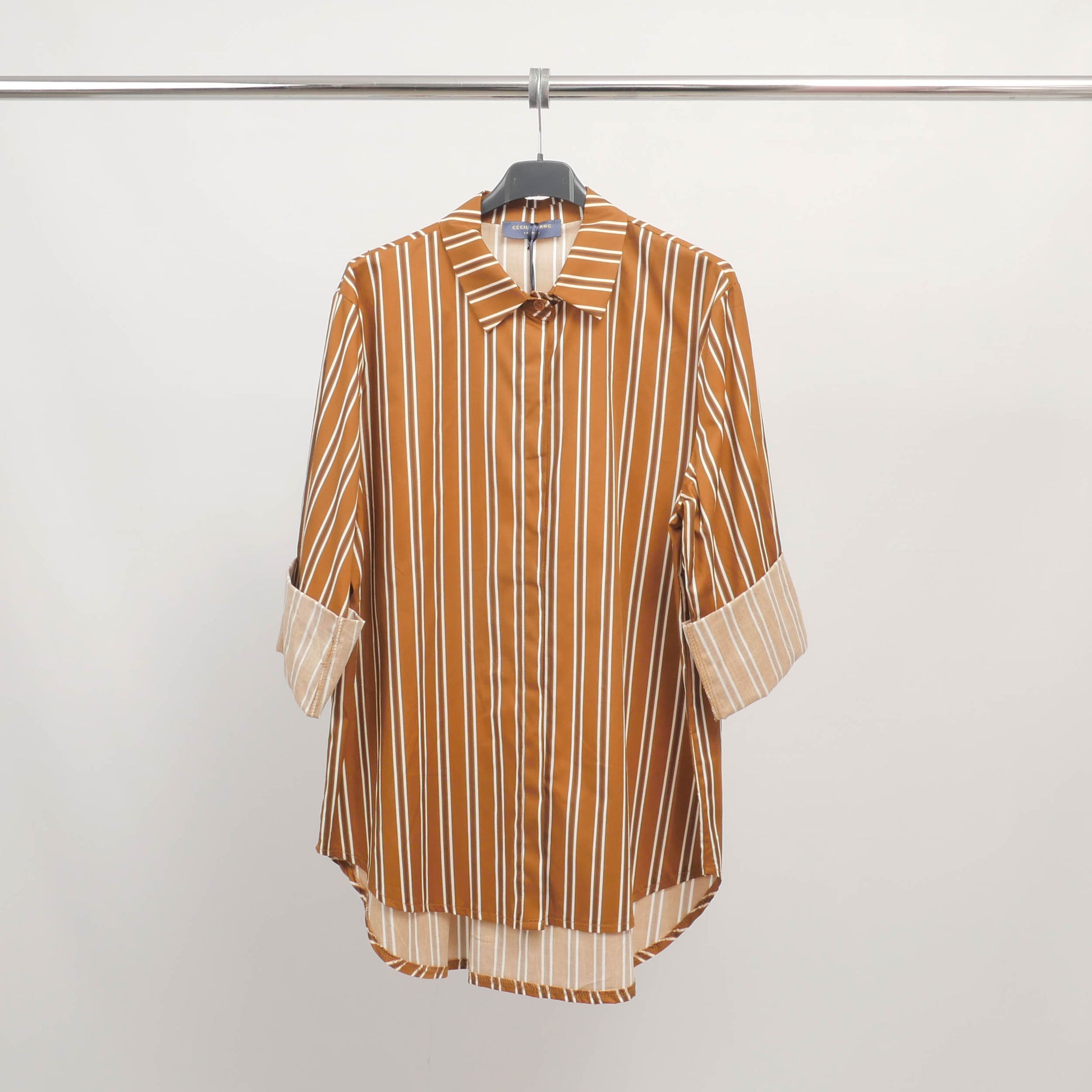 Chemise longue rayée à revers contrastés - TDM50320-3