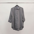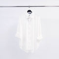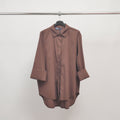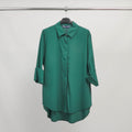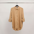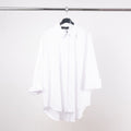 Sa coupe fluide et décontractée est sublimée par une patte de boutonnage cachée, un col chemise classique et des manches longues à revers souples. L’ourlet asymétrique plus long à l’arrière apporte une touche contemporaine et flatte la silhouette avec subtilité.