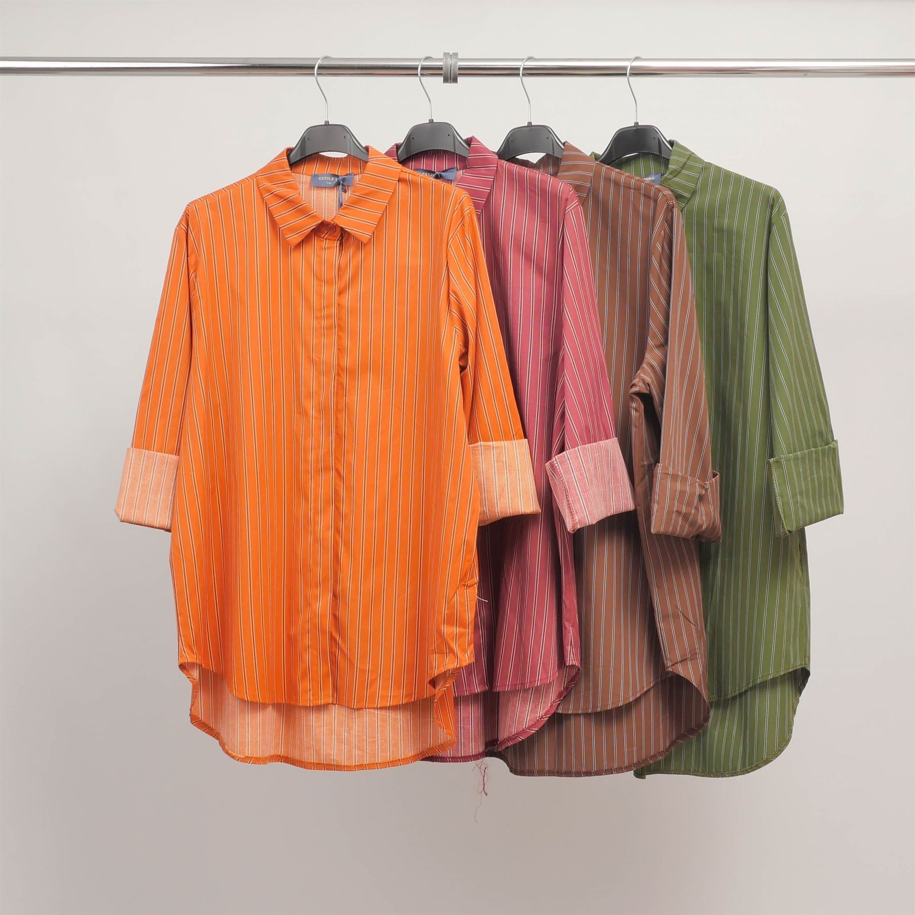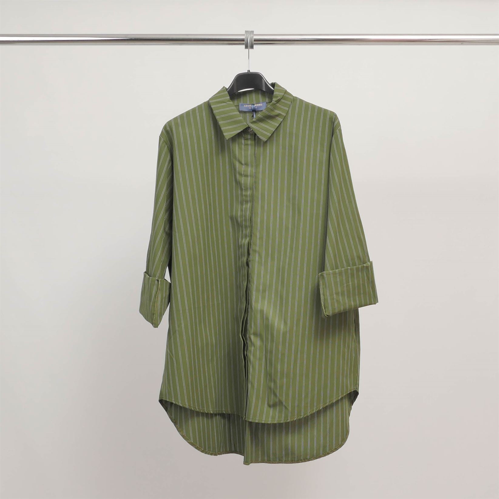 Un classique revisité avec modernité : cette chemise rayée en coton s’impose comme une pièce incontournable de la saison. Sa coupe oversize à l’ourlet arrondi à revers apportent une touche décontractée et contemporaine, tandis que les fines rayures verticales allongent la silhouette avec élégance. Le col chemise structuré et la fermeture boutonnée invisible en font une base idéale à mixer selon vos envies.