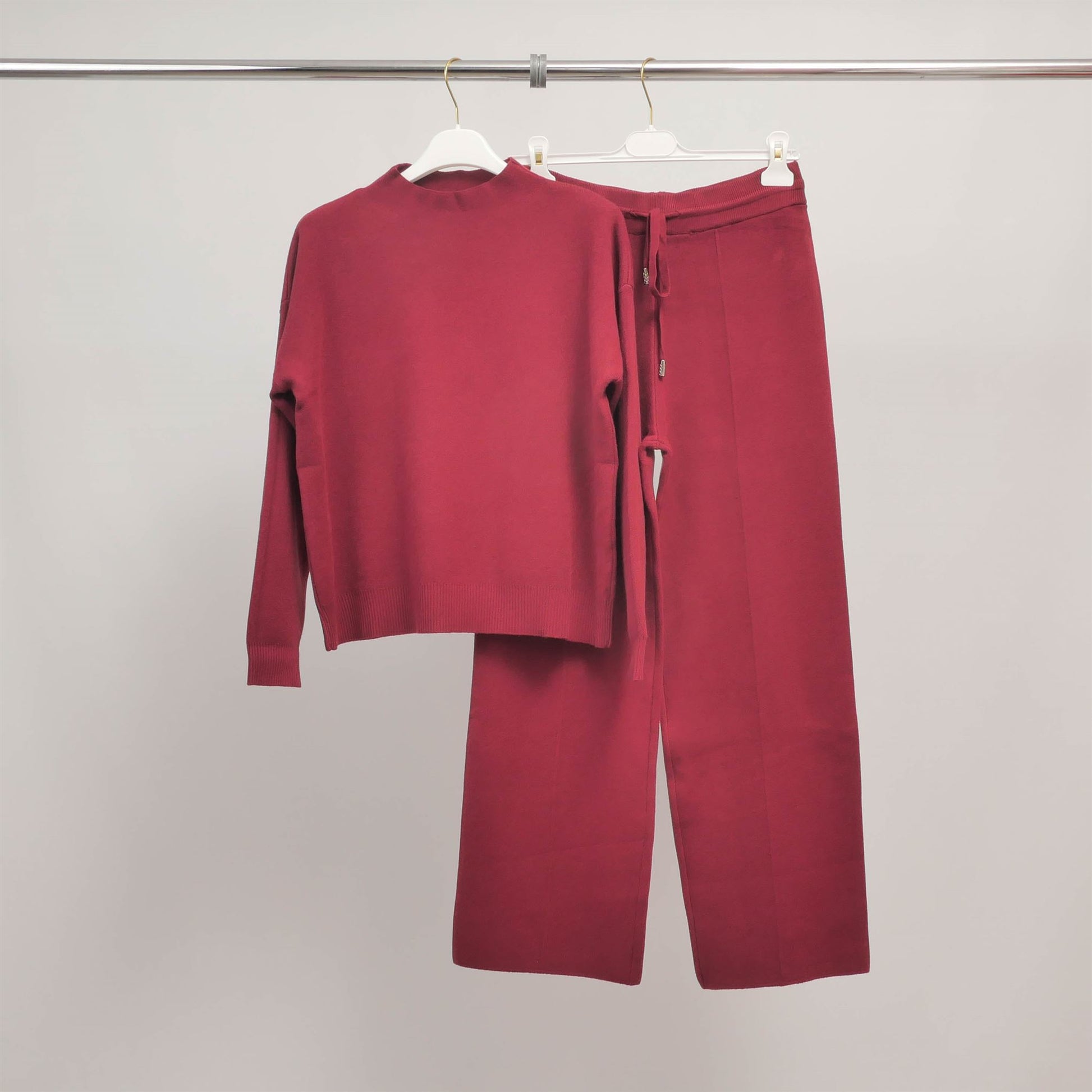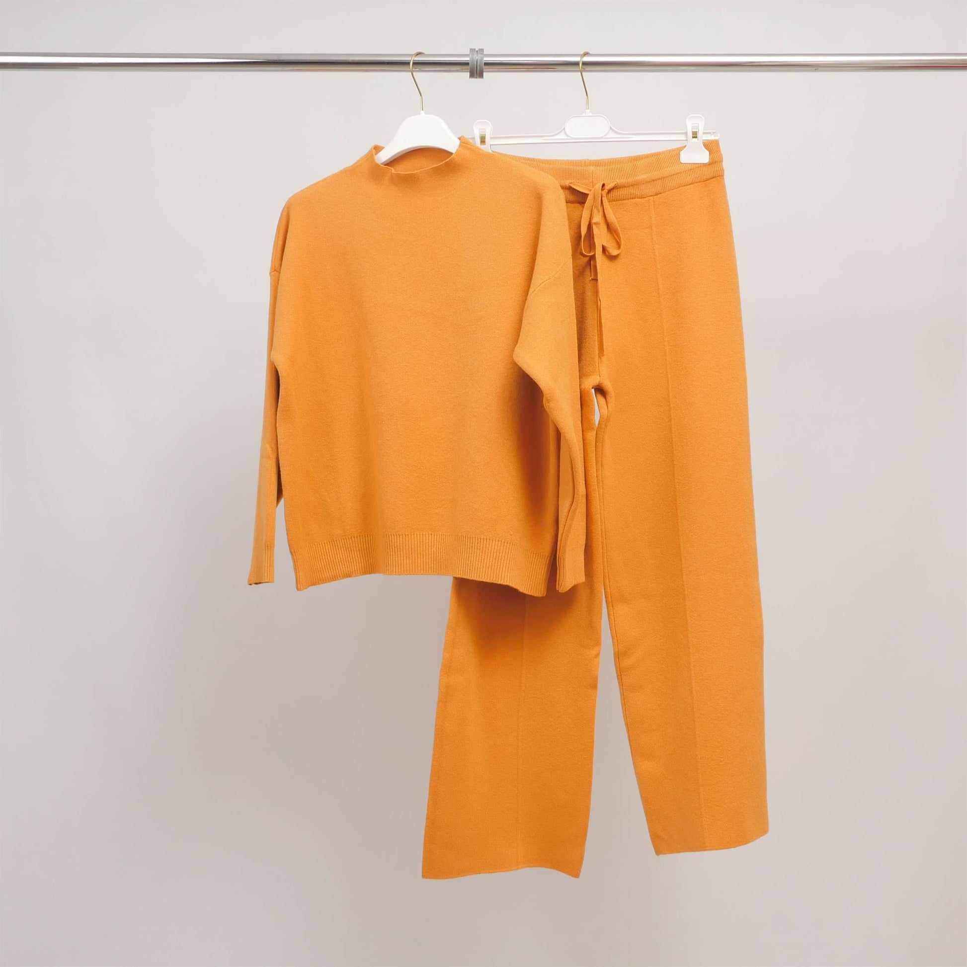 Cet ensemble se compose d’un pull à col montant légèrement montant et de son pantalon assorti à taille élastiquée avec cordon de serrage. Les finitions bord-côte aux poignets et à la base du pull apportent une tenue impeccable, tandis que la coupe droite du pantalon allonge la silhouette.