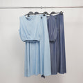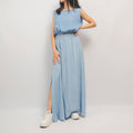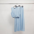 Confectionné en 100 % lyocell, cet ensemble associe un top sans manches à encolure ronde, resserré à la taille pour une coupe légèrement blousante, et une jupe longue à taille élastiquée au tombé fluide. Le tissu effet denim apporte un style casual chic, tout en offrant une douceur exceptionnelle et une belle tenue.