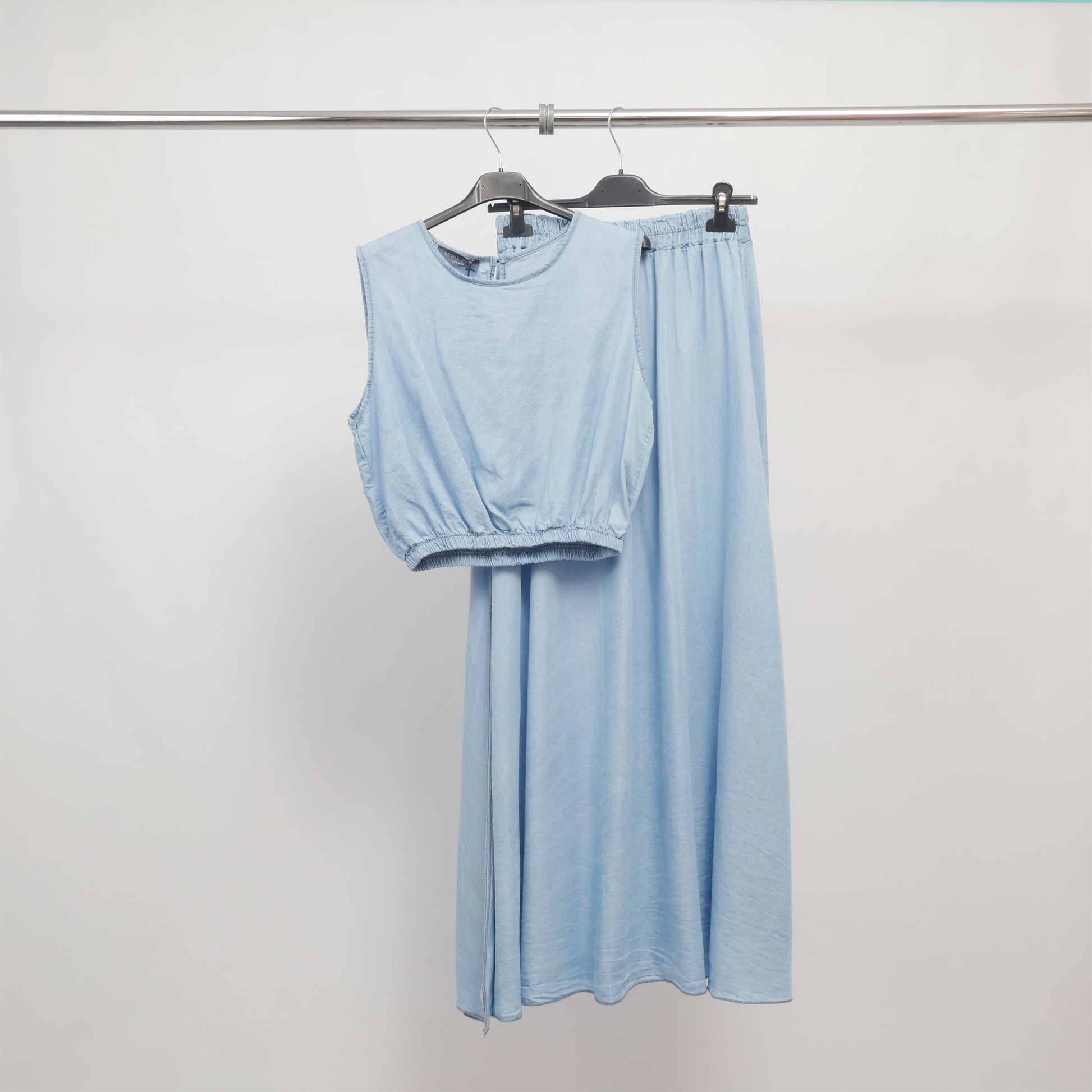 Ensemble top court et jupe longue en lyocell denim - TDM31323-2