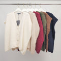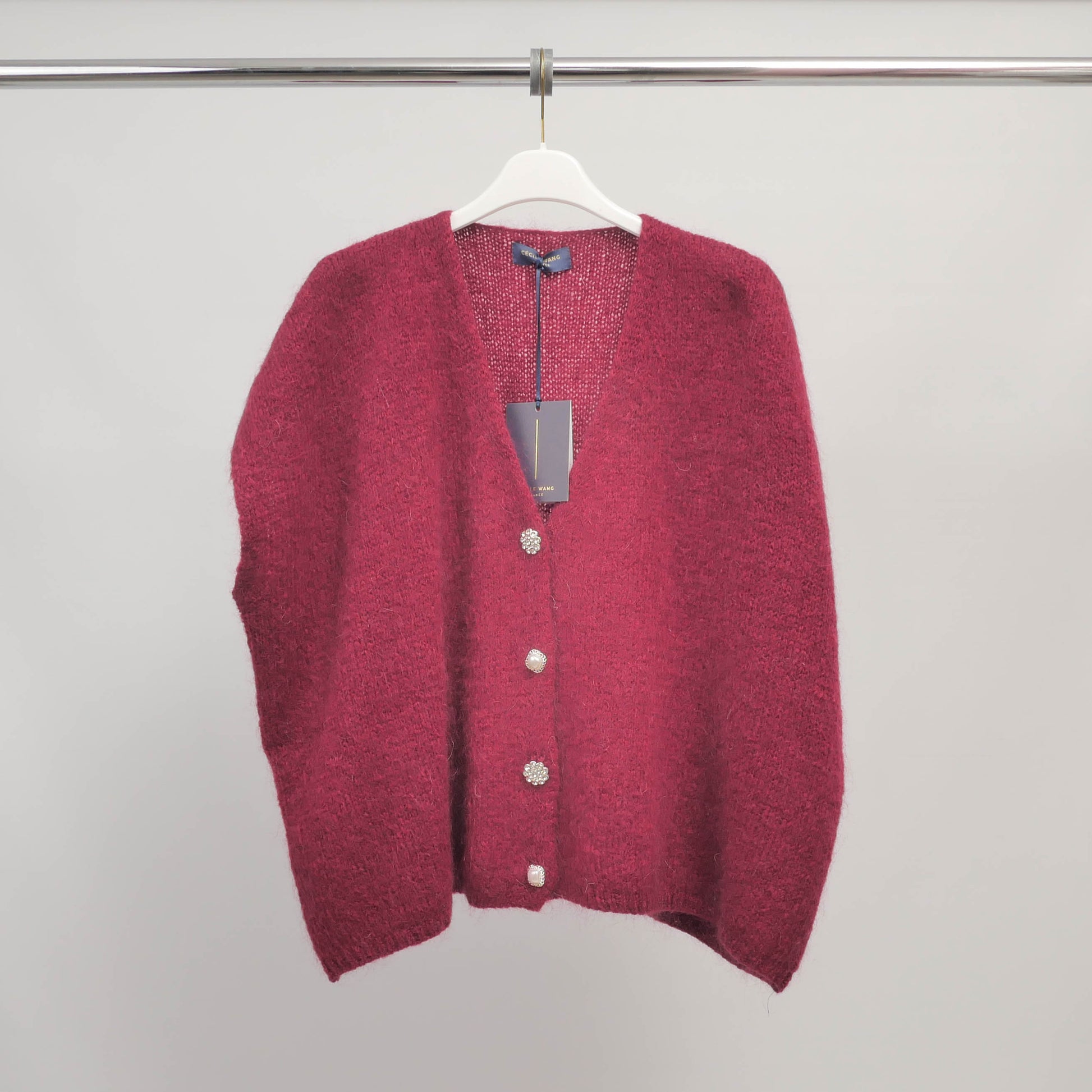 Ce gilet sans manches séduit par sa texture duveteuse, sa coupe légèrement oversize et ses boutons bijoux éclatants qui apportent une touche précieuse à une silhouette décontractée. Son encolure en V met en valeur le port de tête et permet de superposer facilement sur une chemise ou un col roulé.