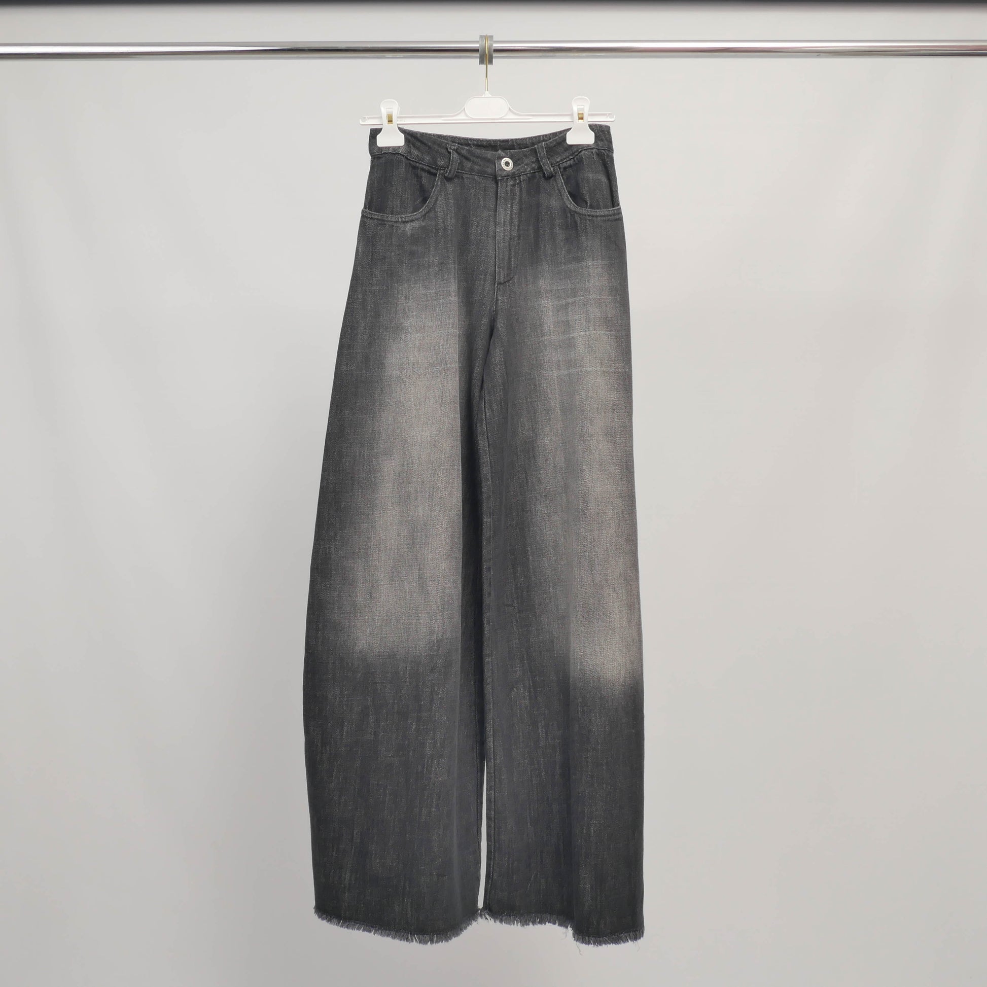 Avec sa coupe extra-large et sa taille haute flatteuse, ce jean joue sur les volumes tout en allongeant la silhouette. Le délavage marqué sur l’avant apporte un effet vintage, tandis que les bords bruts effilés au bas des jambes ajoutent une touche urbaine et tendance.