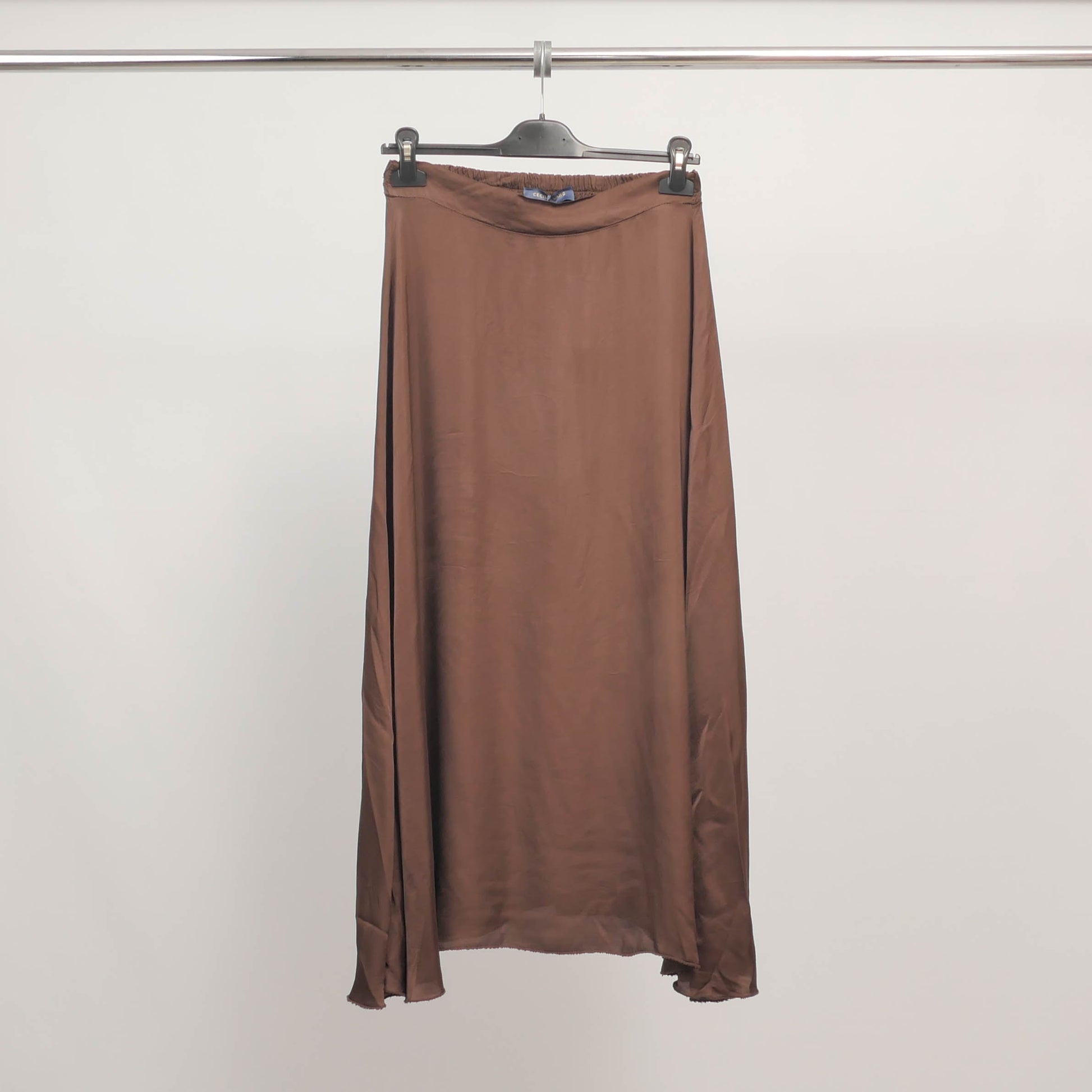 Épure et légèreté définissent cette jupe longue en viscose, parfaite pour une silhouette aérienne et féminine. Sa texture satinée capte délicatement la lumière, apportant une touche de raffinement à une coupe minimaliste.