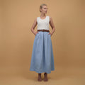 Élégante et intemporelle, cette jupe longue sublime la silhouette avec naturel et modernité. Sa taille haute structurée est mise en valeur par des plis délicats à l’avant et une ceinture intégrée qui souligne la ligne avec raffinement. Sa coupe évasée offre un tombé fluide et un mouvement gracieux à chaque pas, tandis que la matière douce assure confort et légèreté au quotidien. Facile à associer, elle se porte aussi bien avec un top ajusté et des sandales pour une allure estivale chic qu’avec une blouse fluide et des escarpins pour une silhouette plus sophistiquée.
