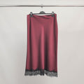 Élégante et sensuelle, cette jupe satinée incarne la féminité dans sa version la plus raffinée. Son tissu fluide au fini brillant caresse la silhouette, tandis que sa coupe droite mi-longue allonge la jambe avec subtilité. Le détail en dentelle noire délicatement cousu à l’ourlet apporte une touche lingerie assumée, pour un look à la fois chic et audacieux. À porter avec un pull oversize pour un contraste de textures ou avec une blouse soyeuse pour une allure ultra sophistiquée.