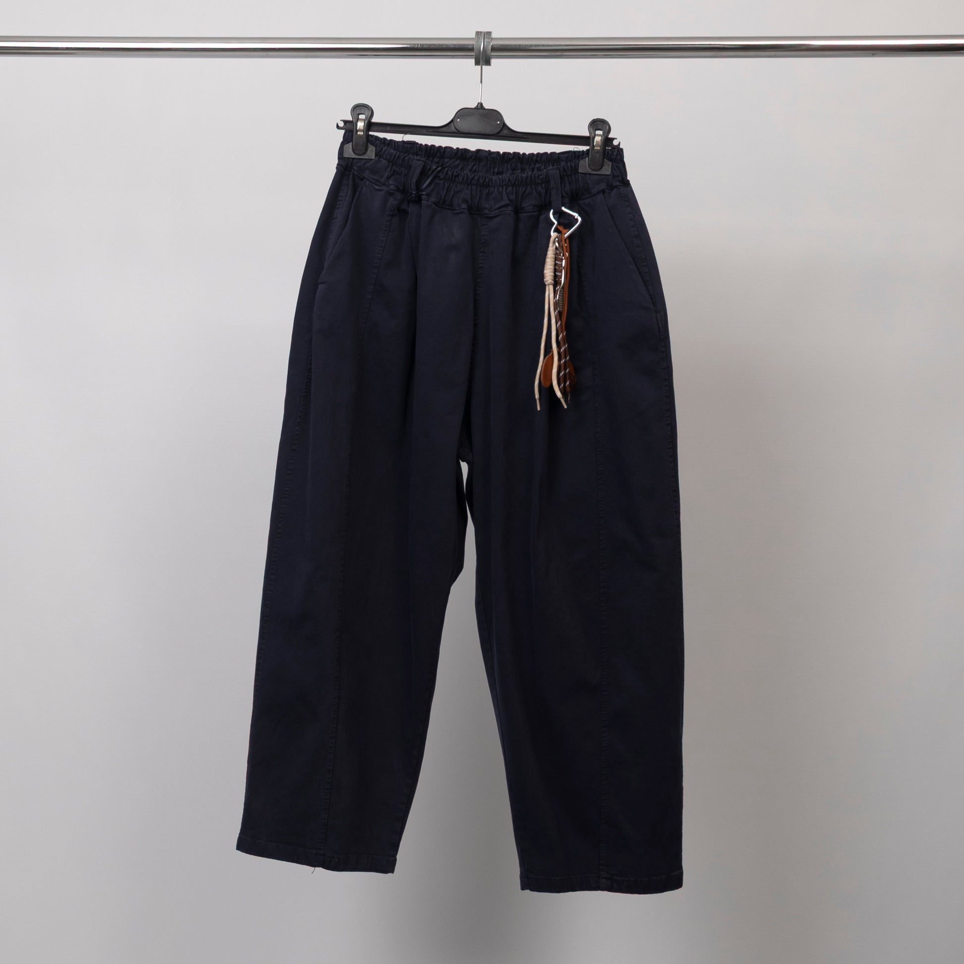Sa coupe ample légèrement fuselée offre une silhouette confortable et moderne, tandis que sa taille élastiquée avec cordon de serrage assure un ajustement parfait. Les plis à l’avant structurent la jambe et apportent un volume subtil. Confectionné dans un sergé de coton doux et stretch, il accompagne tous vos mouvements sans compromis sur le style.