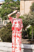 Un pantalon élégant et aérien qui revisite le classique imprimé toile de Jouy avec modernité. Sa taille élastiquée à cordon ajustable assure confort et maintien, tandis que la coupe large et fluide allonge la silhouette avec naturel. Les finitions contrastées au bas des jambes apportent une touche graphique raffinée. À porter avec un simple top uni pour un look décontracté chic, ou en coordonné avec la robe-chemise assortie pour un ensemble sophistiqué.