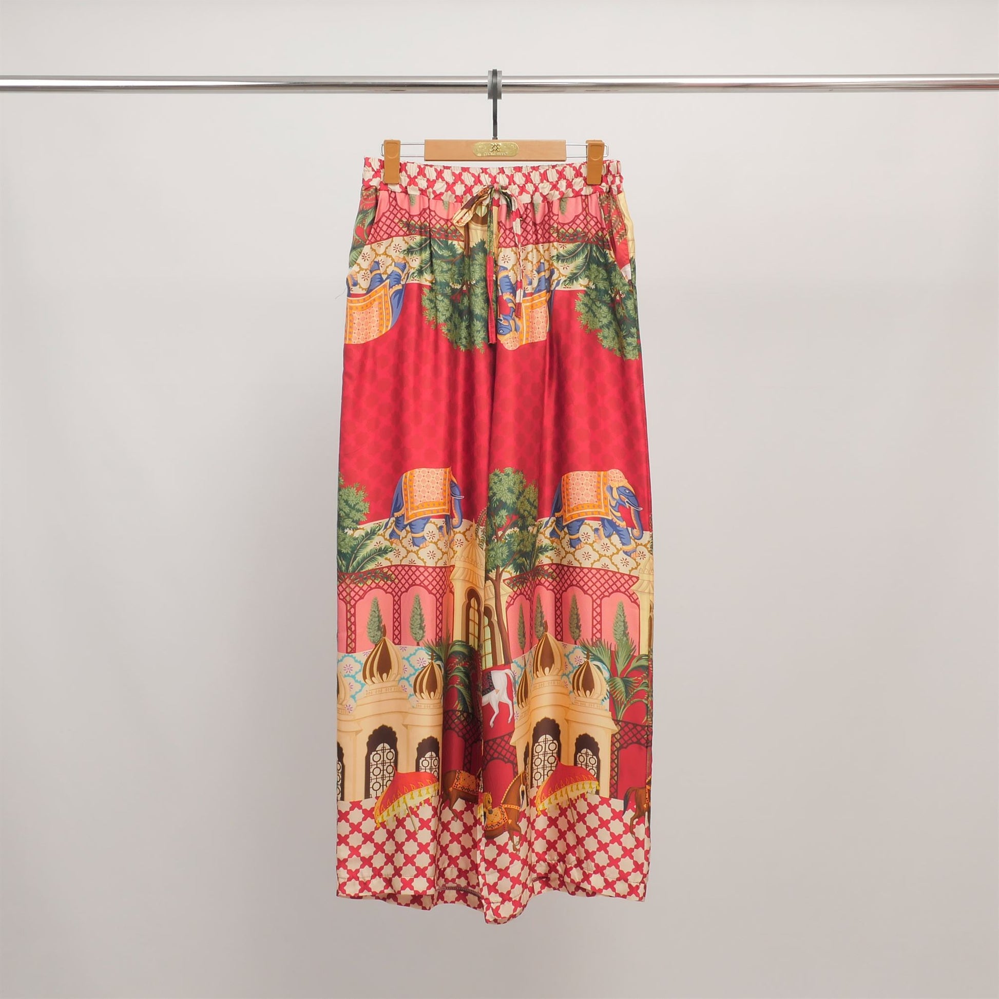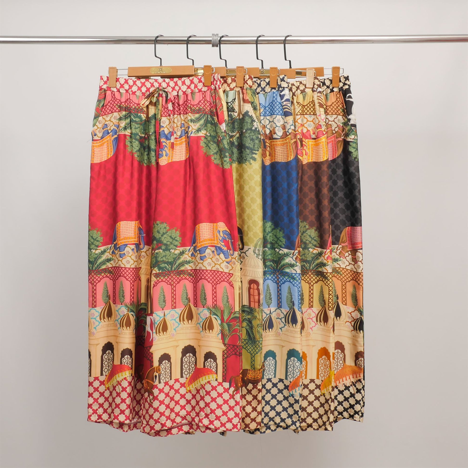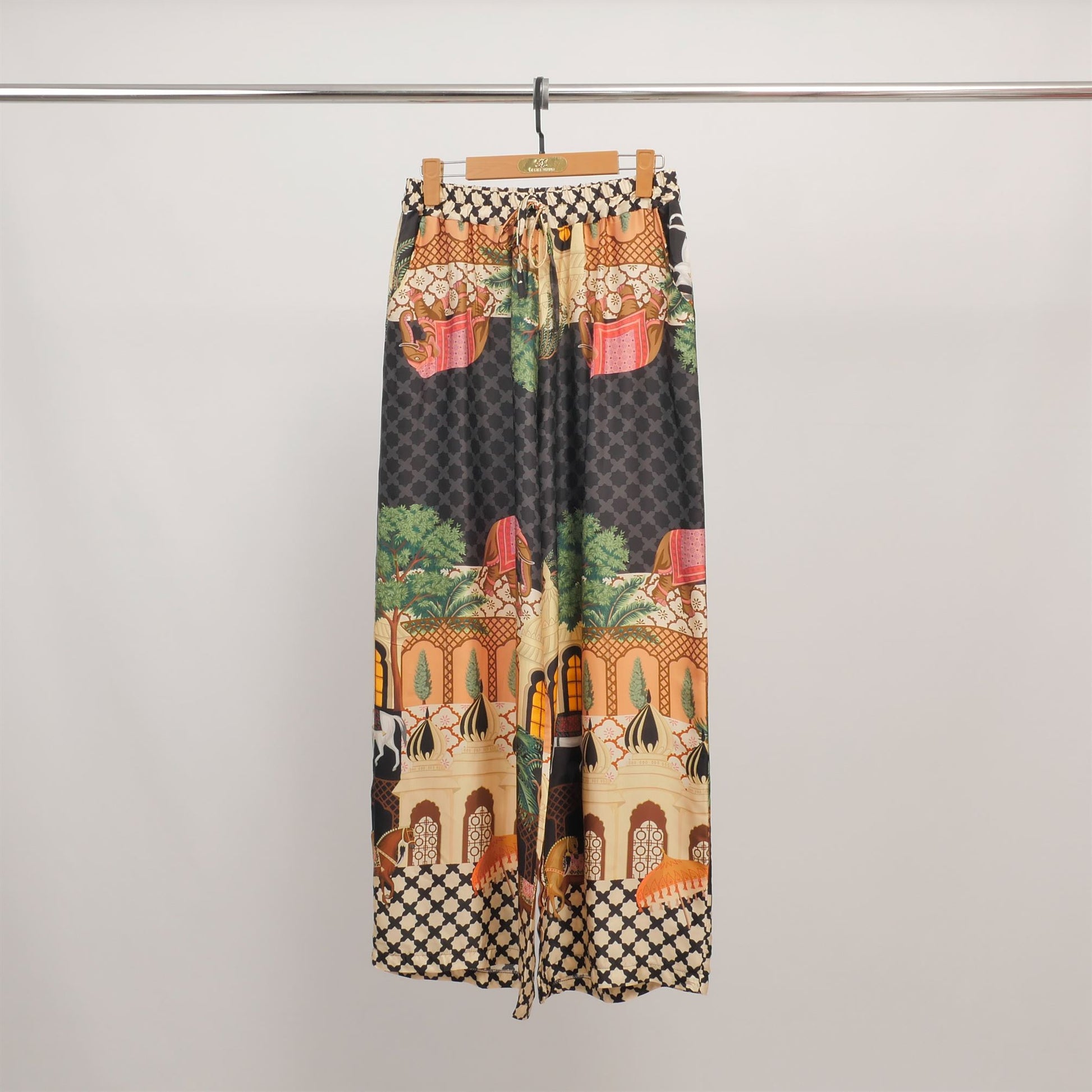 Pantalon imprimé palais et éléphants en viscose et soie KD6637VS-25