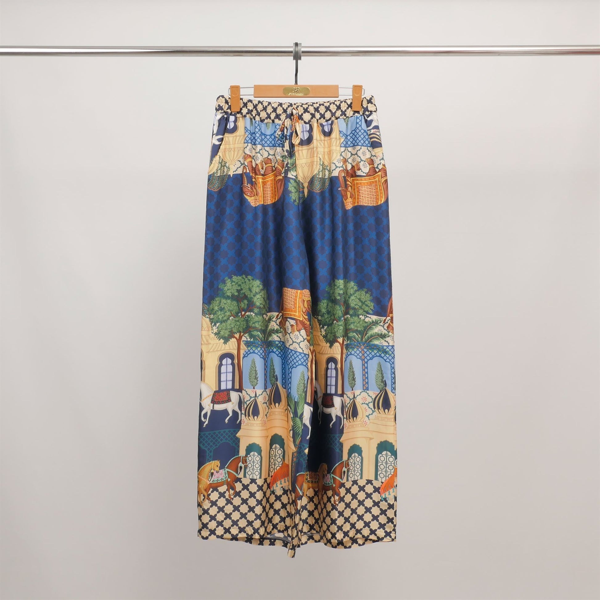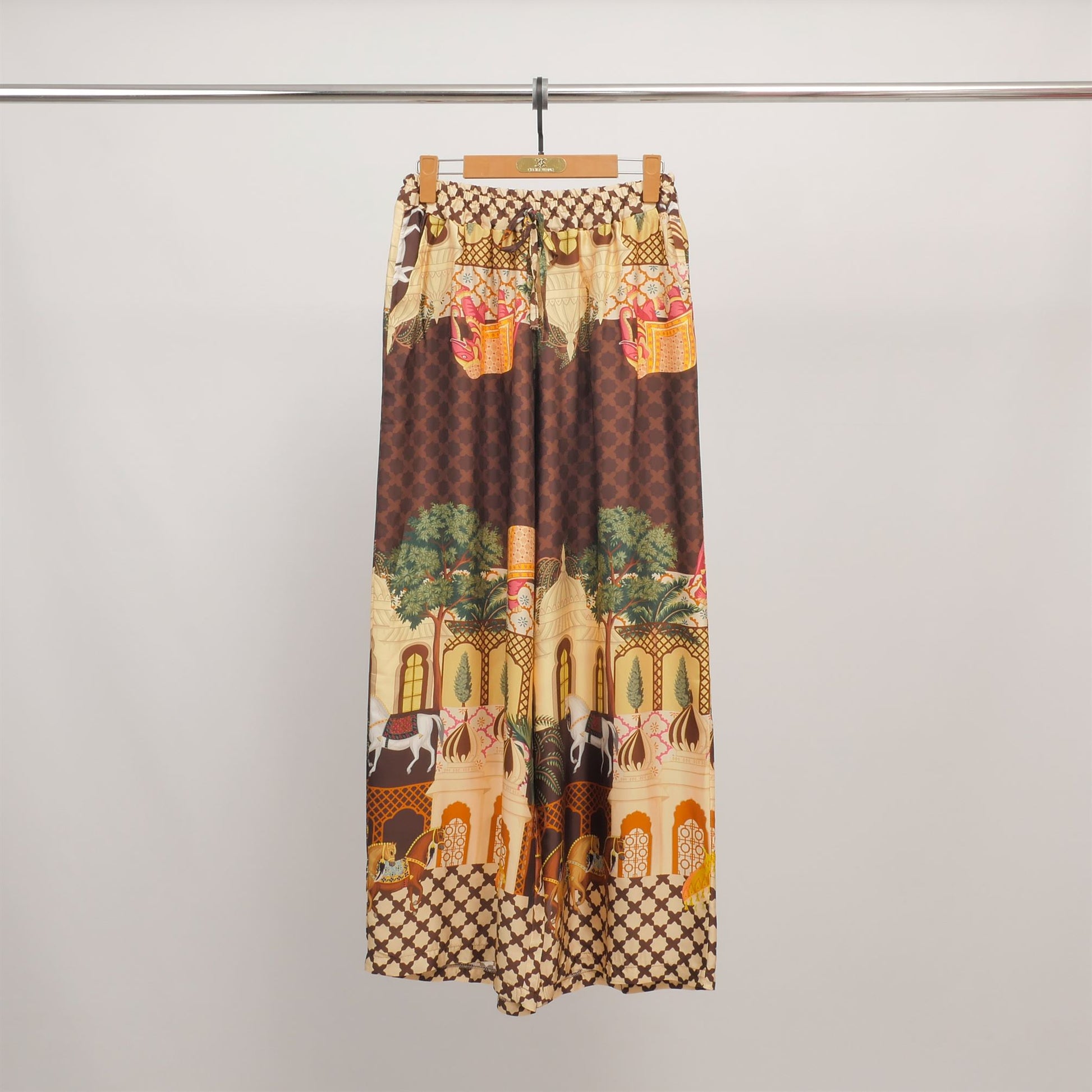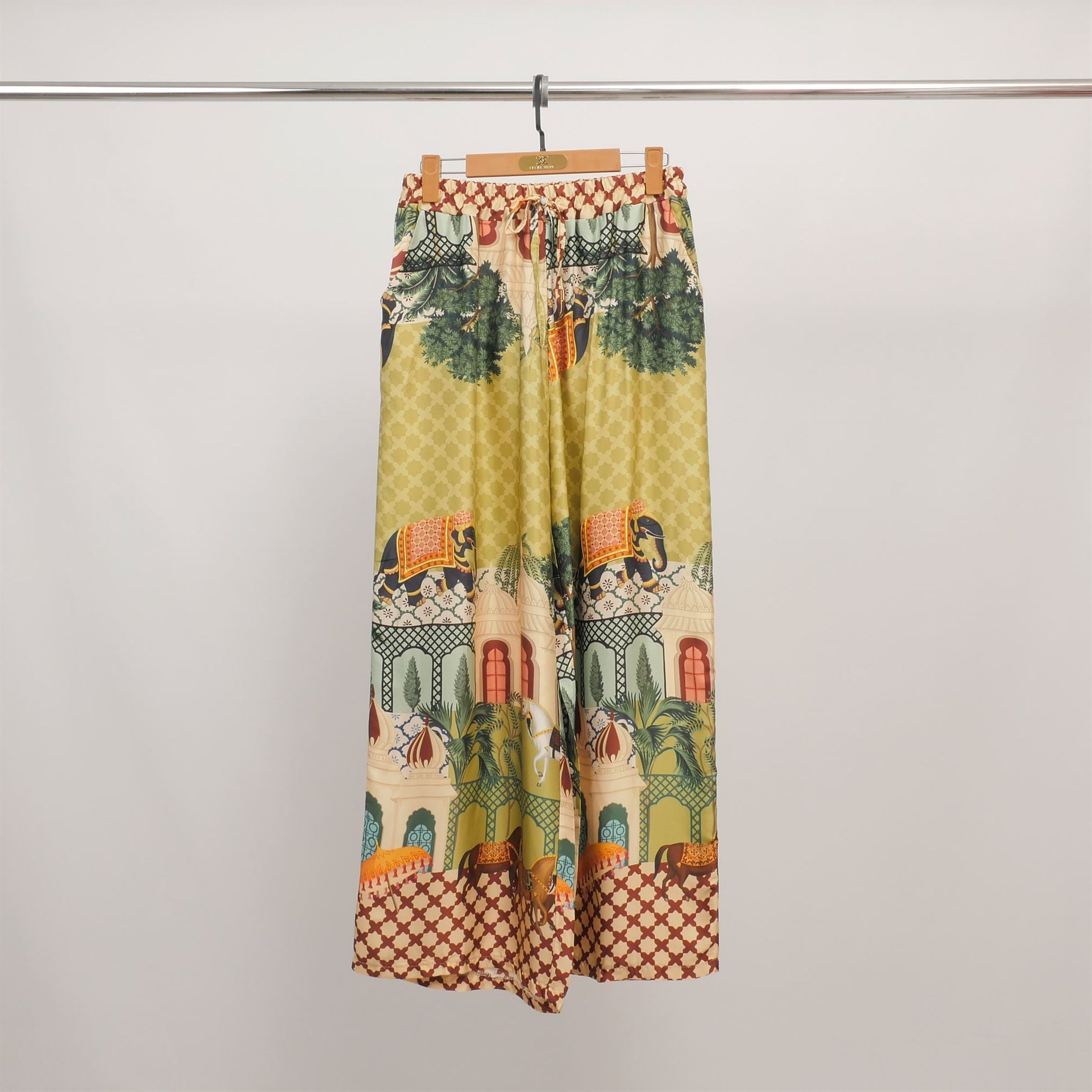 Pantalon imprimé palais et éléphants en viscose et soie KD6637VS-25