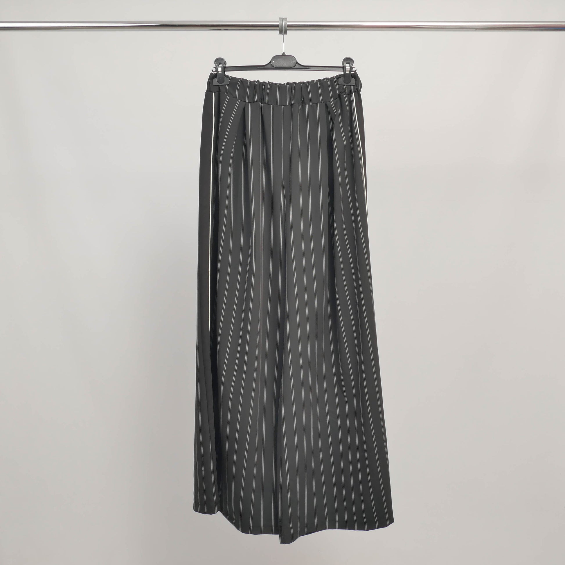 L'élégance décontractée prend une nouvelle dimension avec ce pantalon large à rayures. Sa coupe fluide et aérienne flatte toutes les silhouettes, tandis que sa taille élastiquée assure un confort optimal tout au long de la journée. Les rayures verticales allongent la jambe avec subtilité, apportant une touche de raffinement à cette pièce facile à vivre. À associer avec une chemise fluide rentrée à la taille pour un look bureau chic, ou un crop top ajusté pour une allure plus urbaine.