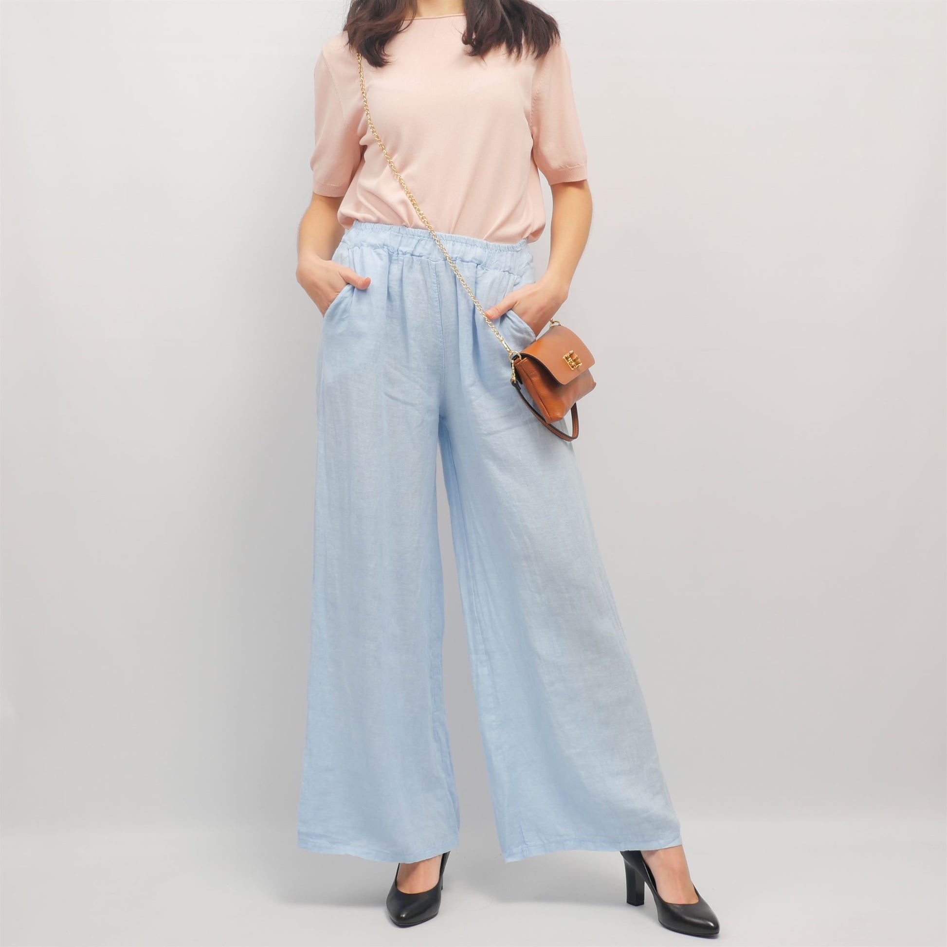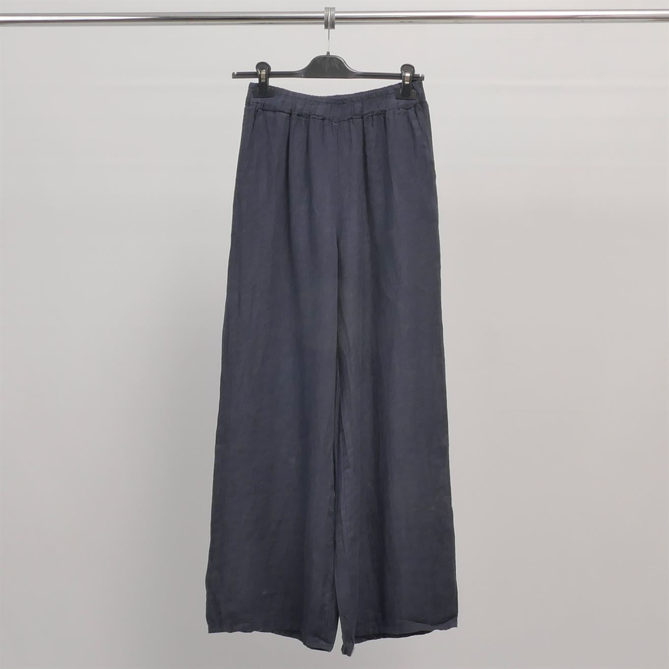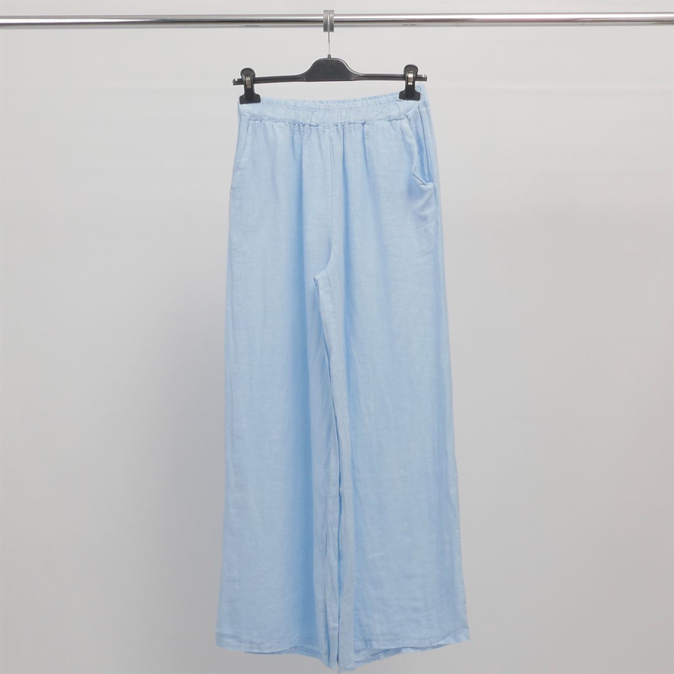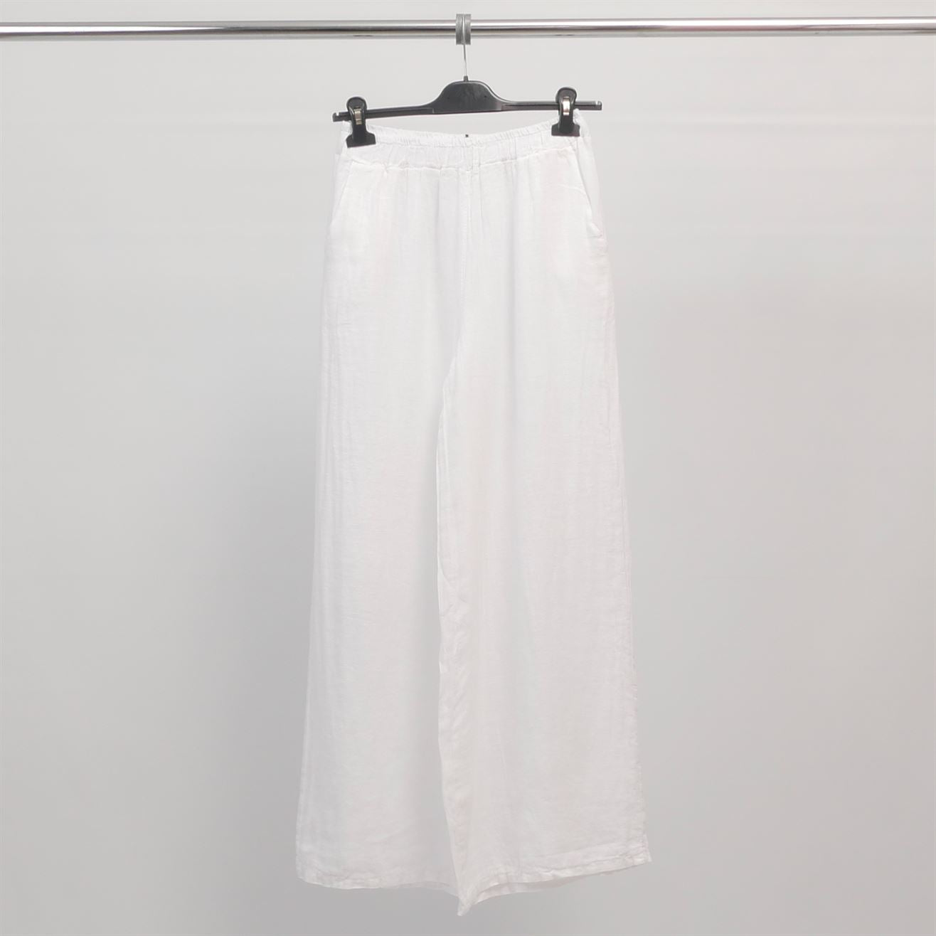 Ce pantalon large en lin séduit par sa coupe ample, sa taille entièrement élastiquée et ses poches latérales pratiques. Sa matière naturelle et aérienne apporte un confort optimal, idéal pour affronter les journées chaudes avec élégance.