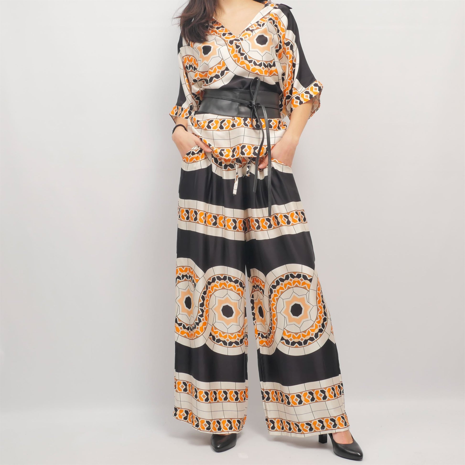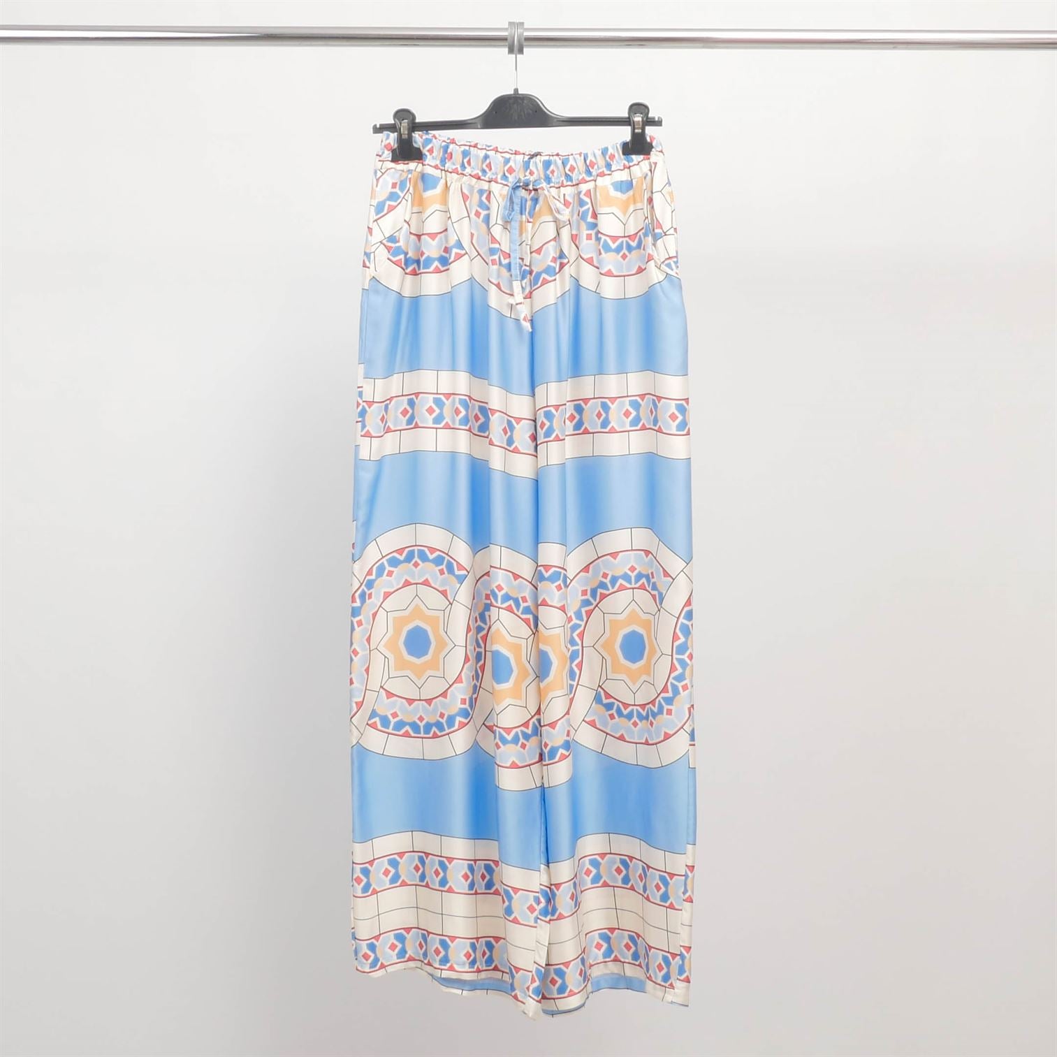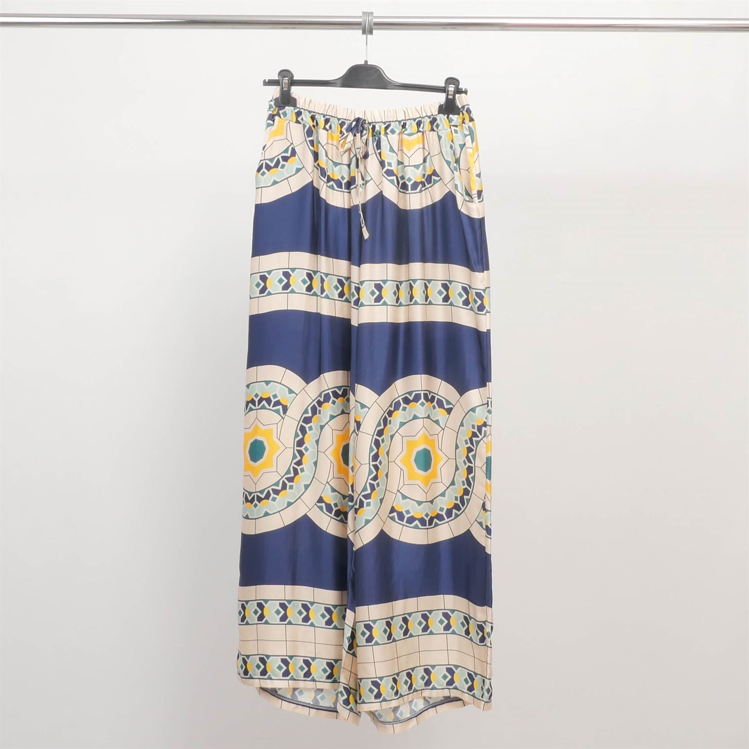 Pantalon large imprimé géométrique taille élastique KD6637VS-17