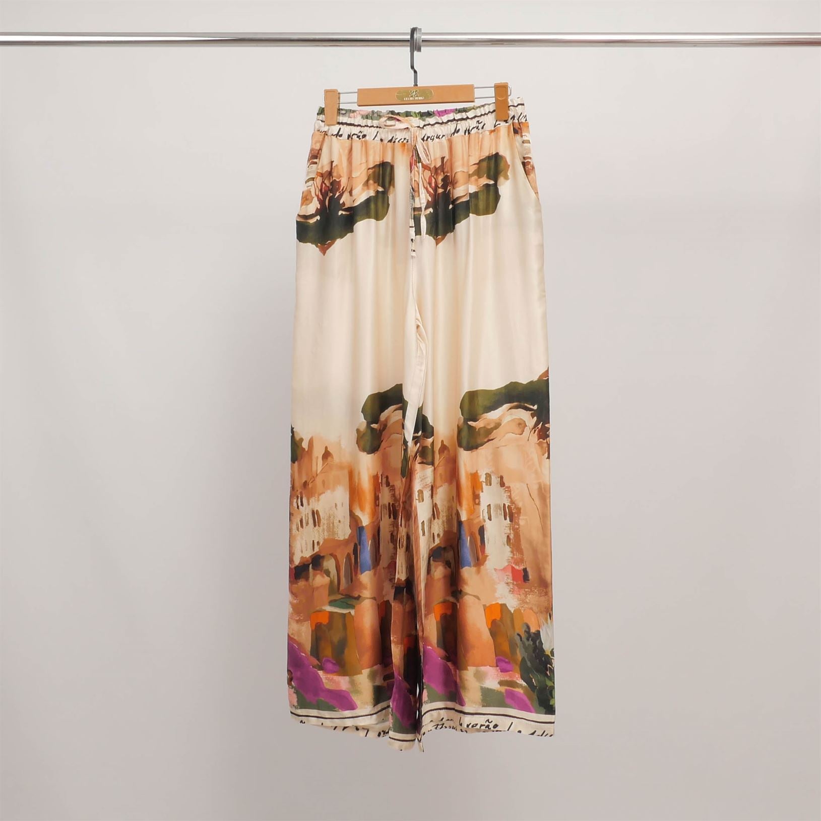 Pantalon large imprimé tableau en viscose et soie KD6637VS-27