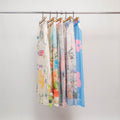 Lavage délicat à 30°C. Ne pas utiliser de javel. Repassage doux à l’envers. Séchage naturel conseillé pour préserver les couleurs et la fluidité du tissu.