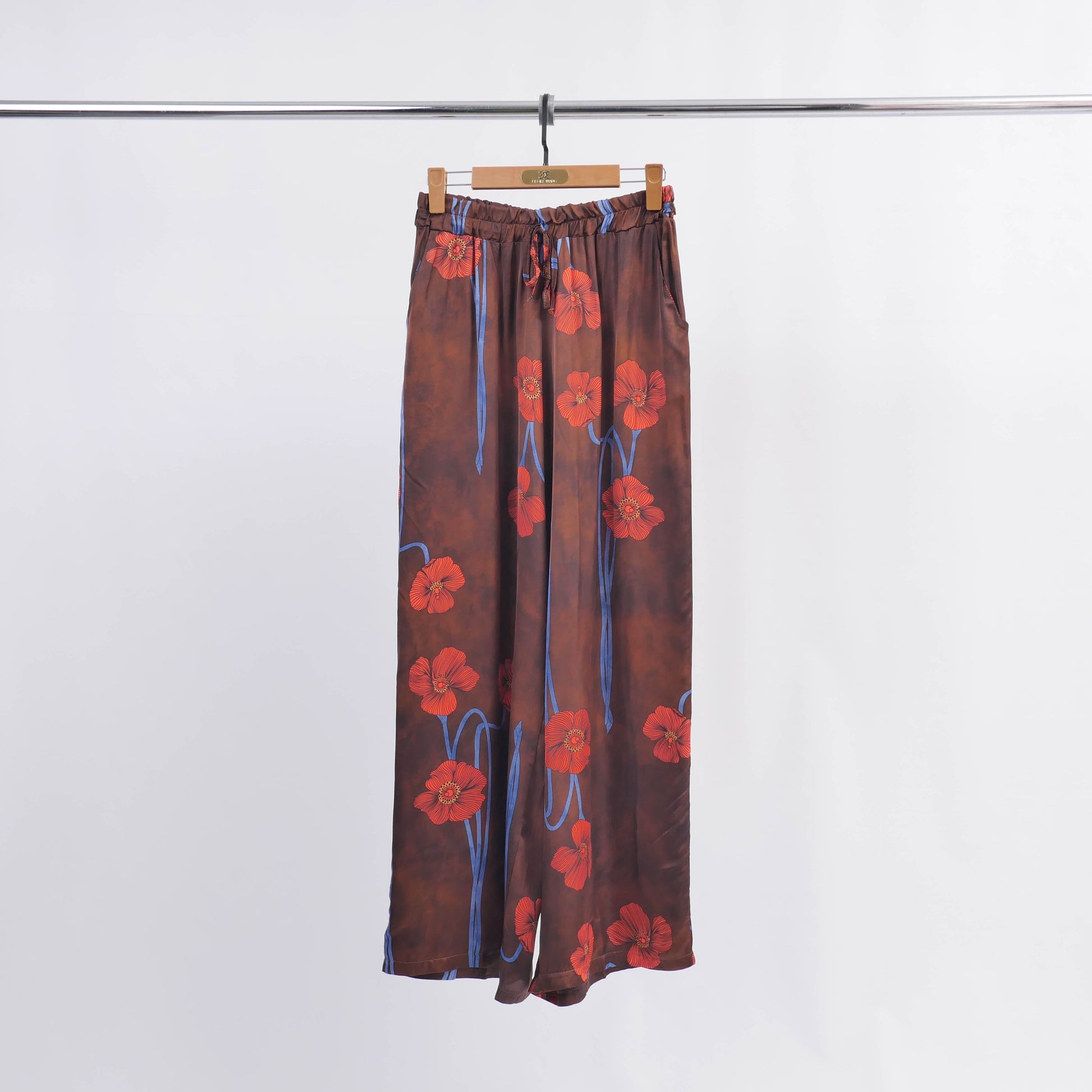 Apportez une touche de raffinement et de romantisme à votre garde-robe avec ce magnifique pantalon satiné à fleurs. Conçu dans une matière fluide et douce au toucher, il offre une allure chic et décontractée à la fois