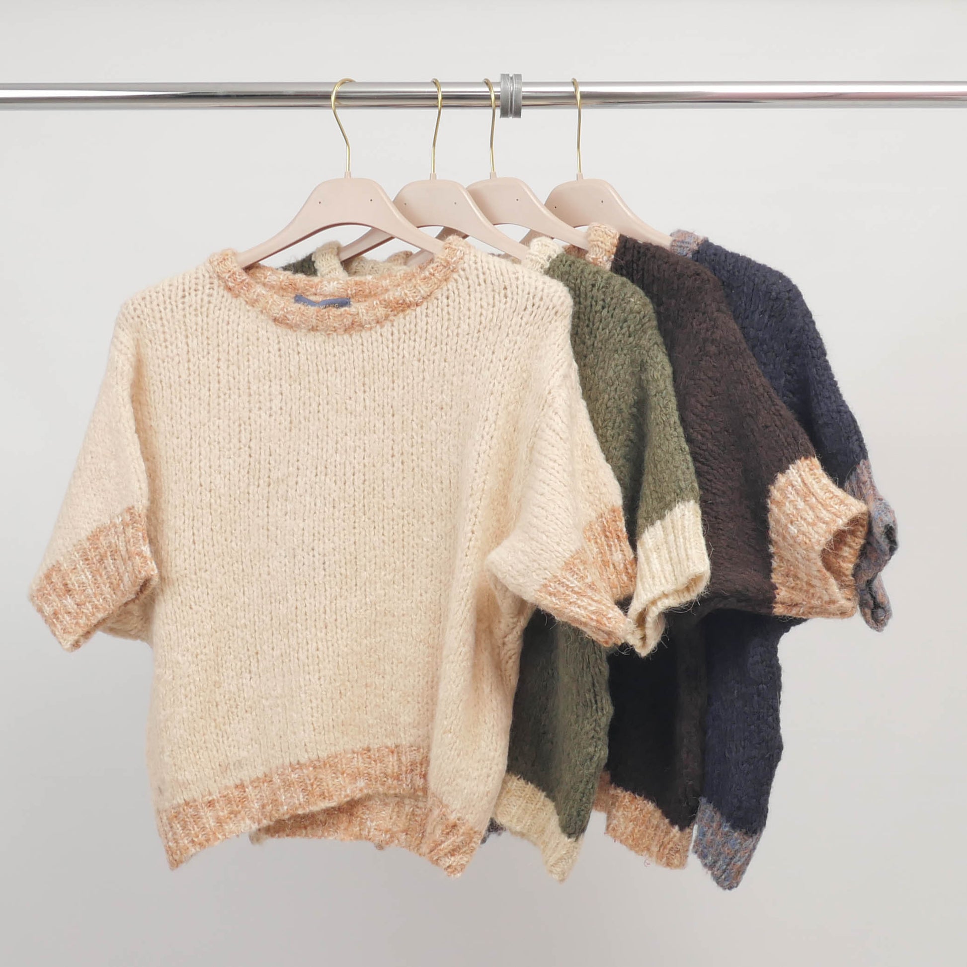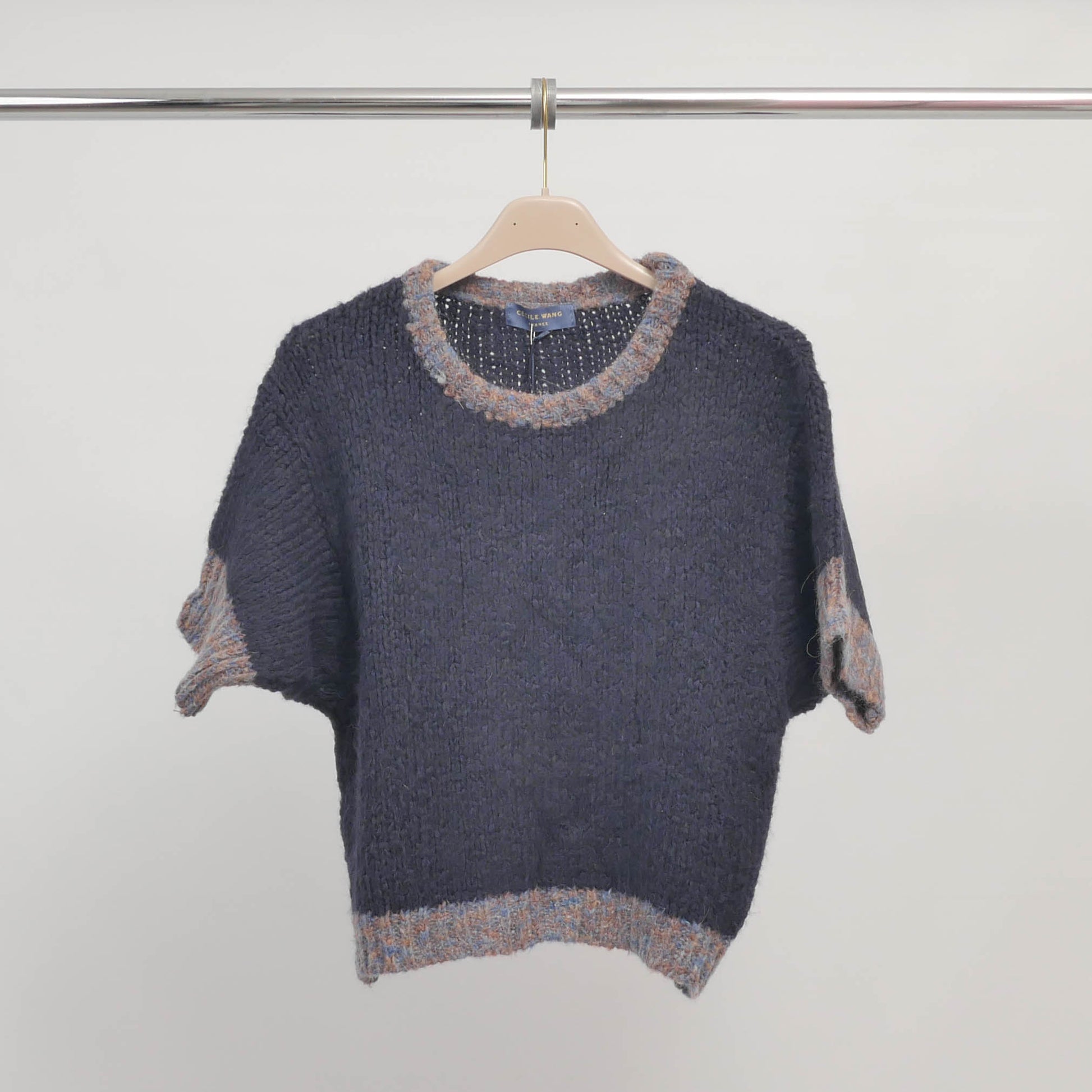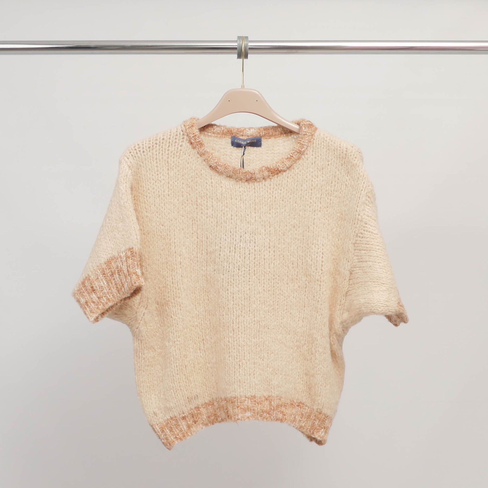 Un esprit cocooning revisité en version estivale. Ce pull bicolore à manches courtes se distingue par sa maille moelleuse et son jeu de contrastes sur le col, les manches et la base. Sa coupe boxy légèrement raccourcie lui confère une allure moderne, parfaite pour jouer les superpositions ou le porter à même la peau. Confortable et doux, il s’associe aisément avec un jean taille haute, une jupe fluide ou un pantalon en maille pour une silhouette casual et stylée.