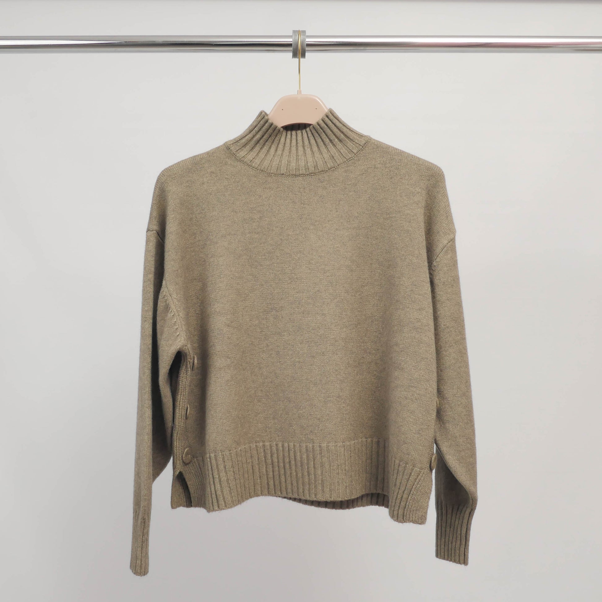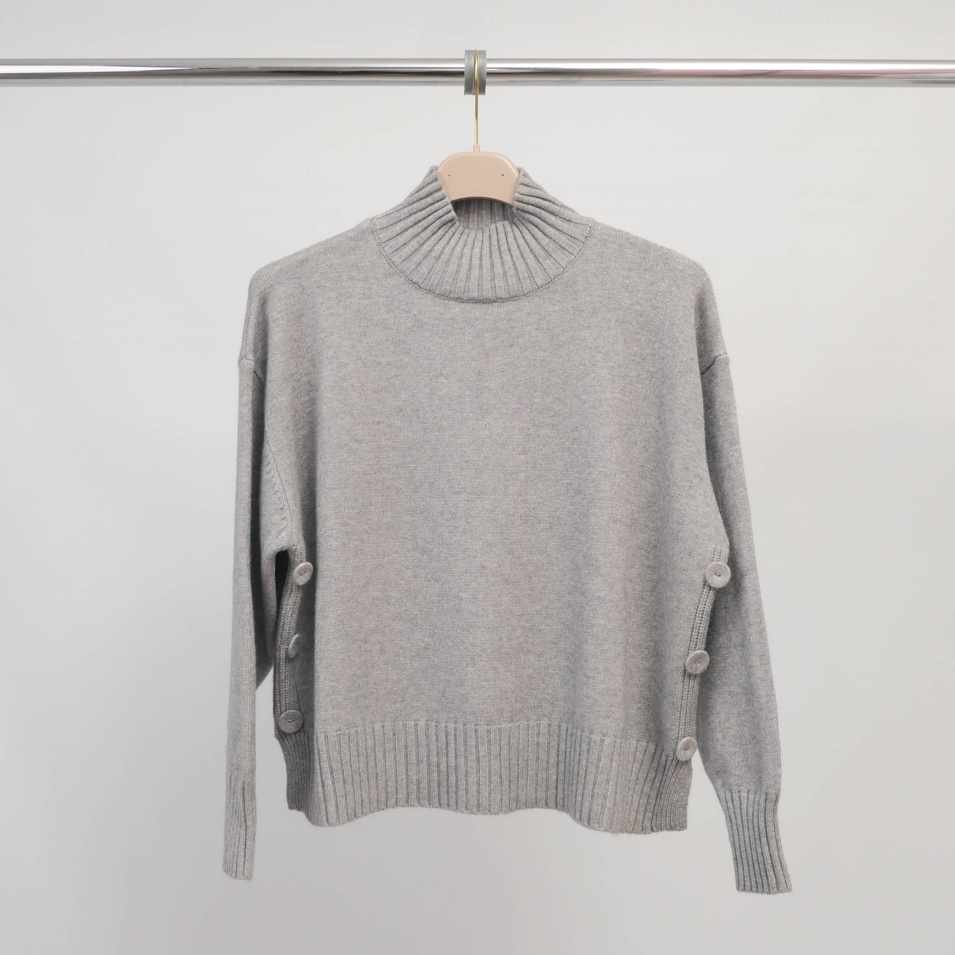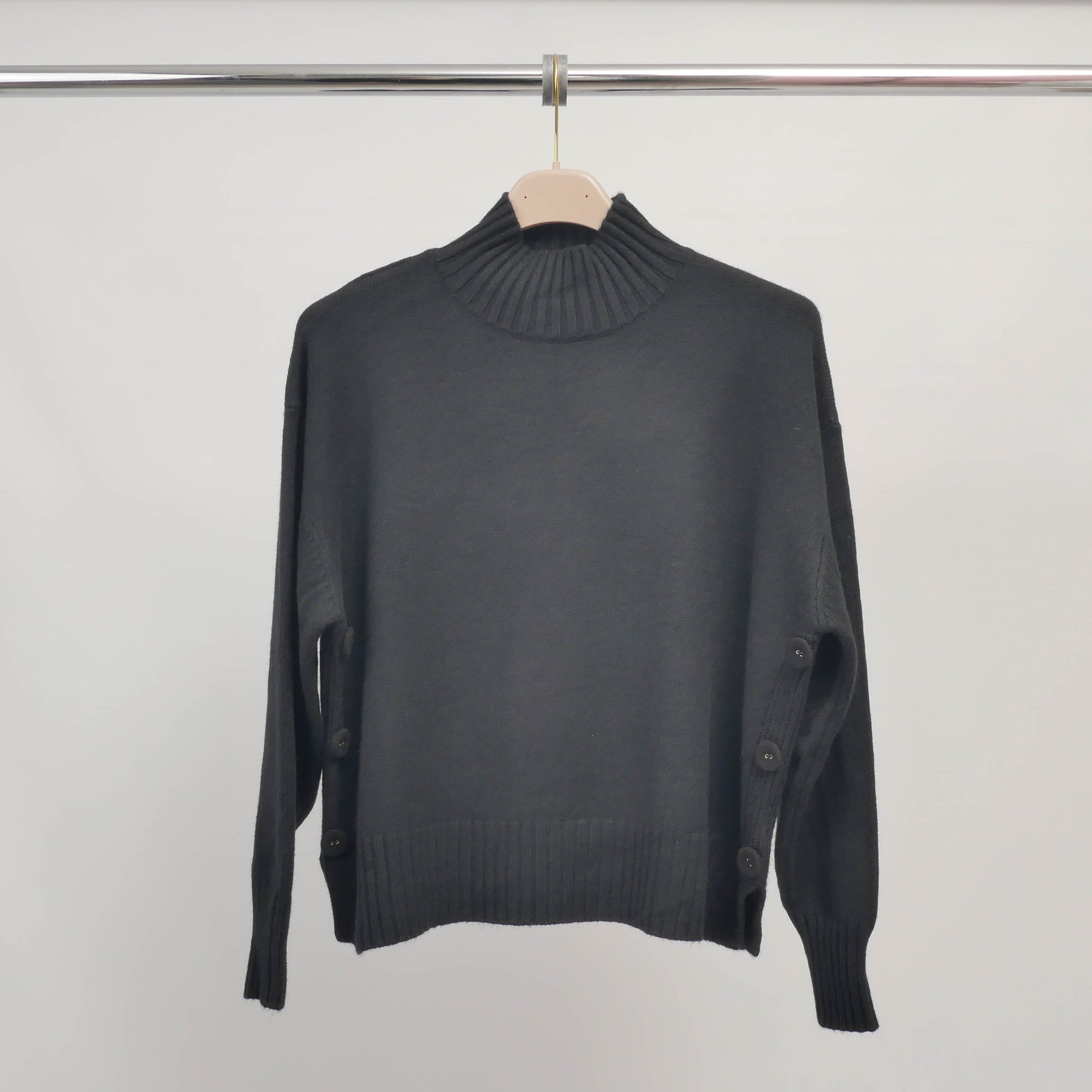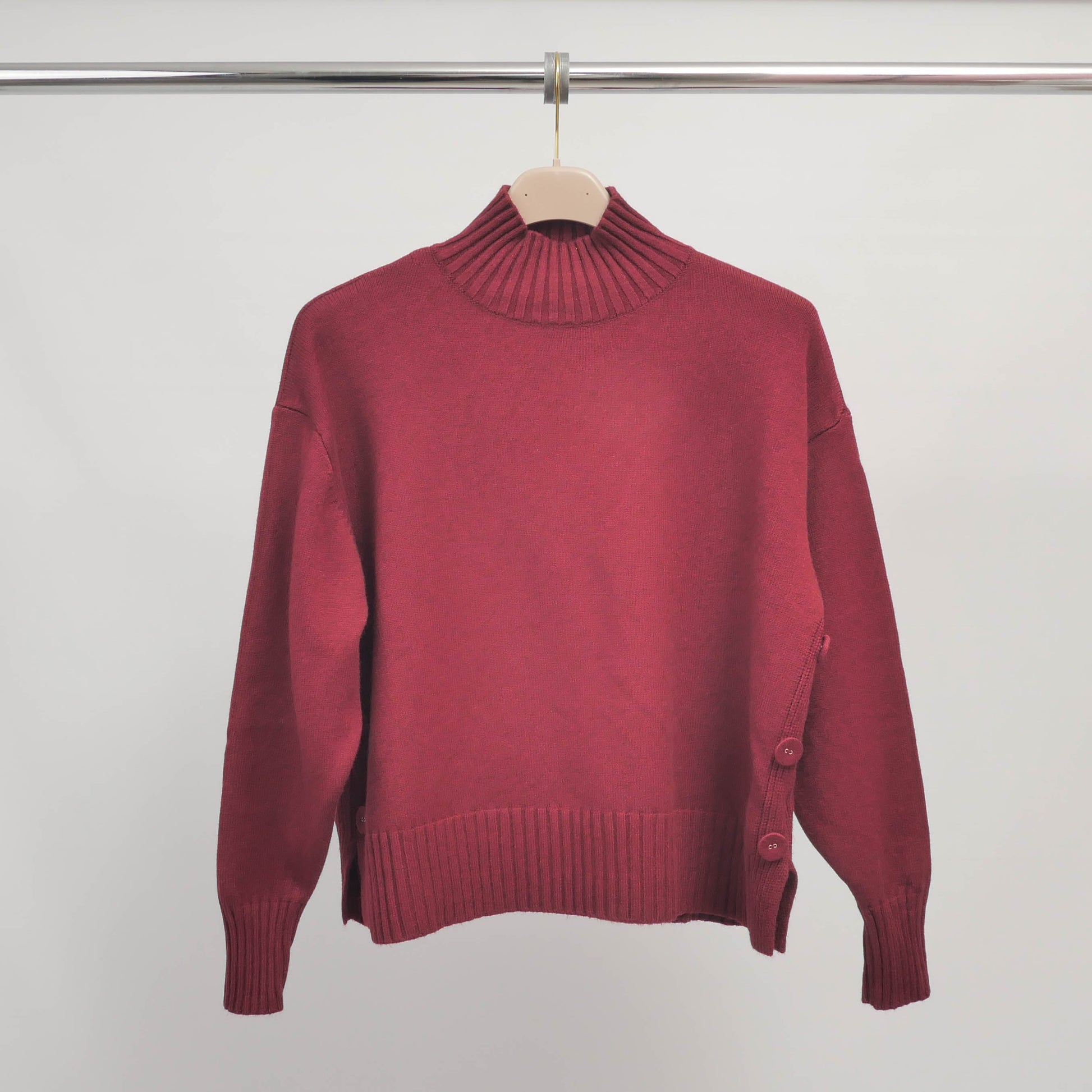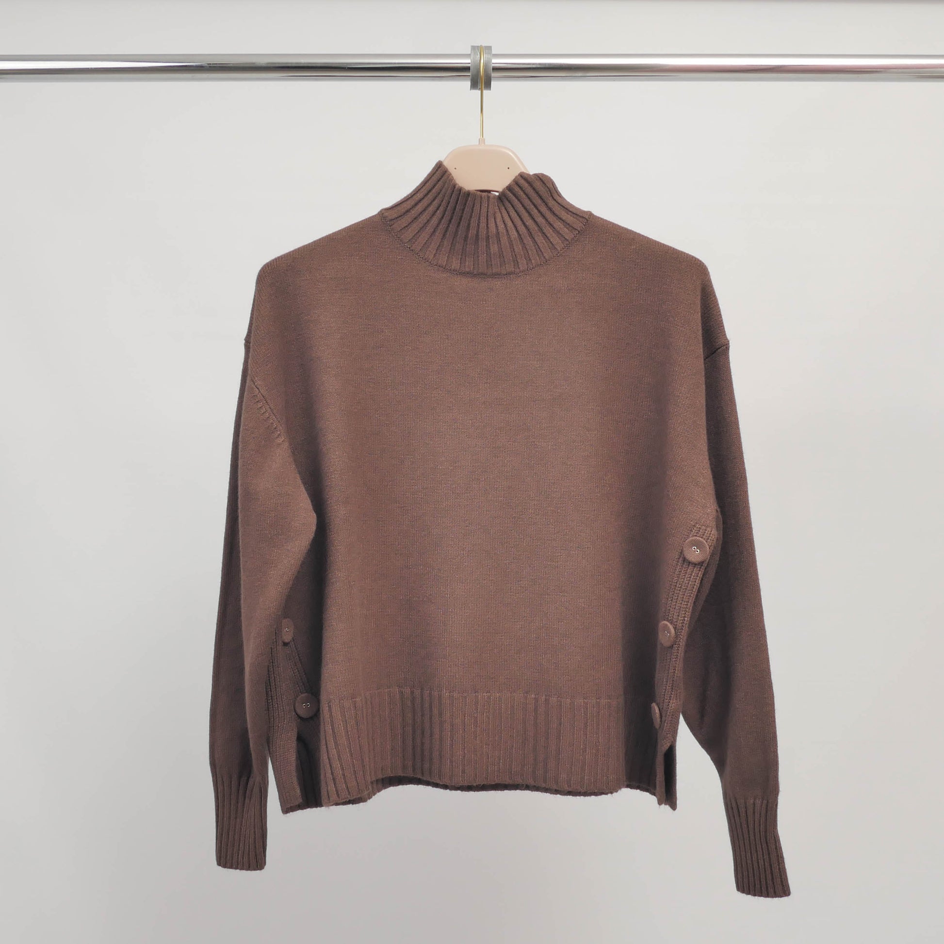 Chaleur et élégance se rencontrent dans ce pull à col montant au style épuré. Sa coupe droite est sublimée par des détails côtelés sur le col, les poignets et l’ourlet, tandis que des boutons ton sur ton sur les côtés ajoutent une touche moderne et modulable. Conçu pour offrir confort et structure, ce modèle allie douceur et tenue grâce à sa maille fine à l’aspect lisse. Parfait pour réchauffer vos tenues sans compromettre le style, il s’associe aussi bien avec un jean brut qu’une jupe midi fluide pour un look chic et décontracté.