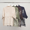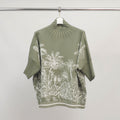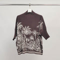 Un souffle d’évasion pour vos looks de saison avec ce pull à col montant et manches courtes, orné d’un motif tropical en jacquard contrastant. Sa coupe ample et sa maille douce offrent un confort absolu, tandis que les finitions côtelées au col et aux manches ajoutent une touche de structure. Facile à porter et à superposer, il se glisse sur un pantalon fluide ou une jupe midi pour une silhouette à la fois cosy et élégante. Une pièce originale qui mêle confort et caractère.