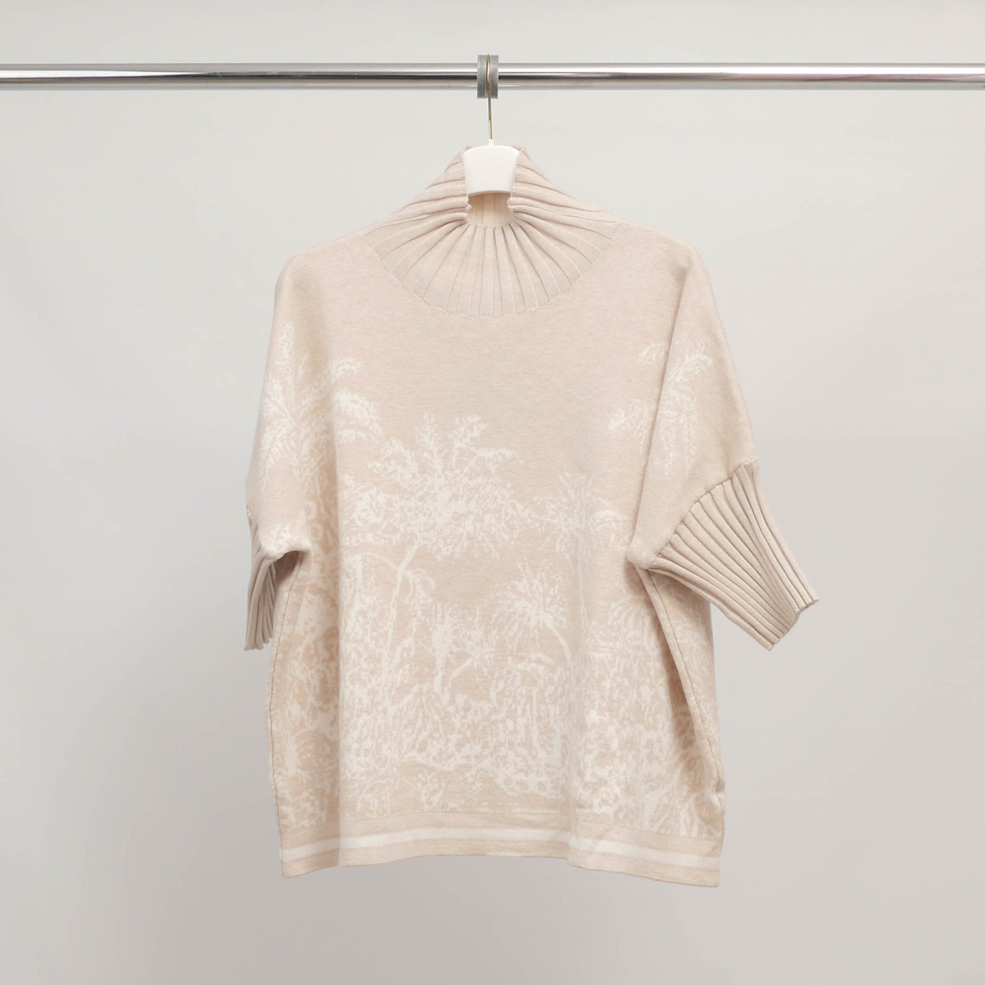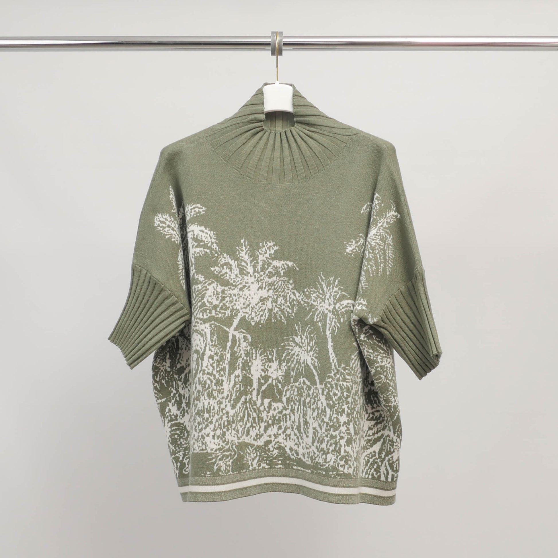 Pull col montant imprimé paysage tropical – ref MSJ76924