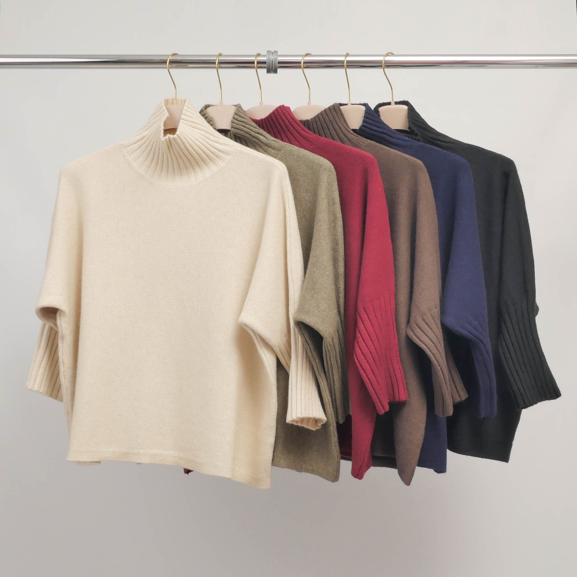 Un pull doux et structuré pour traverser la saison avec élégance. Ce modèle à col montant se distingue par ses manches 3/4 légèrement chauve-souris et ses poignets larges en maille côtelée, apportant volume et modernité à la silhouette. Sa coupe droite et fluide en fait une pièce facile à porter au quotidien, tout en assurant un confort optimal. Léger mais chaud, il se glisse facilement sous un manteau ou se suffit à lui-même avec un pantalon taille haute. Associez-le à un jean brut pour un look casual chic, ou à une jupe midi pour une allure plus féminine.
