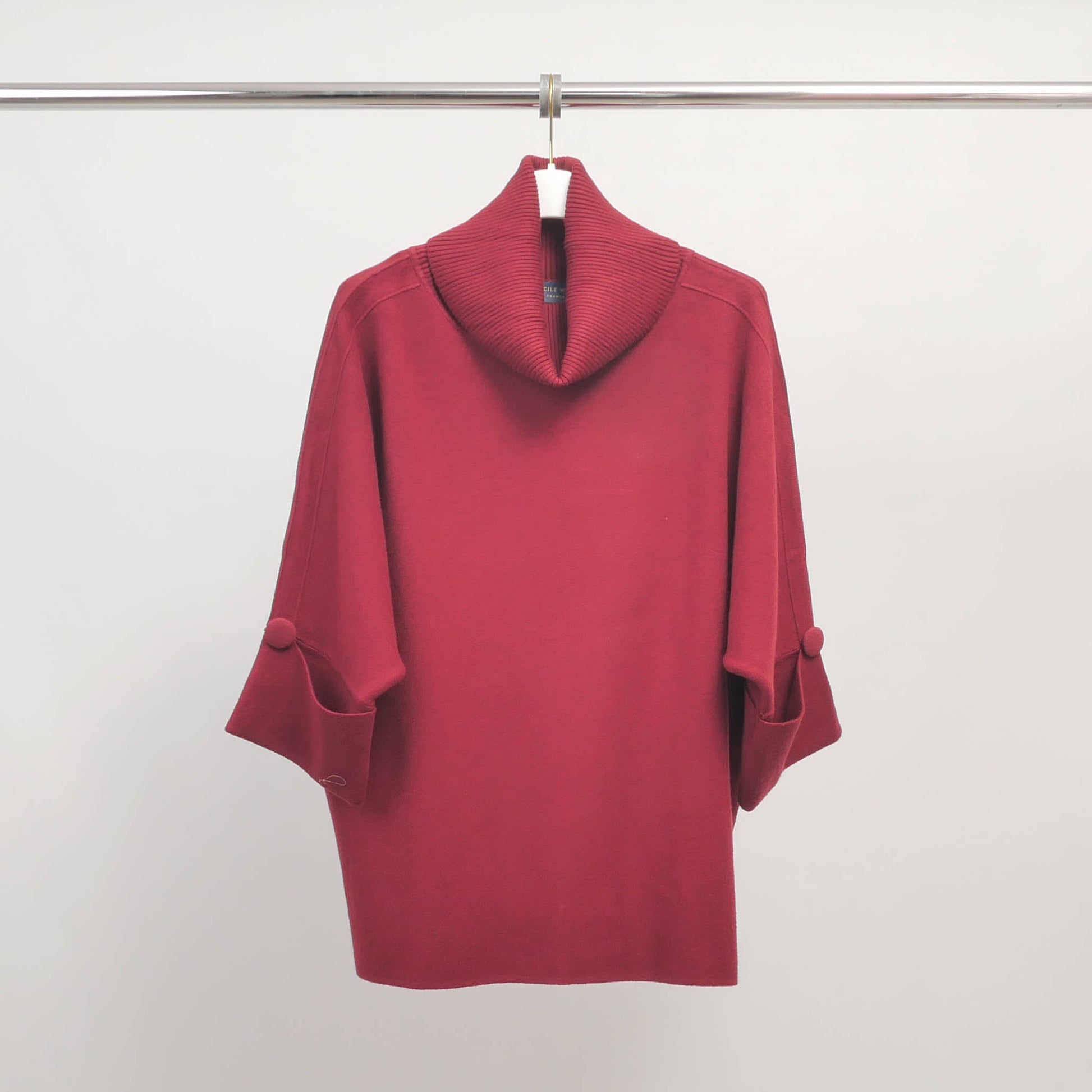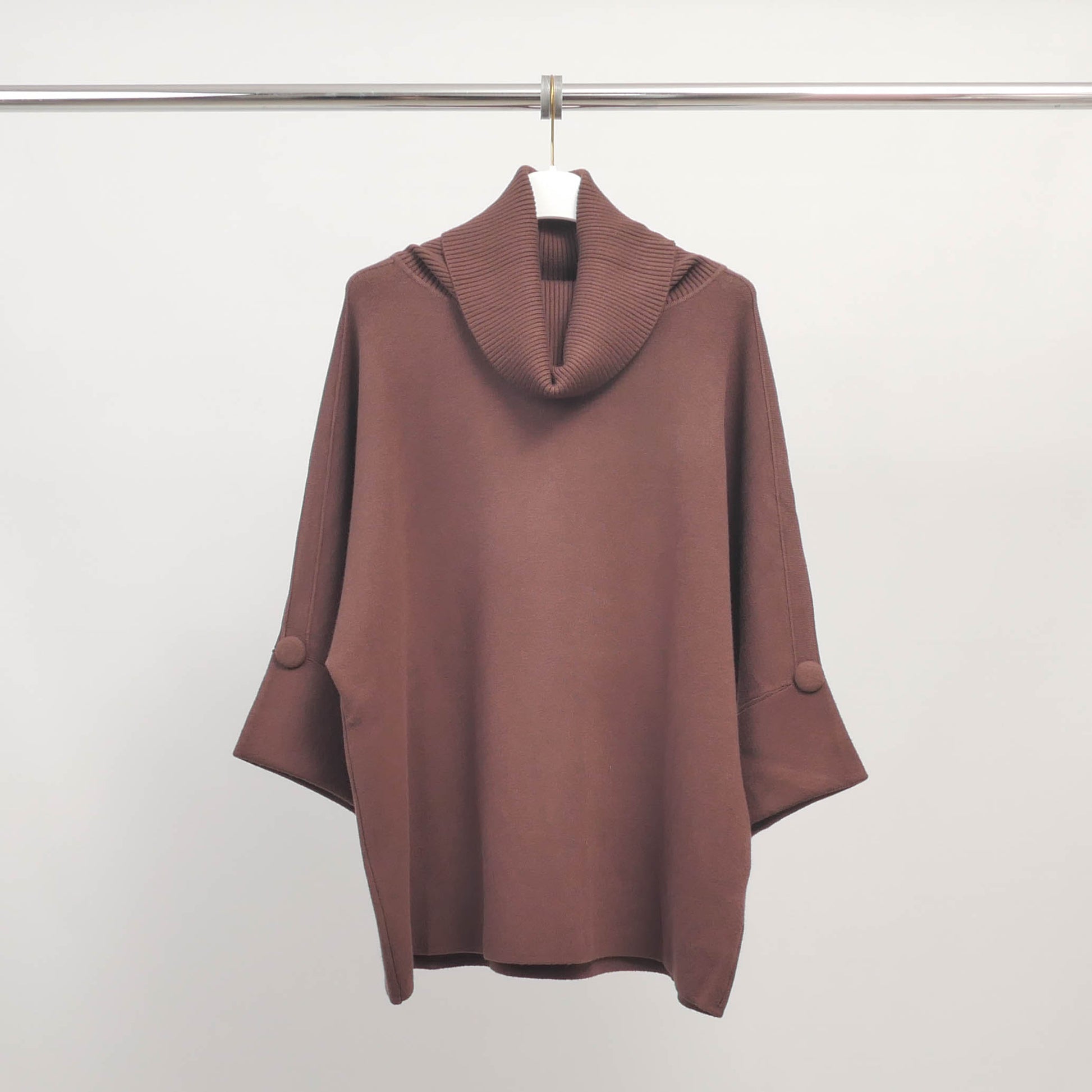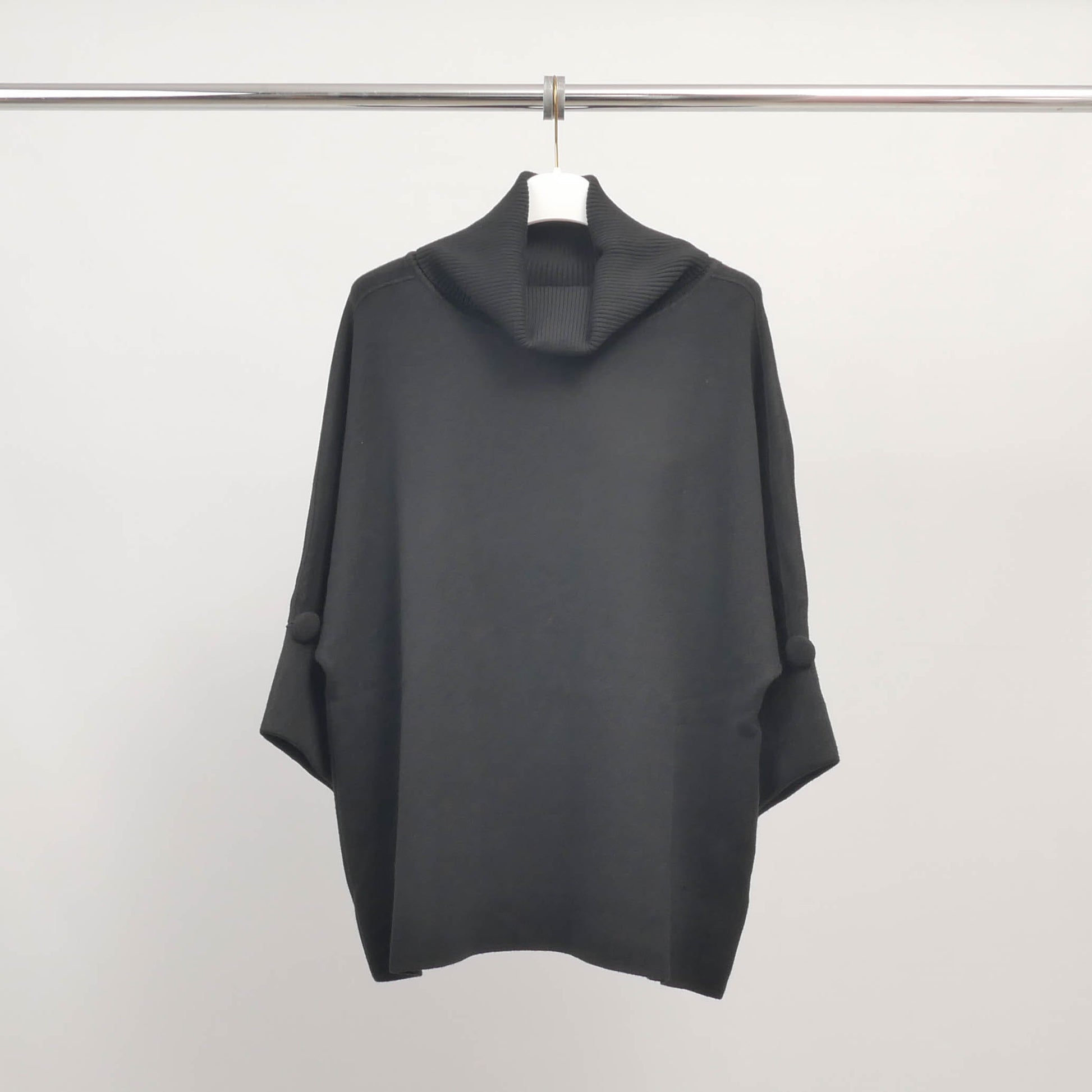 Pull col roulé large manches 3/4 à détails boutonnés – HY25079