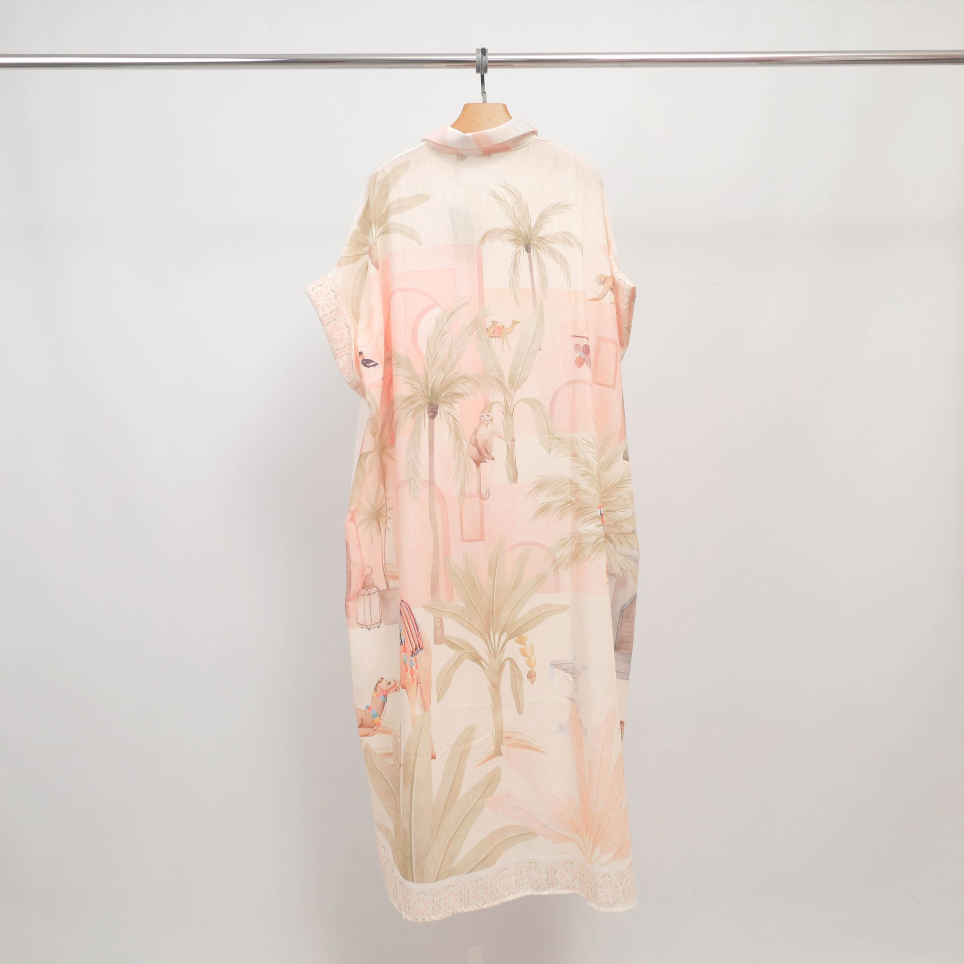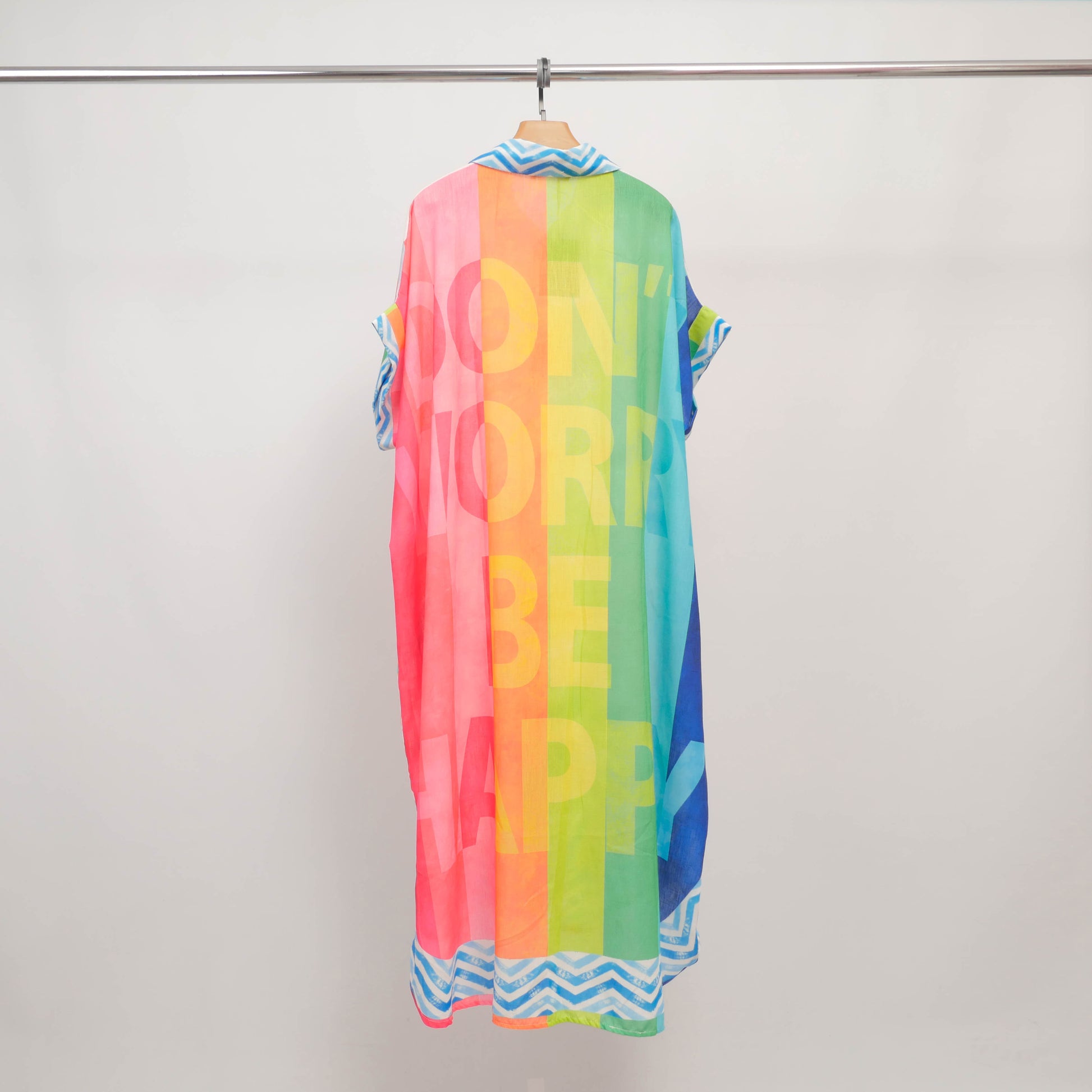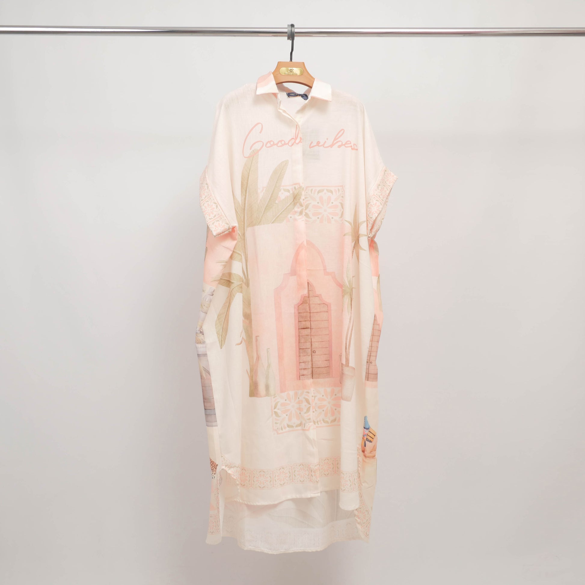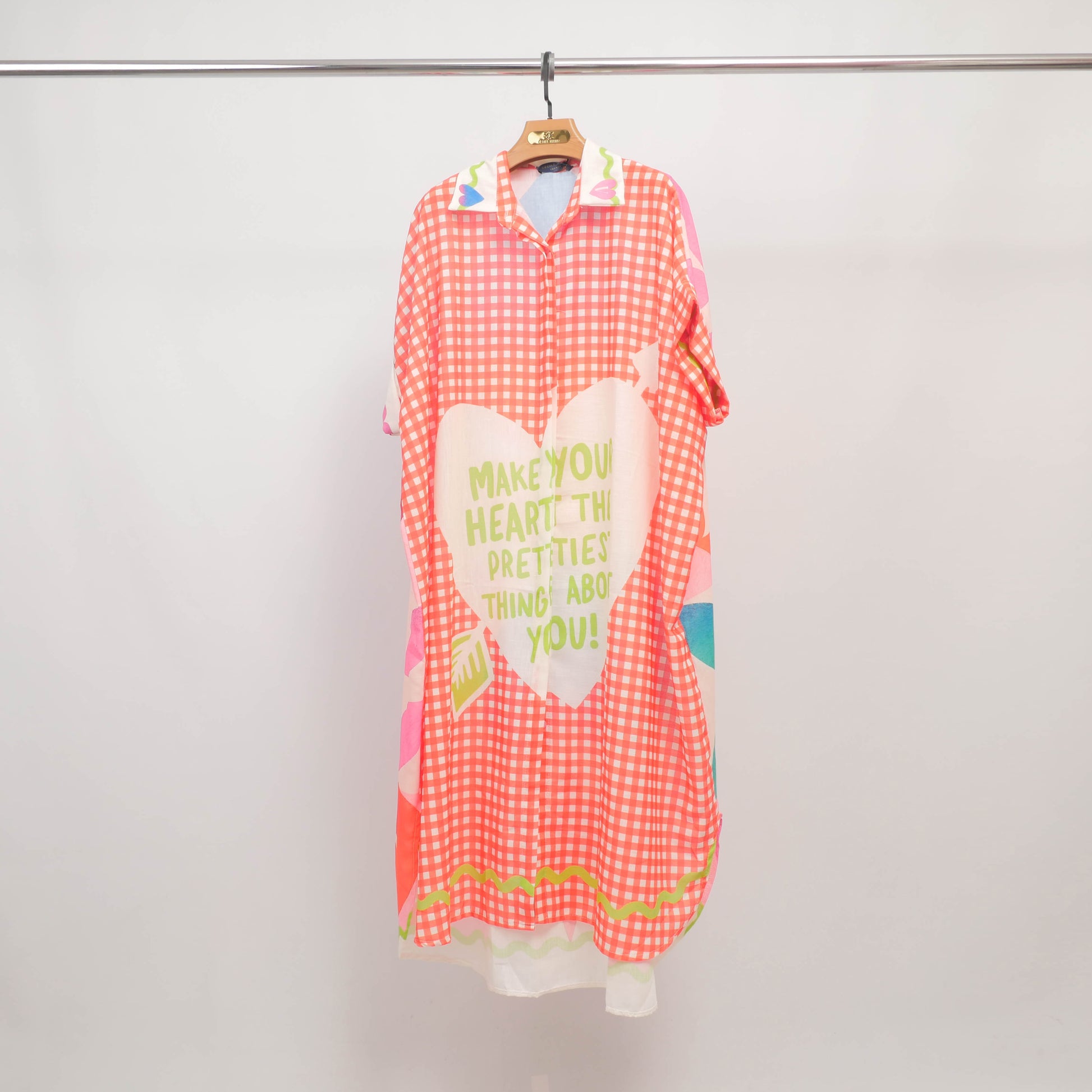 Offrez-vous une escapade colorée avec cette robe chemise oversize aux imprimés éclatants. Des paysages tropicaux aux illustrations poétiques en passant par des messages positifs, chaque modèle propose un univers graphique singulier et expressif. Sa coupe fluide et ample, son col classique et ses manches courtes en font une pièce facile à porter et ultra confortable.
