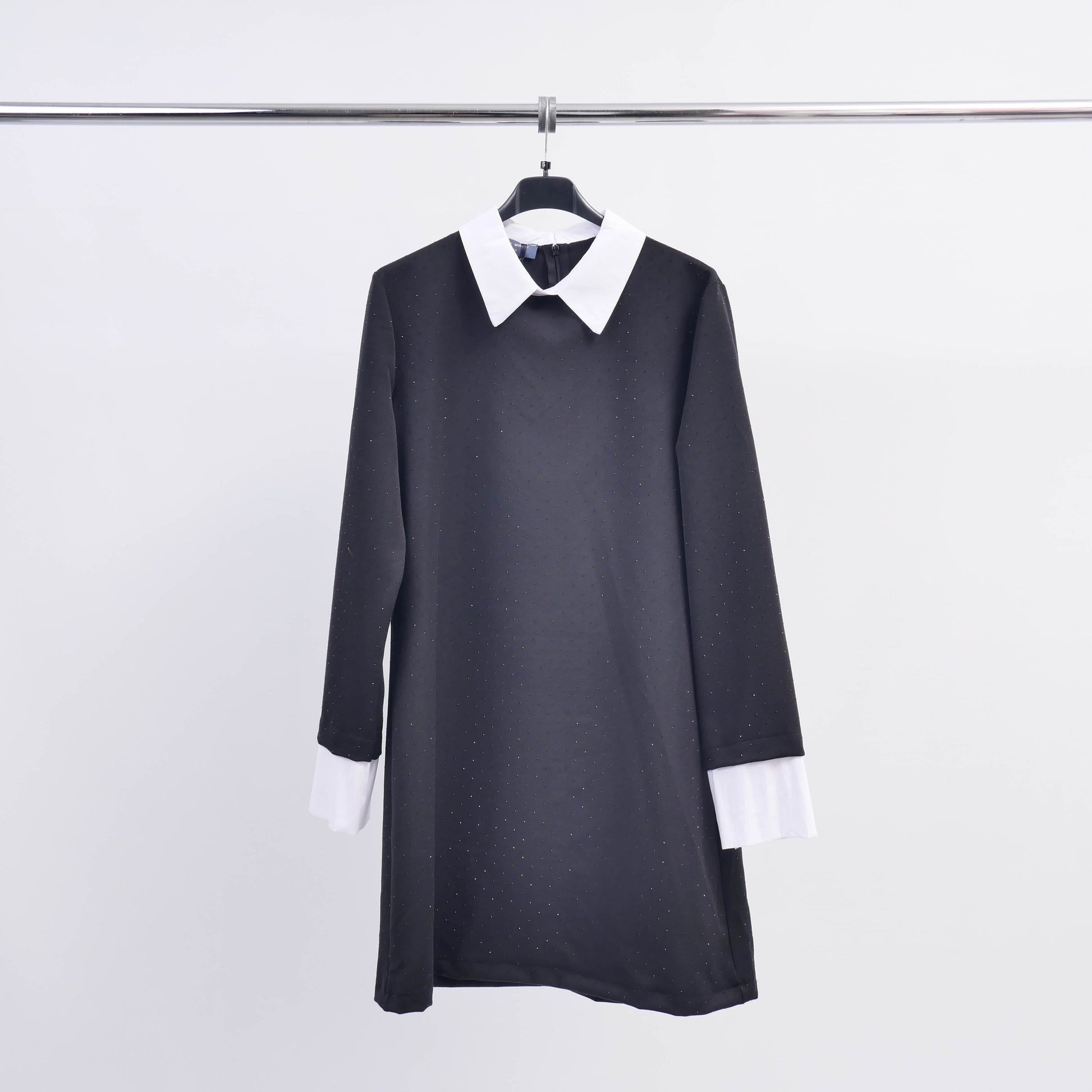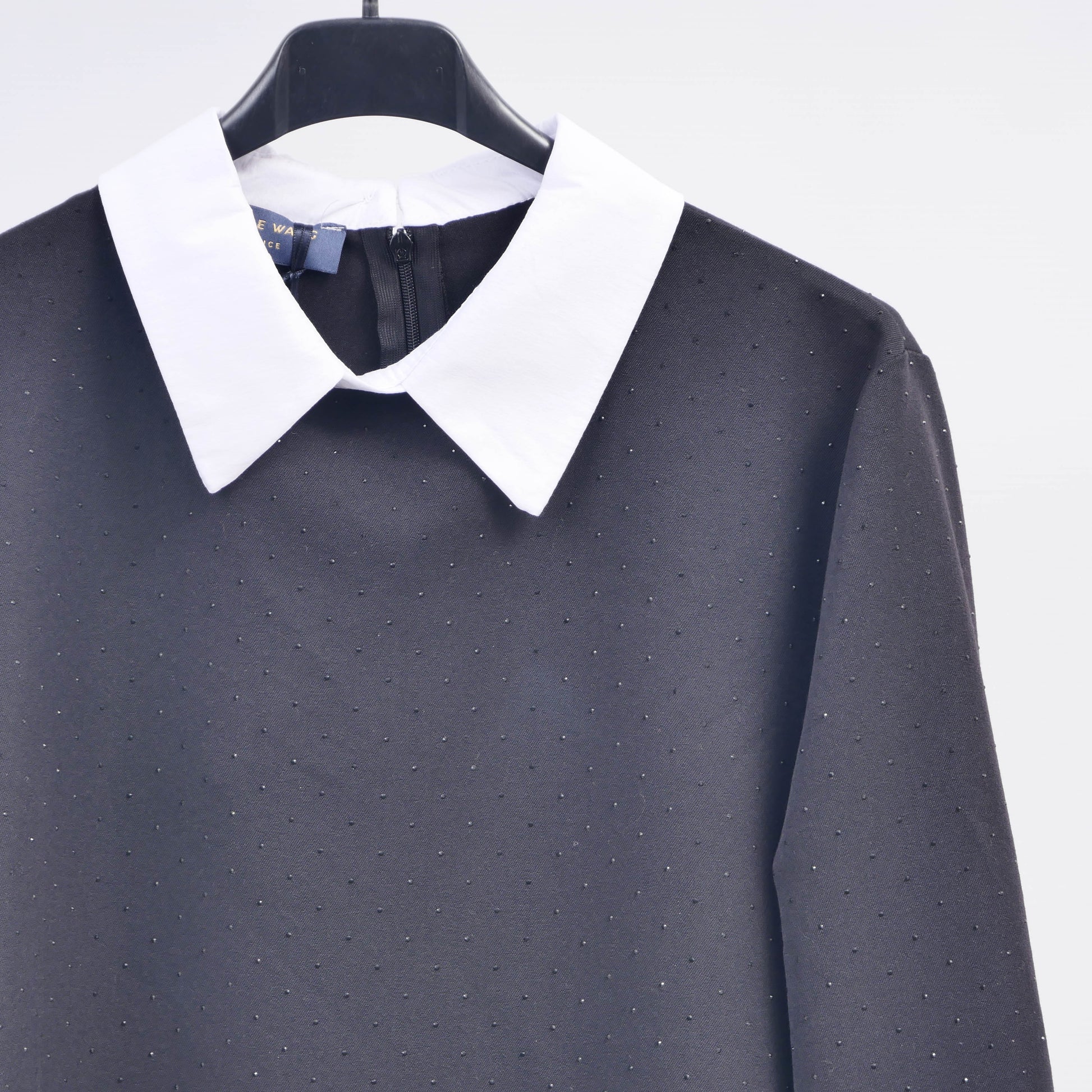 Enfilez notre robe Col Claudine pour un look élégant et sophistiqué. Avec des strass brillants pour une touche de glamour, cette robe est parfaite pour toutes les occasions. Le col Claudine ajoute une touche classique tandis que le tissu doux et extensible offre confort et élégance. N'hésitez plus et ajoutez cette robe à votre garde-robe dès maintenant!