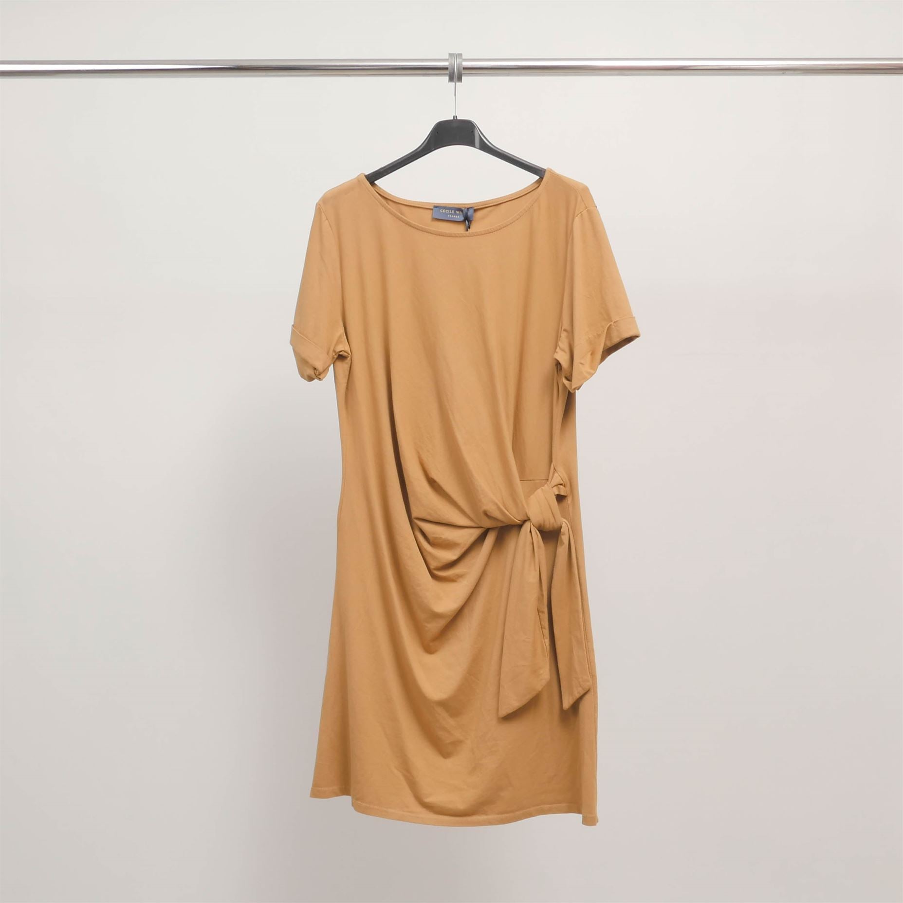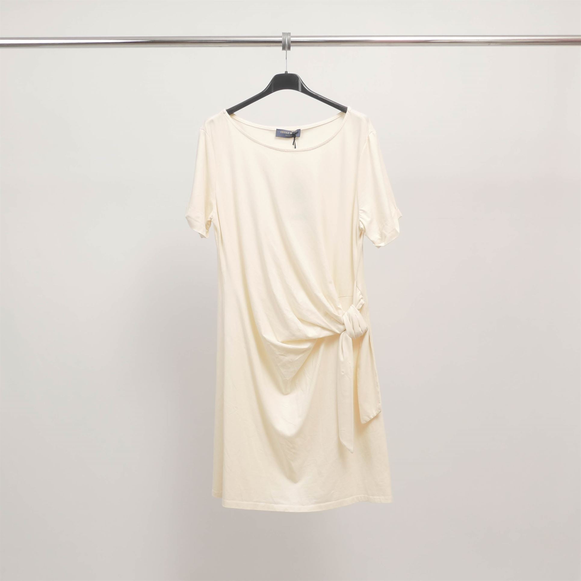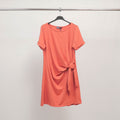 Confort et féminité se rencontrent dans cette robe en jersey à la coupe fluide et au nœud latéral structurant. Son design minimaliste est rehaussé par une ceinture intégrée à nouer sur le côté, qui crée un drapé flatteur et souligne la silhouette avec subtilité. Les manches courtes à revers et l’encolure ronde apportent une touche casual-chic, parfaite pour le quotidien comme pour une sortie estivale. Déclinée dans une palette de couleurs douces ou vitaminées, cette robe est un essentiel facile à accessoiriser, avec des sandales, des sneakers ou une ceinture large.