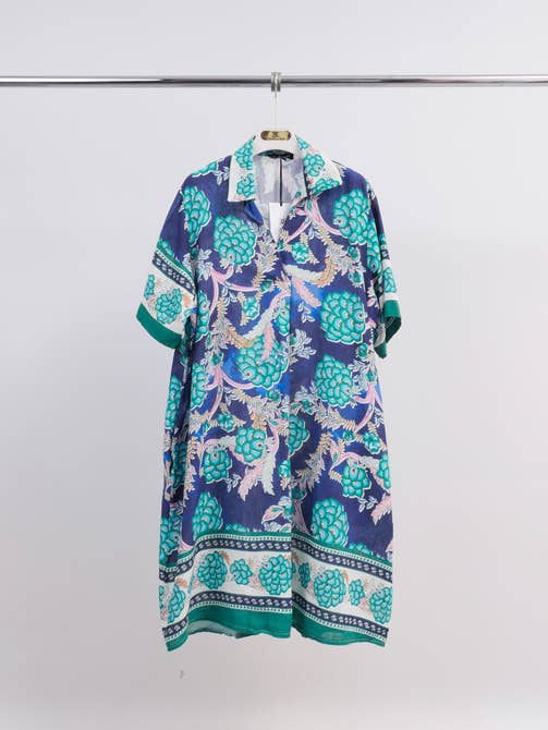 Cette robe imprimée en lin ajoutera du charme et de l'élégance à votre garde-robe. Fabriquée en lin, elle offrira une texture douce et légère tout en gardant votre silhouette au frais et à l'aise. Son imprimé unique ajoutera une touche de style intemporel à n'importe quelle tenue.