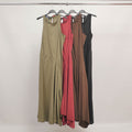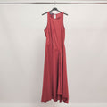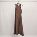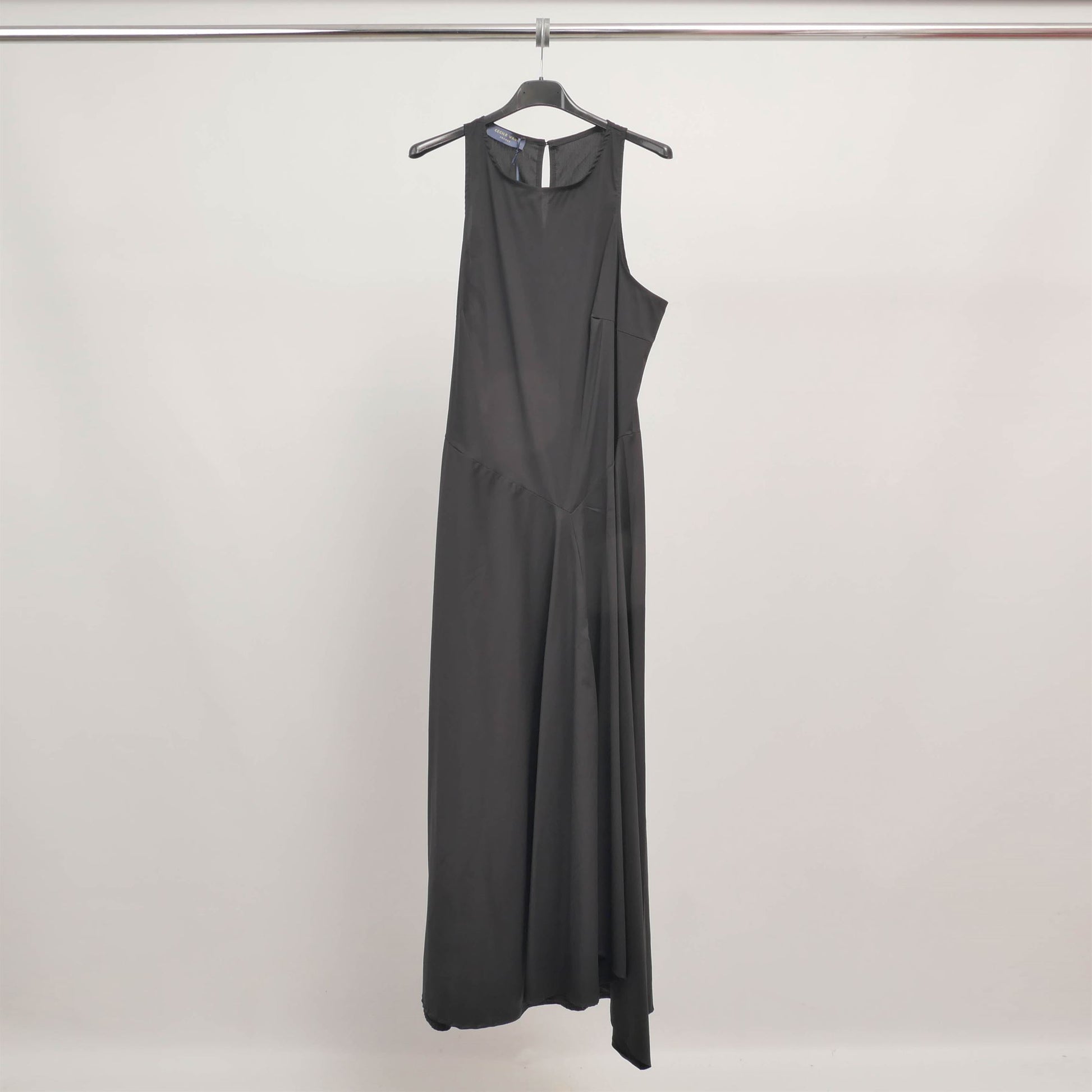 Cette robe longue séduit par sa coupe asymétrique et son tombé naturellement fluide. Son encolure arrondie et ses emmanchures dégagées structurent joliment la silhouette, tandis que le jeu de découpes et le pan drapé latéral apportent un mouvement subtil à chaque pas. Sa coupe légèrement évasée assure un confort optimal tout en mettant en valeur les lignes du corps. Idéale pour une tenue de journée sophistiquée ou une soirée d’été, elle s’associe aussi bien à des sandales plates qu’à des talons minimalistes.