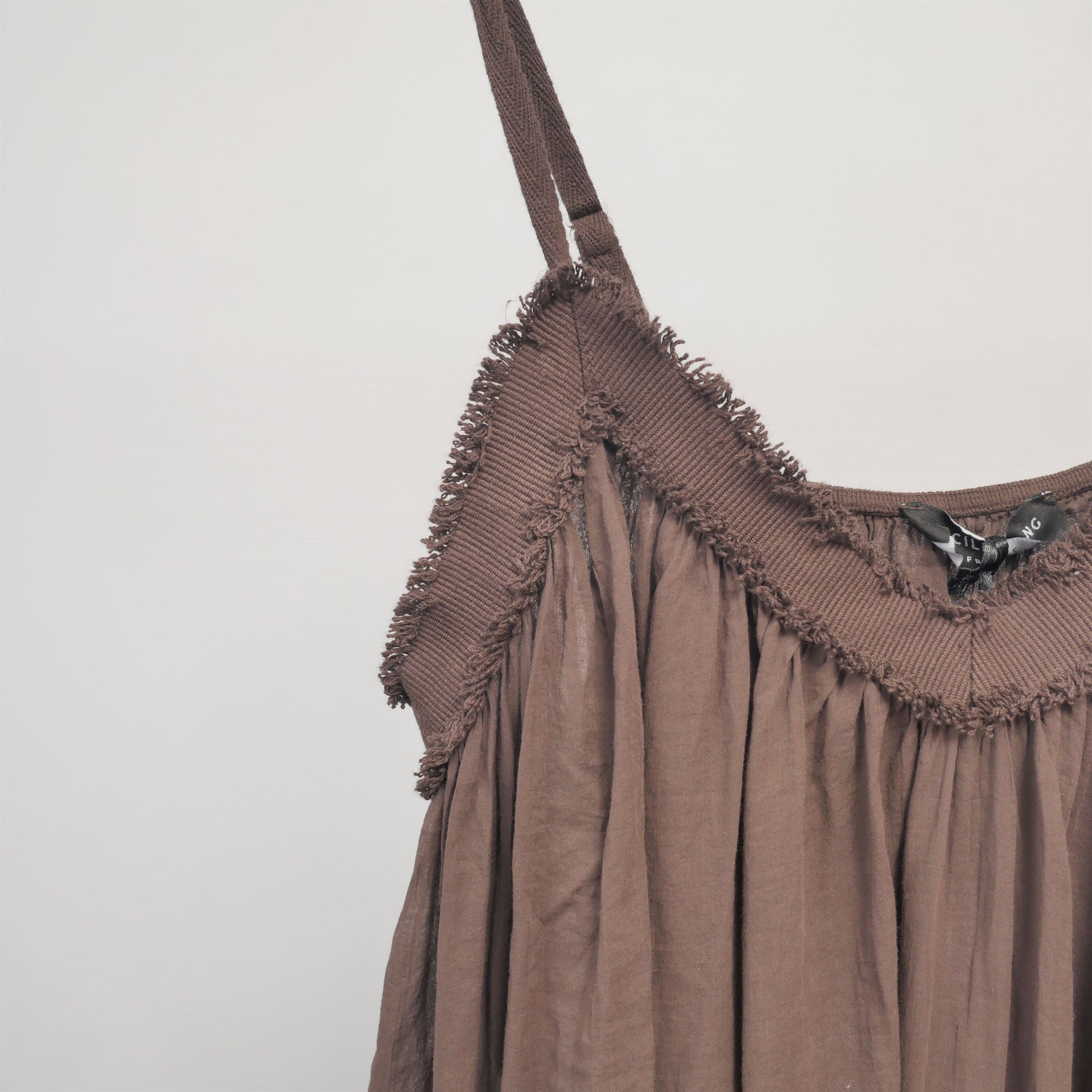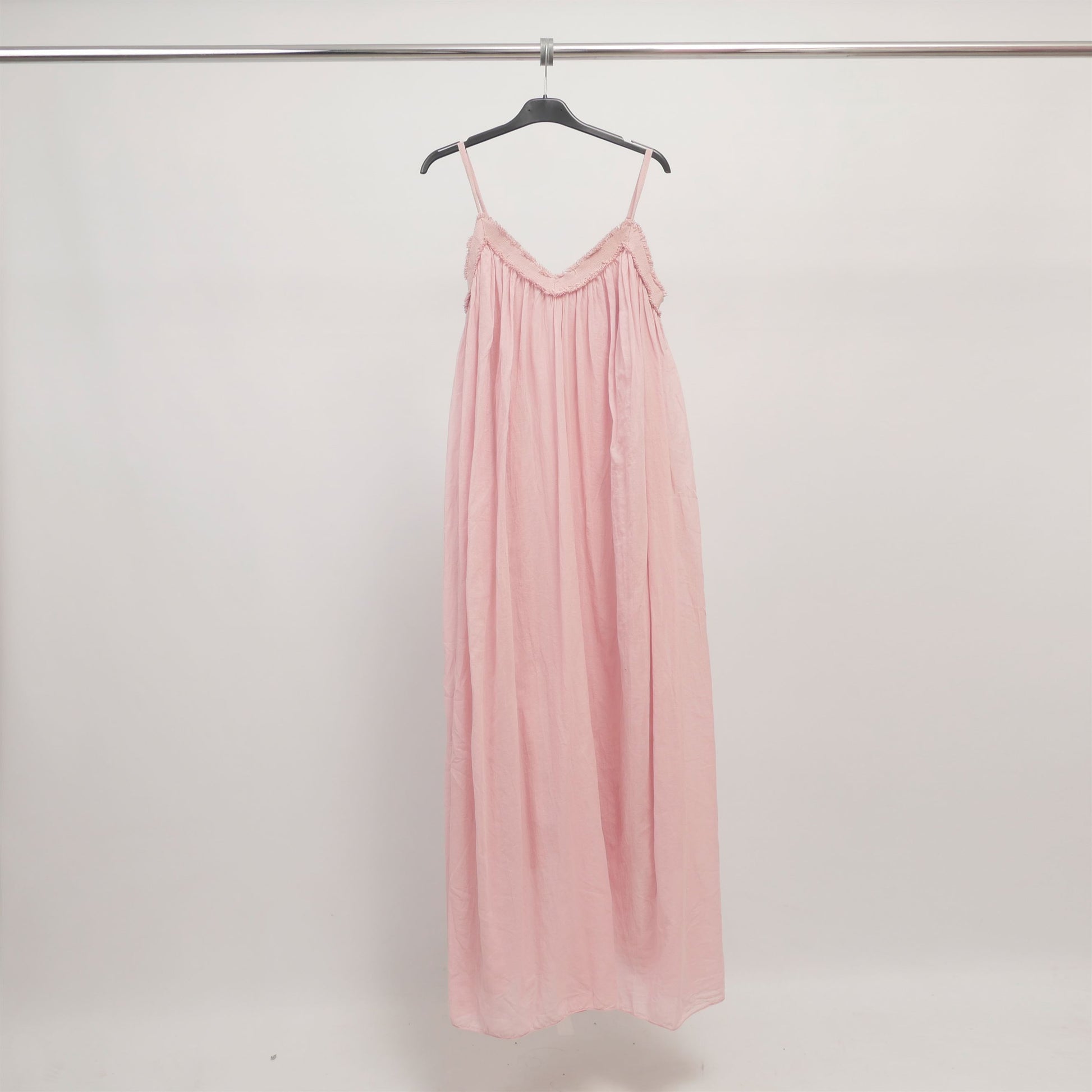 Laissez-vous séduire par l’esprit bohème et aérien de cette robe longue en coton léger. Dotée de fines bretelles ajustables et d’un décolleté en V souligné par une bande texturée à franges, elle offre une silhouette fluide et romantique. Sa coupe ample et froncée assure un tombé vaporeux, idéal pour les journées ensoleillées ou les escapades estivales. Déclinée dans une belle gamme de coloris doux et naturels, elle se porte aussi bien avec des sandales plates que des espadrilles compensées pour un look effortless chic.