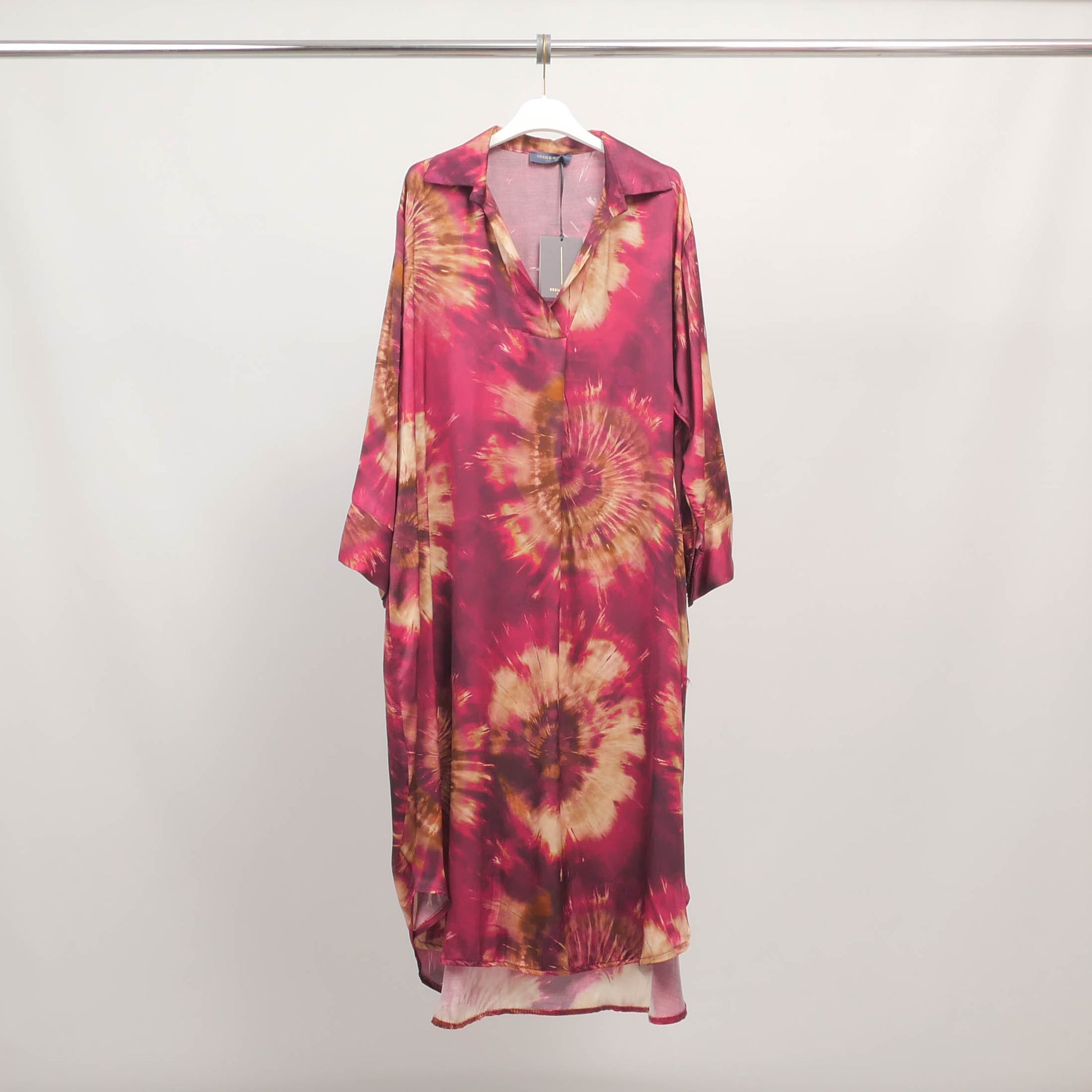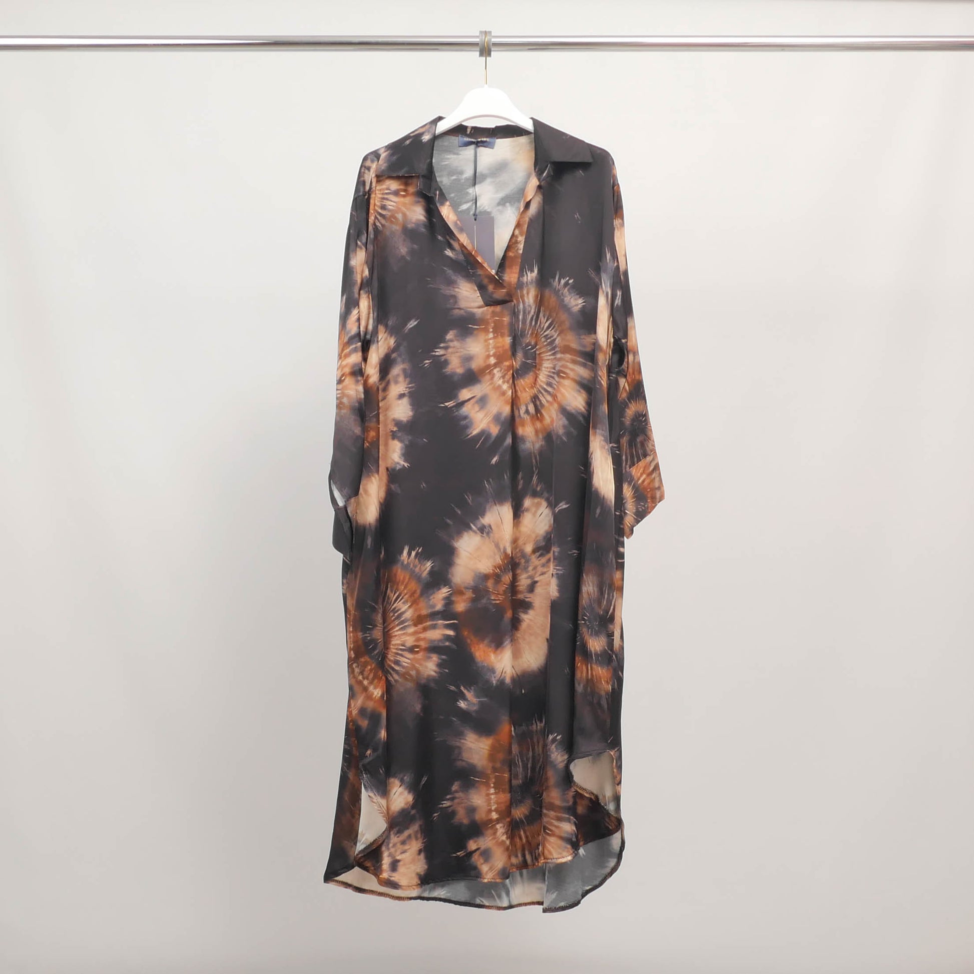 Laissez-vous séduire par cette robe fluide au motif tie & dye artistique, parfaite pour un look bohème-chic. Confectionnée dans une matière légère et soyeuse, elle offre un tombé élégant et un confort inégalé.