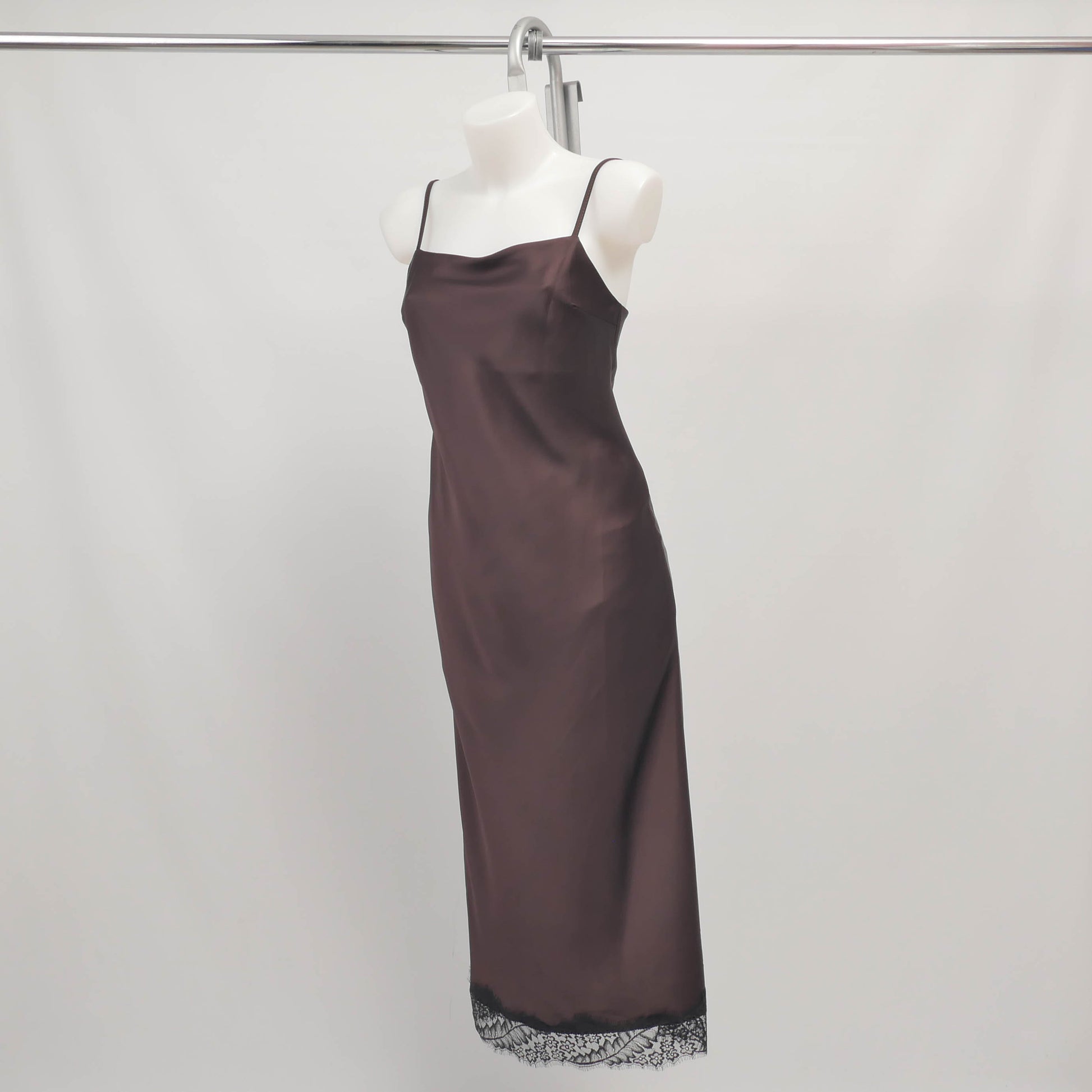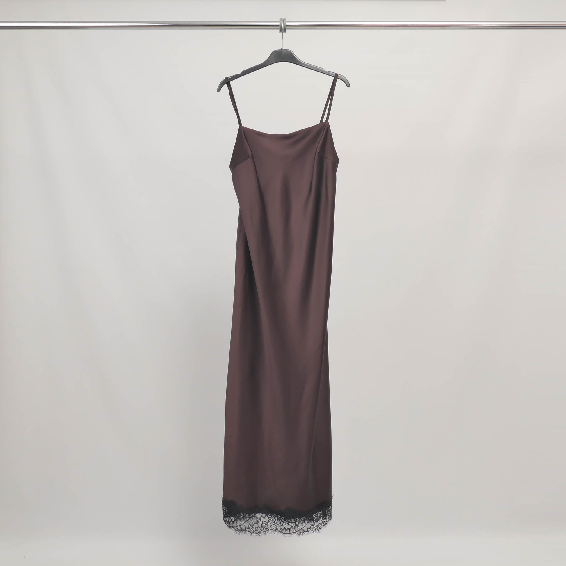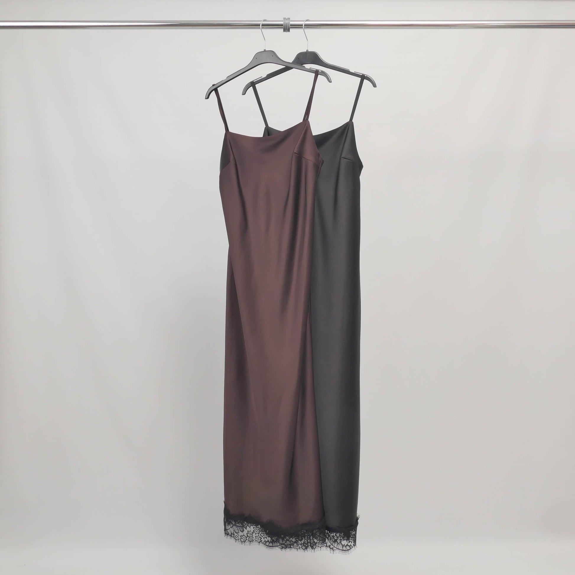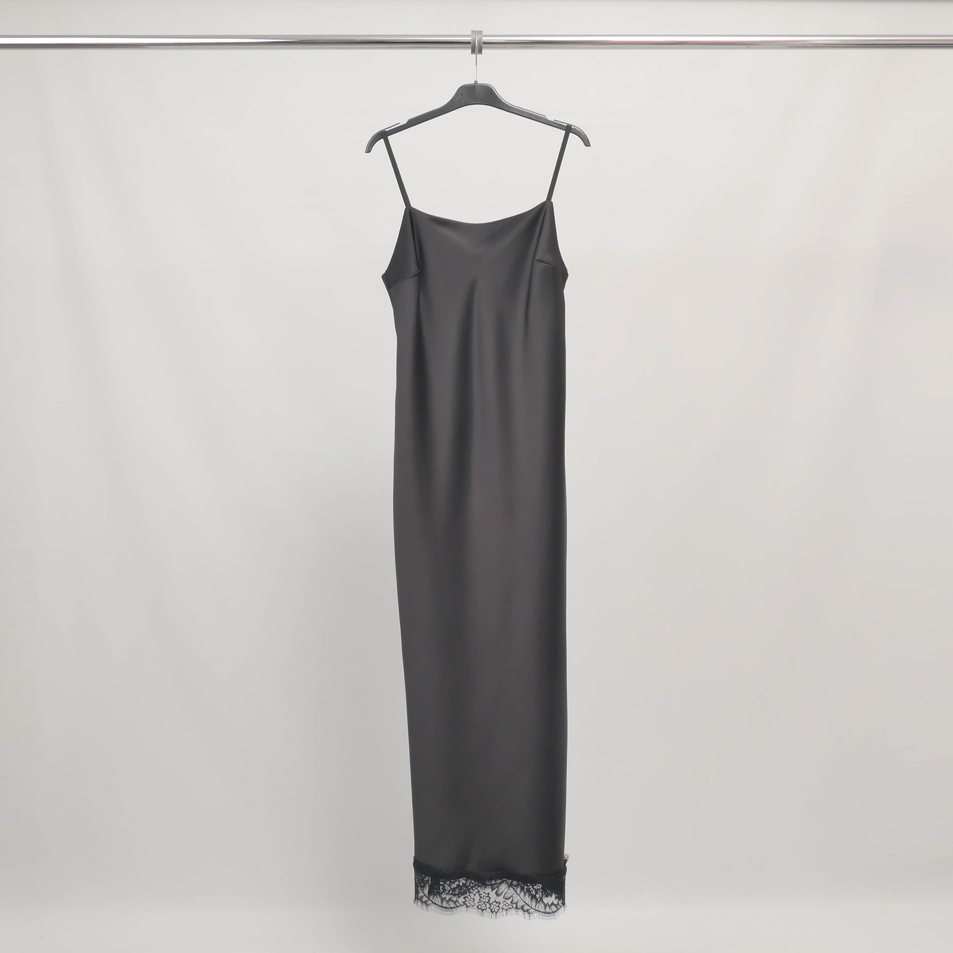 Chic et sensuelle, cette robe longue satinée sublime la silhouette avec fluidité et légèreté. Son tombé soyeux et sa coupe près du corps évoquent l’élégance minimaliste des années 90. Les fines bretelles délicates dévoilent subtilement les épaules, tandis qu’un liseré de dentelle noire en bas de robe apporte une touche raffinée et féminine. Conçue pour les occasions spéciales ou les soirées élégantes, elle se porte aussi en version décontractée avec un pull oversized et des bottines pour un contraste de styles affirmé.
