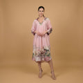 Une robe qui évoque l’évasion et le raffinement, à travers un imprimé paysage d’inspiration aquarelle placé sur l’ourlet.