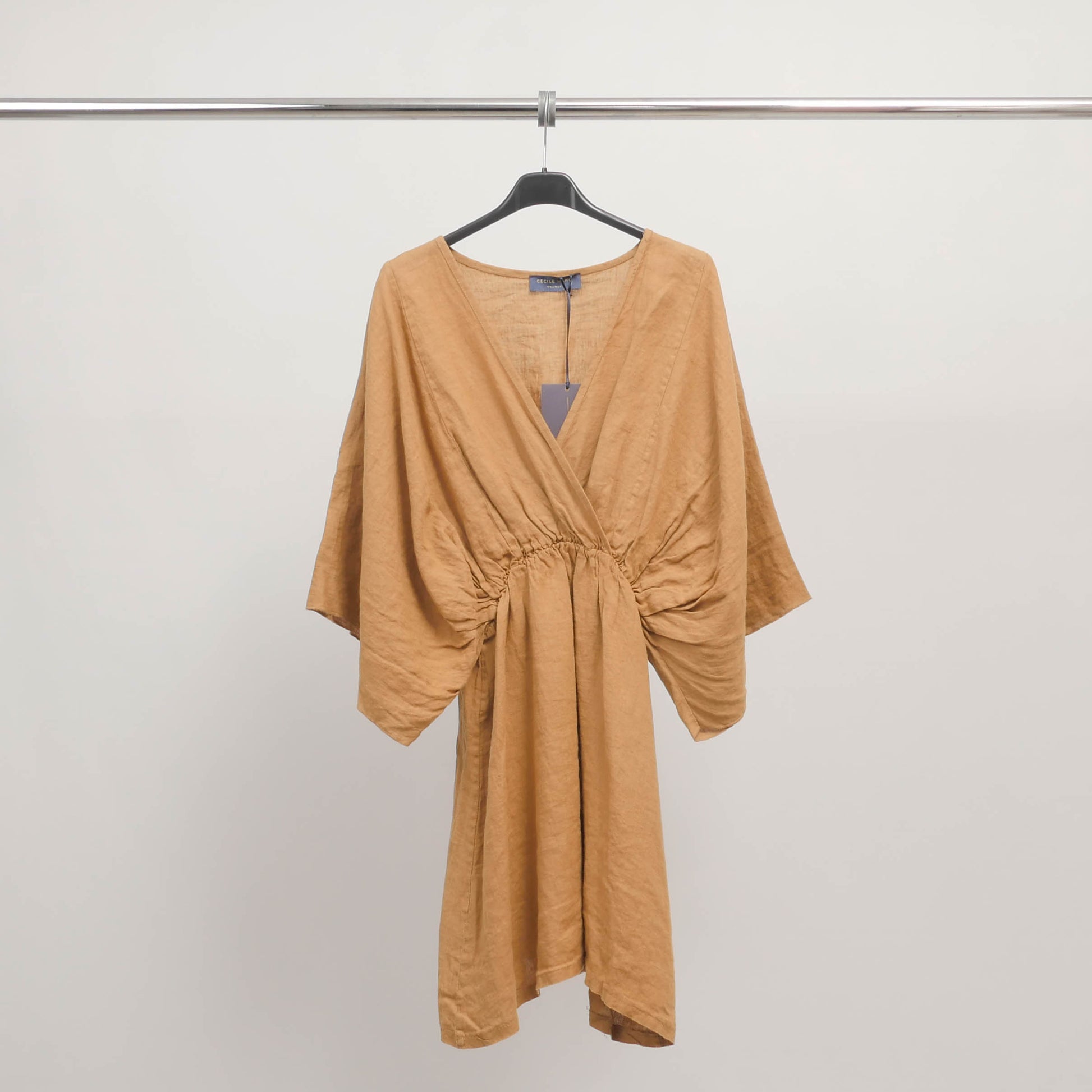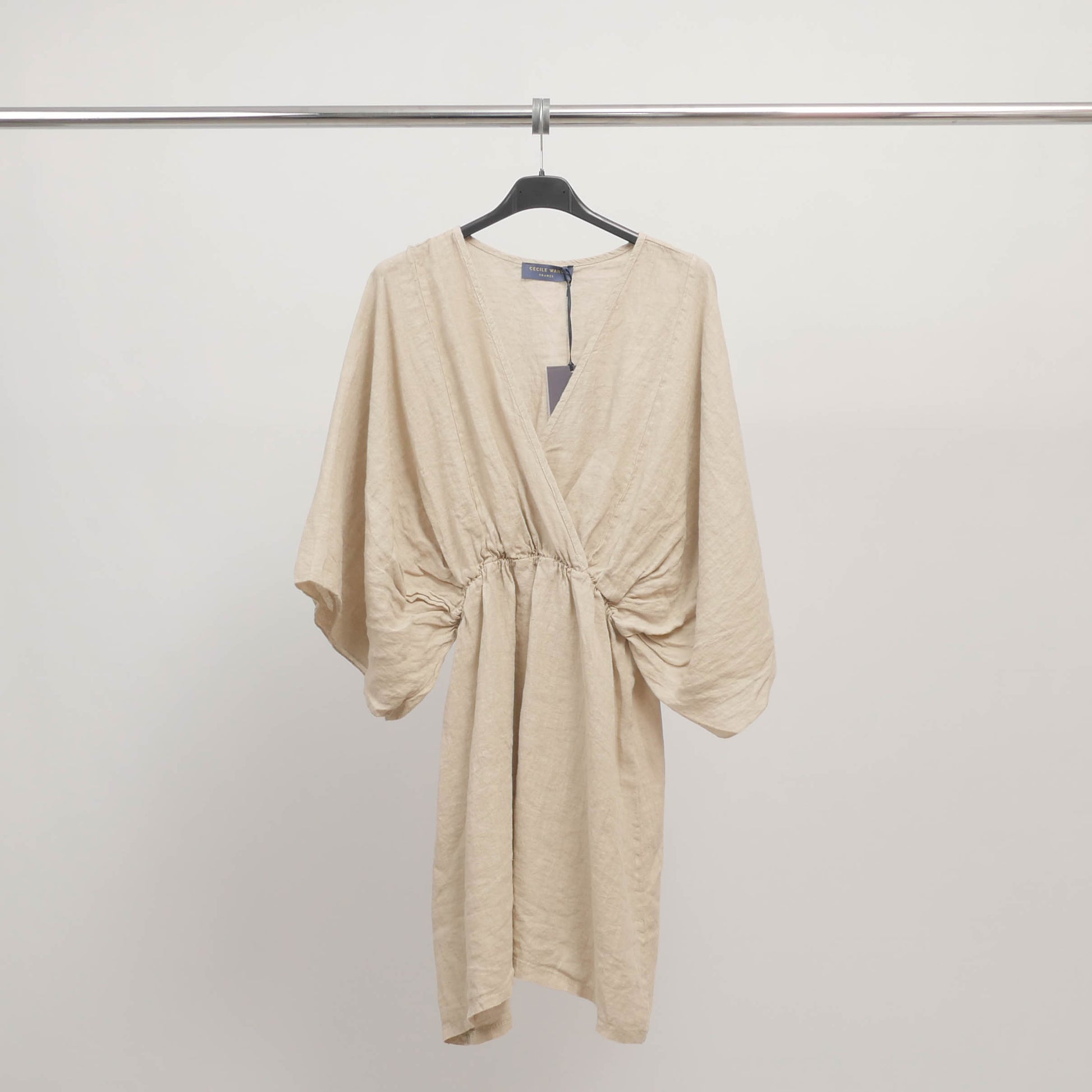 Robe portefeuille en lin à manches chauve-souris TDM32225